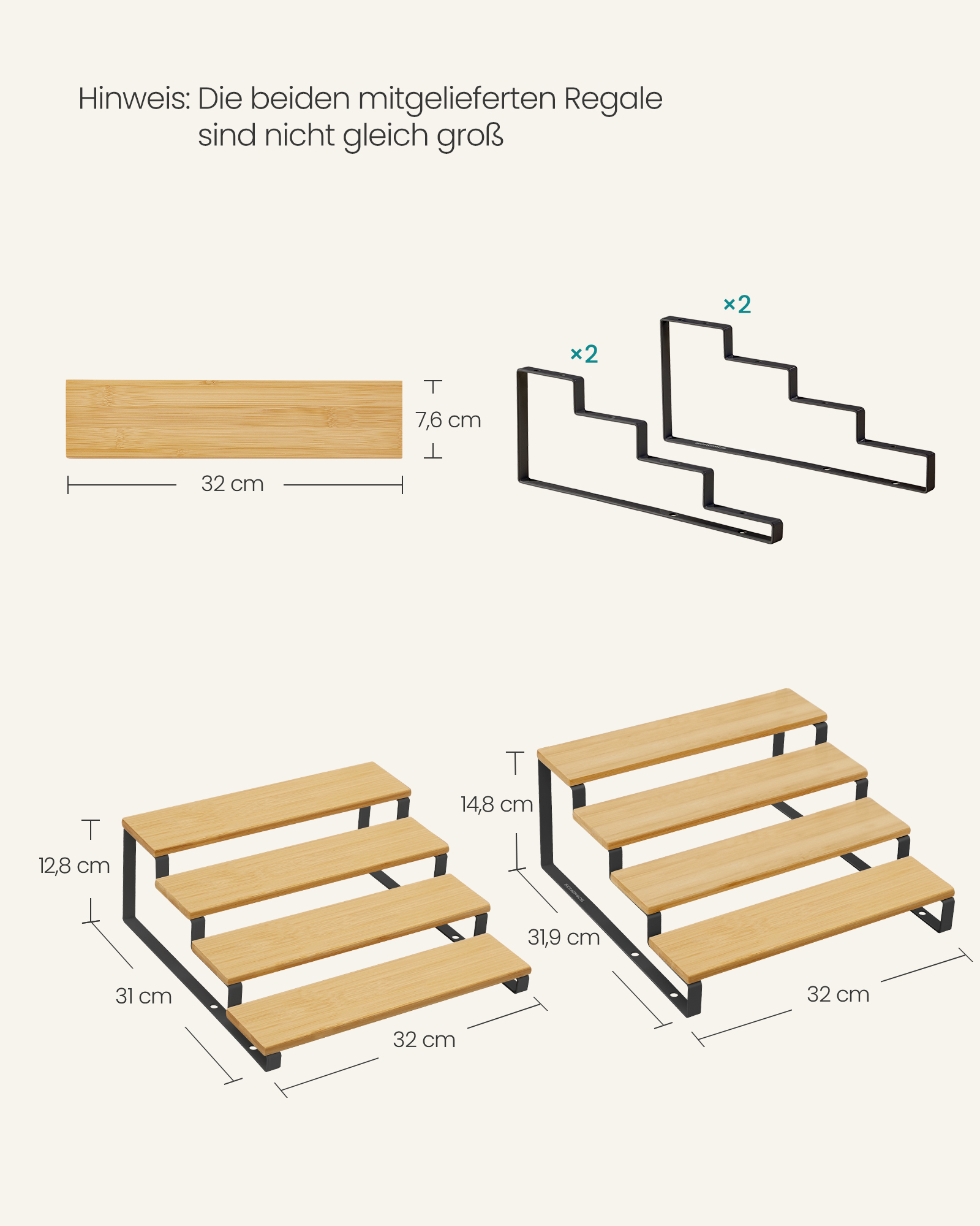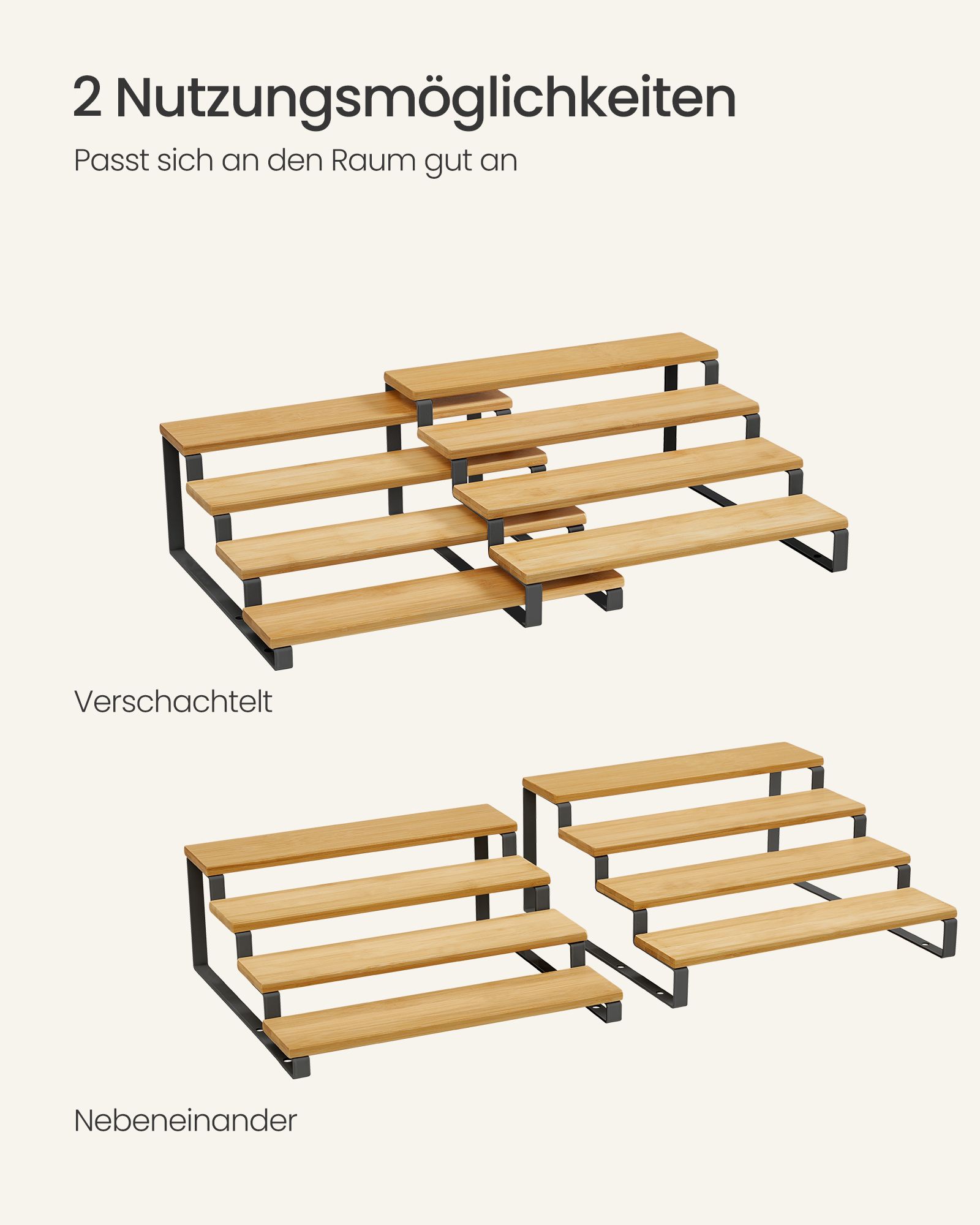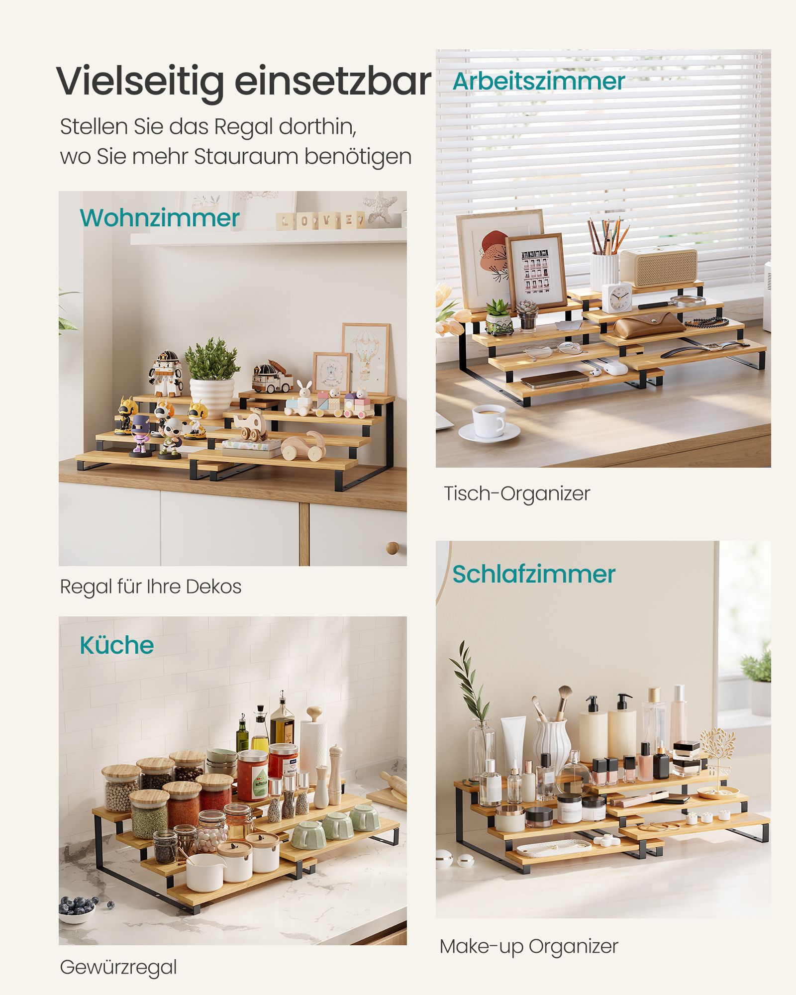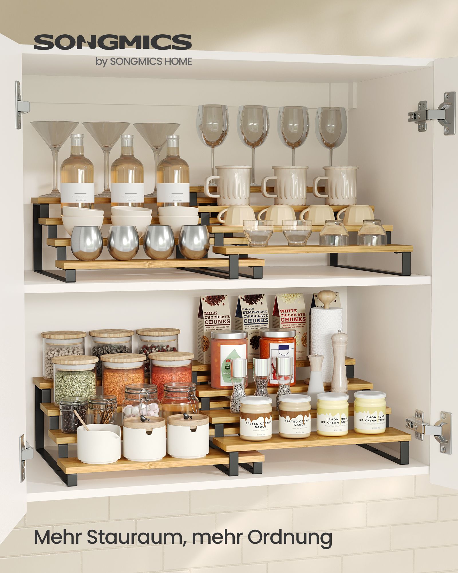 SONGMICS krydderihylder, st?ende k?kkenhylder, k?kkenorganizer, 2-pak, tr?materiale, 4 hylder hver, udtr?kkelige, stabelbare, til spisekammer, bordplade