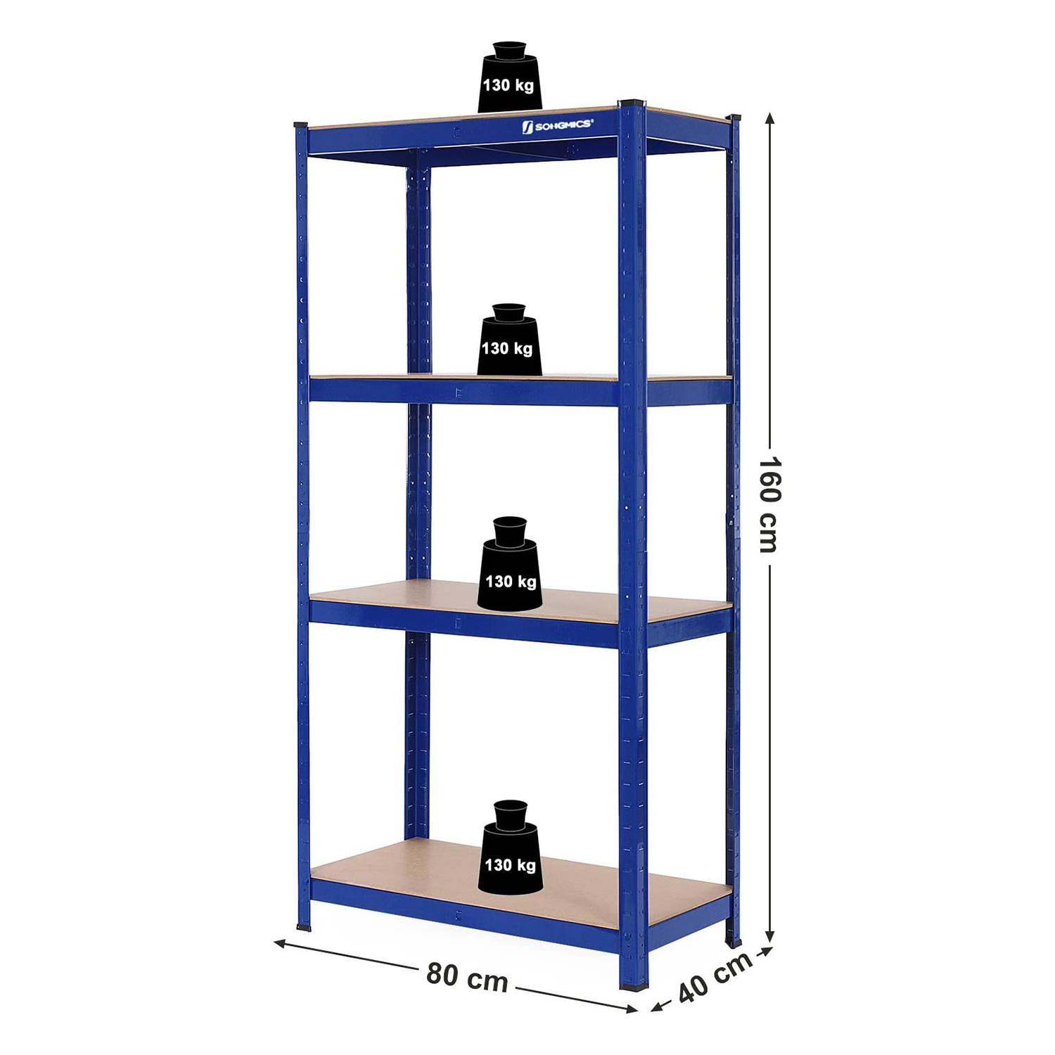 Ligger haveredskaber og forskellige redskaber spredt rundt i din garage? Har du sv?rt ved at finde de ting, du har brug for? S? er det p? h?je tid at udstyre din garage med dette lagerreol og f? styr p? kaoset. De vigtigste grunde til, at dette reolsystem fra SONGMICS er det rigtige for dig: St?lrammen og hylderne af tr?materiale giver et solidt hold.Forst?rkningerne p? benene og tv?rst?ngerne under hver hylde ?ger stabiliteten. Pulverlakeringen er rustfast og slidst?rk. Hver hylde kan b?re v?gte op til 130 kg.Afstanden mellem de enkelte hylder kan justeres fleksibelt. Du kan ogs? dele reolen i to dele. Den medf?lgende v?ltesikring sikrer sikker brug. Reolen er velegnet til k?ldre, vaskerum, v?rksteder og forretningslokaler. Produktdetaljer: Farve: Bl? Materiale: St?l med pulverlakering, E1-klasse MDF (mediumdensitetsfiberplade) St?rrelse: 160 x 80 x 40 cm (H x L x B) V?gt: 10,2 kg Maks. statisk belastning pr. hylde: 130 kg Leveringsomfang: 1 x lagerreol 1 x v?ltesikring 1 x vejledning (DE, EN, FR, ES, IT) SONGMICS Bem?rkninger:B?r altid handsker under montering. Placer ikke produktet i et fugtigt milj?. Den maksimale belastning i teksten refererer til den maksimale statiske v?gt.