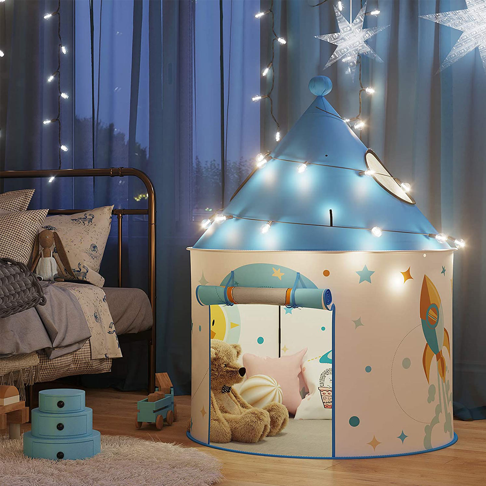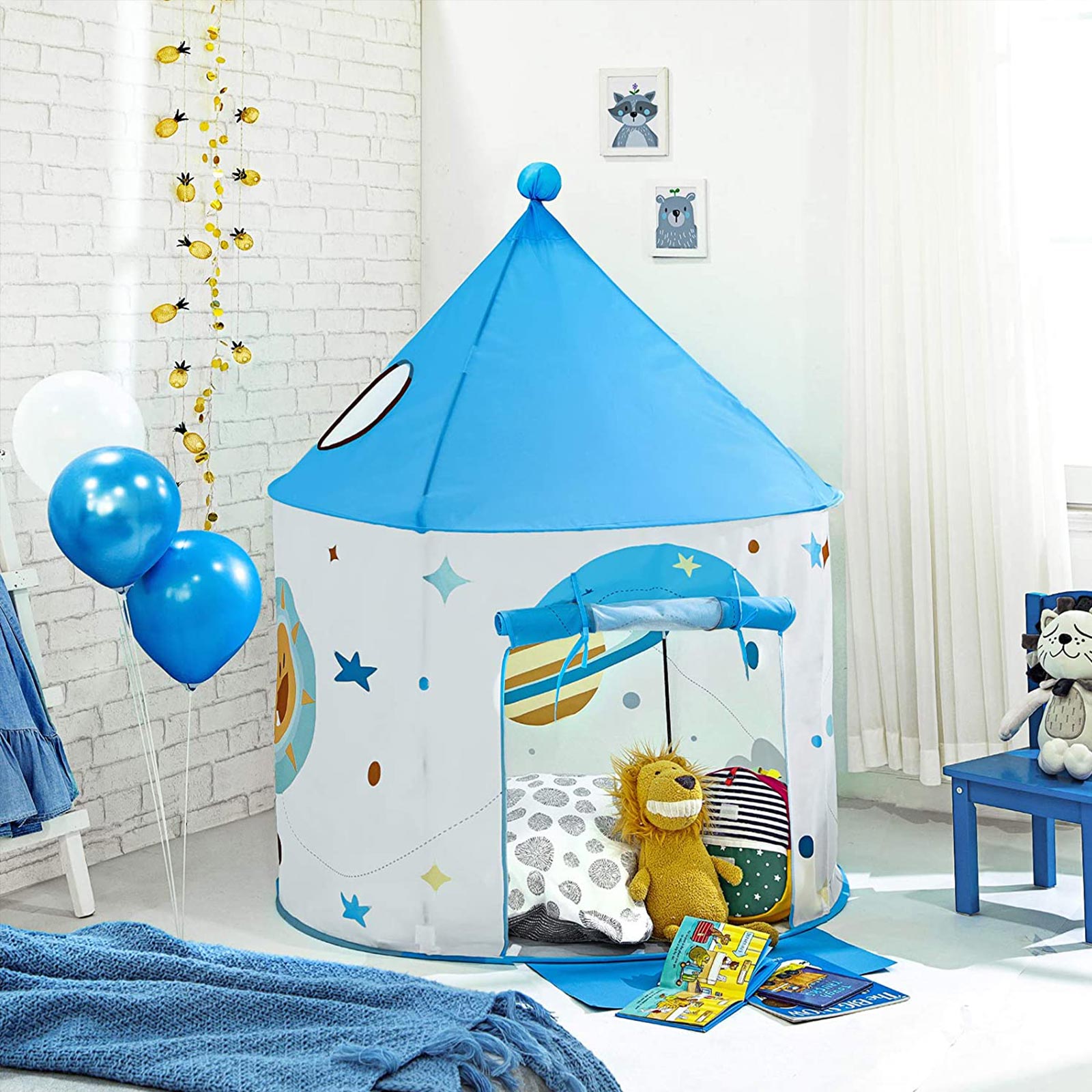 Kvalitet t?ller: 190T polyesterstof, solide glasfiberst?nger og forst?rkede s?mme – Alle disse h?jkvalitetsmaterialer sikrer, at dette legetelt kan modst? selv de st?rste vildbasser. Med denne gave kan intet g? galt: Dette legetelt fra SONGMICS er en perfekt gave til sm?b?rn. De vil helt sikkert juble af gl?de. Her kan dine b?rn lege eller l?re, indtil de er omkring 8 ?r gamle! Kilde til gl?de: Takket v?re det brugervenlige design kan du nemt folde teltet sammen og opbevare det i den praktiske b?retaske. Det vil v?re en kilde til gl?de overalt: i stuen, hos en ven eller i en solrig have. Produktdetaljer: – Farve: Hvid-bl? – Materiale: 190T polyester, glasfiberst?nger, st?ltr?de – St?rrelse: 101 x 135 cm (? x H) – V?gt: 1 kg Leveringsomfang:- 1 x legetelt – 4 x glasfiberst?nger – 1 x b?retaske – 1 x vejledning (DE, EN, FR, ES, IT) SONGMICS Bem?rkninger: – Brug ikke produktet i n?rheden af ?ben ild.