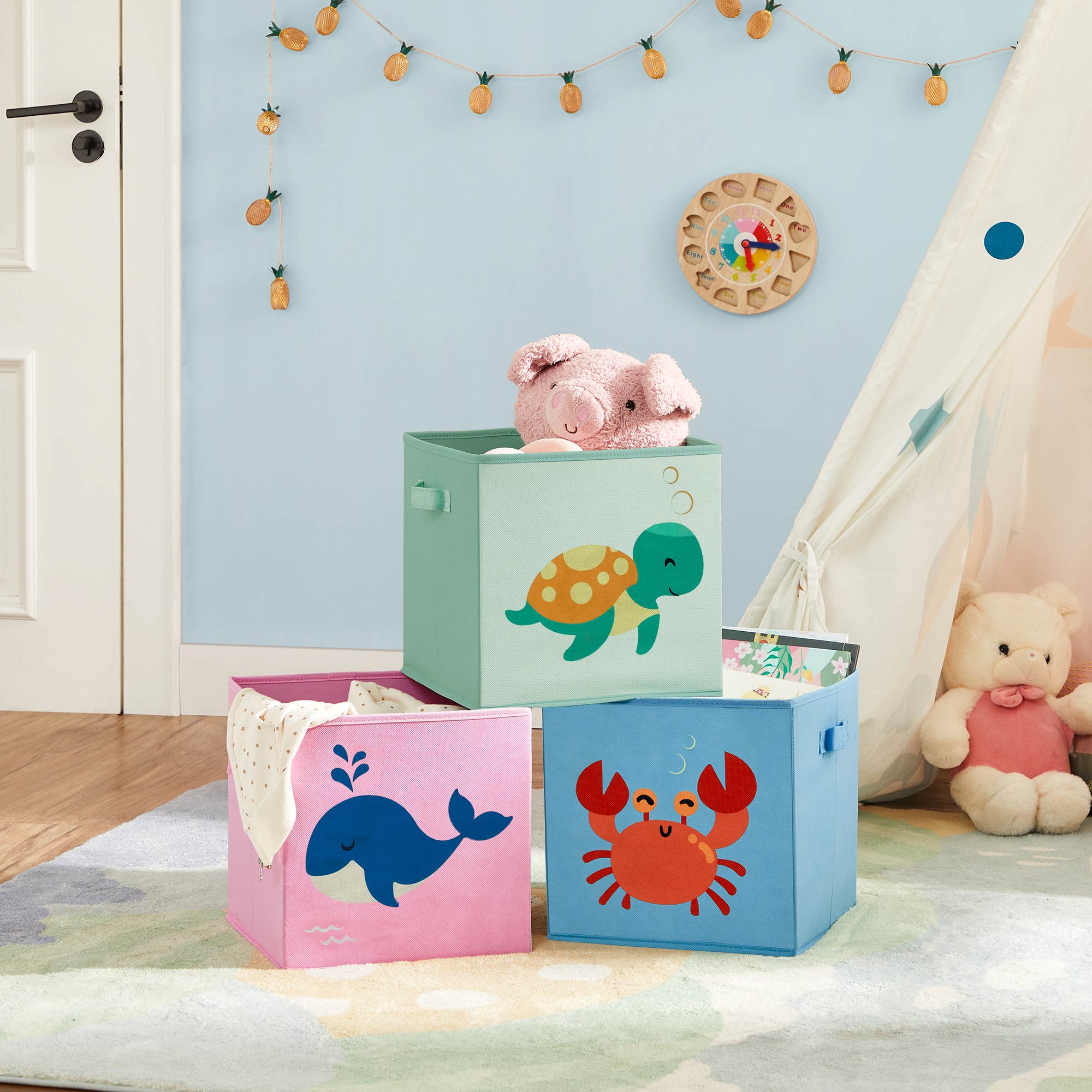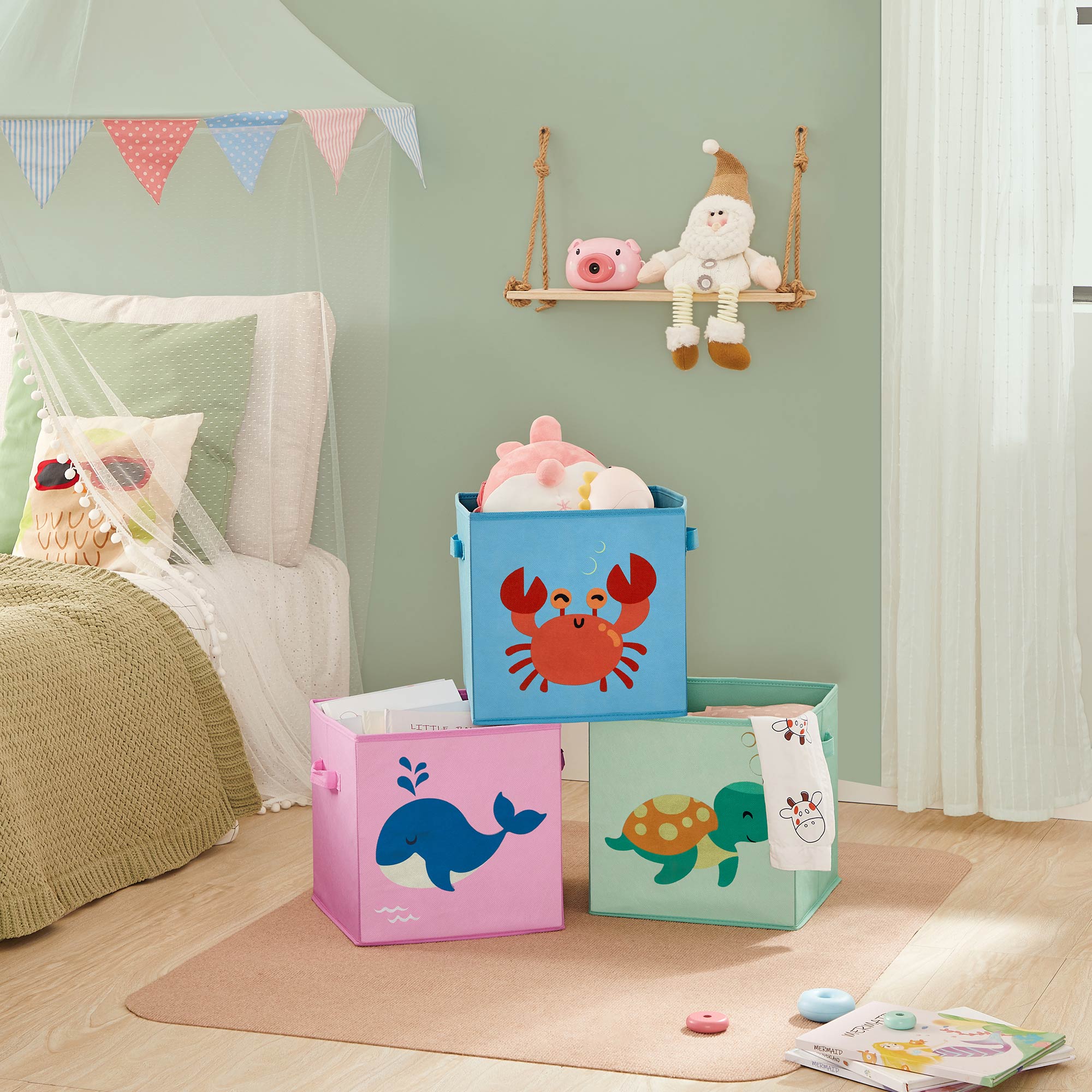 En invitation fra dyrene Endnu en dag er g?et, hvor b?rnene har leget i timevis. Men hvor skal de leget?j, der ligger spredt rundt omkring, opbevares? Bare rolig. Dette s?t med 3 opbevaringskasser med dyremotiver giver dig en l?sning. S? kan de sm? udvikle gode vaner og samtidig have det sjovt med at rydde op med de sjove havmotiver p? kasserne. For hele familiens komfort Hver kasse med en st?rrelse p? 30 x 30 x 30 cm er nem at opbevare og kan bruges ved blot at folde og klappe den sammen. Stil kasserne i b?rnev?relset til opbevaring af t?j og leget?j eller p? hylden i stuen til at sortere hele familiens ting. S?ttet med 3 kasser er ogs? en smuk dekoration. Produktdetaljer: – Farve: Bl?, gr?n og lyser?d – Materiale: Karton, fleece – St?rrelse pr. kasse: 30 x 30 x 30 cm (L x B x H) – V?gt pr. kasse: 0,6 kg Leveringsomfang: – 3 x opbevaringskasser SONGMICS Bem?rkninger:- T?r produktet af med en fugtig klud til daglig reng?ring. – Hvis produktet har en “ny” lugt efter udpakning, skal det placeres p? et godt ventileret sted i kort tid.