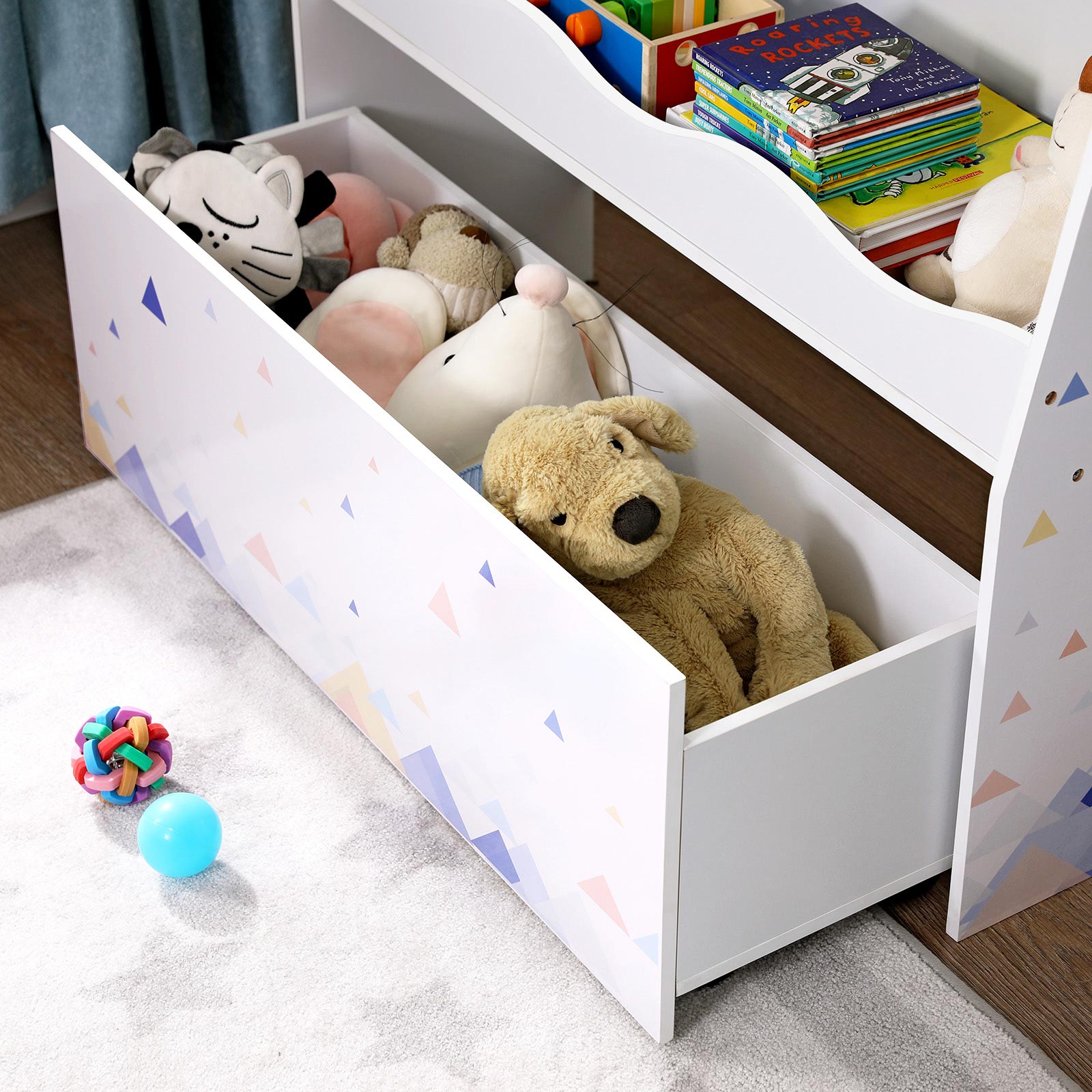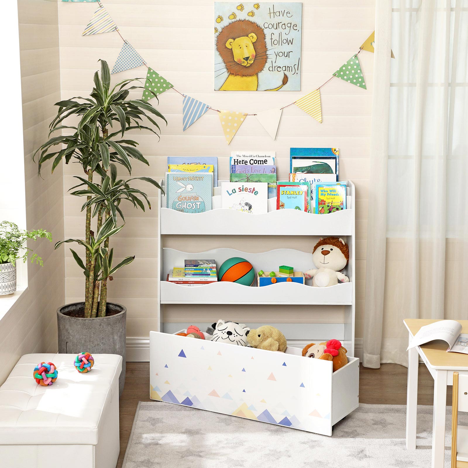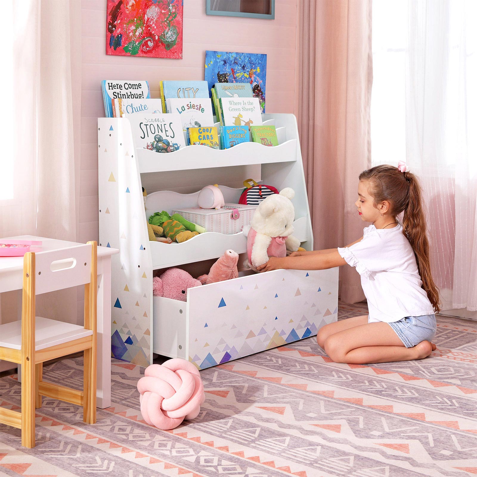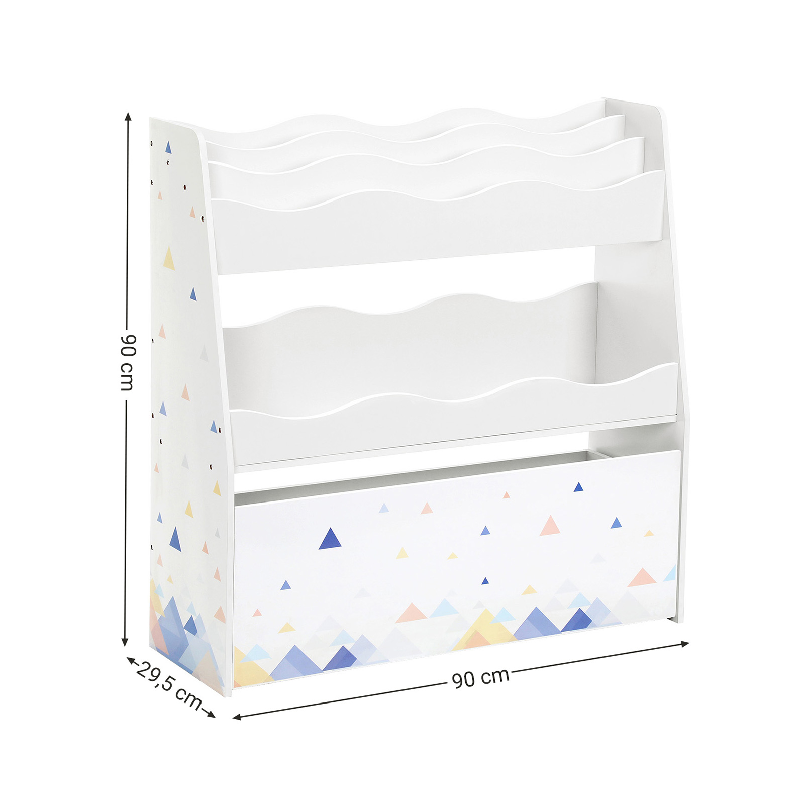 En kasse fuld af fantasi! Den rummelige leget?jskasse, den ?bne hylde i midten og de 3 rum i den ?verste del vil stimulere dine b?rns fantasi. Stofdyr, b?ger, dukker, byggeklodser, legefigurer, modellervoks ? der er plads til det hele. Lykkeamulet Dine b?rn vil stolt vise deres leget?jssamling p? hylden til deres venner. Takket v?re de delikate farver og det b?rnevenlige design tiltaler denne hylde alle b?rn og v?kker deres nysgerrighed for at opdage dens sjove hemmeligheder. Produktdetaljer: – Farve: Hvid – Materiale: MDF (medium densitets fiberplade), sp?nplade – St?rrelse: 90 x 29,5 x 90 cm (L x B x H) – V?gt: 21,3 kg Leveringsomfang: – 1 x leget?jsreol – 1 x v?ltesikring – 1 x tilbeh?rspakke – 1 x vejledning (DE, EN, FR, ES, IT) SONGMICS Bem?rkninger:- T?r produktet af med en fugtig klud for daglig reng?ring. – Hvis produktet har en “ny” lugt efter udpakning, skal det placeres p? et godt ventileret sted i kort tid.