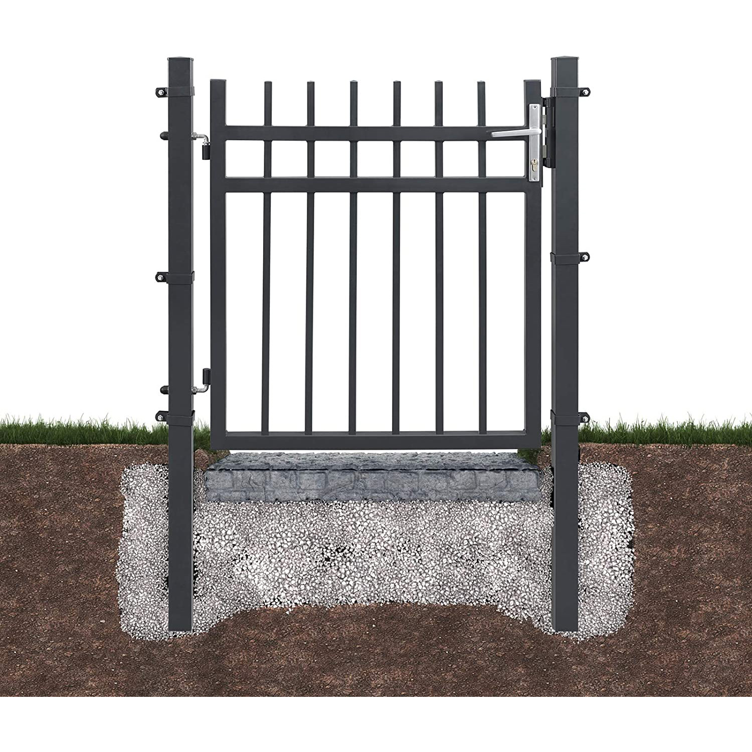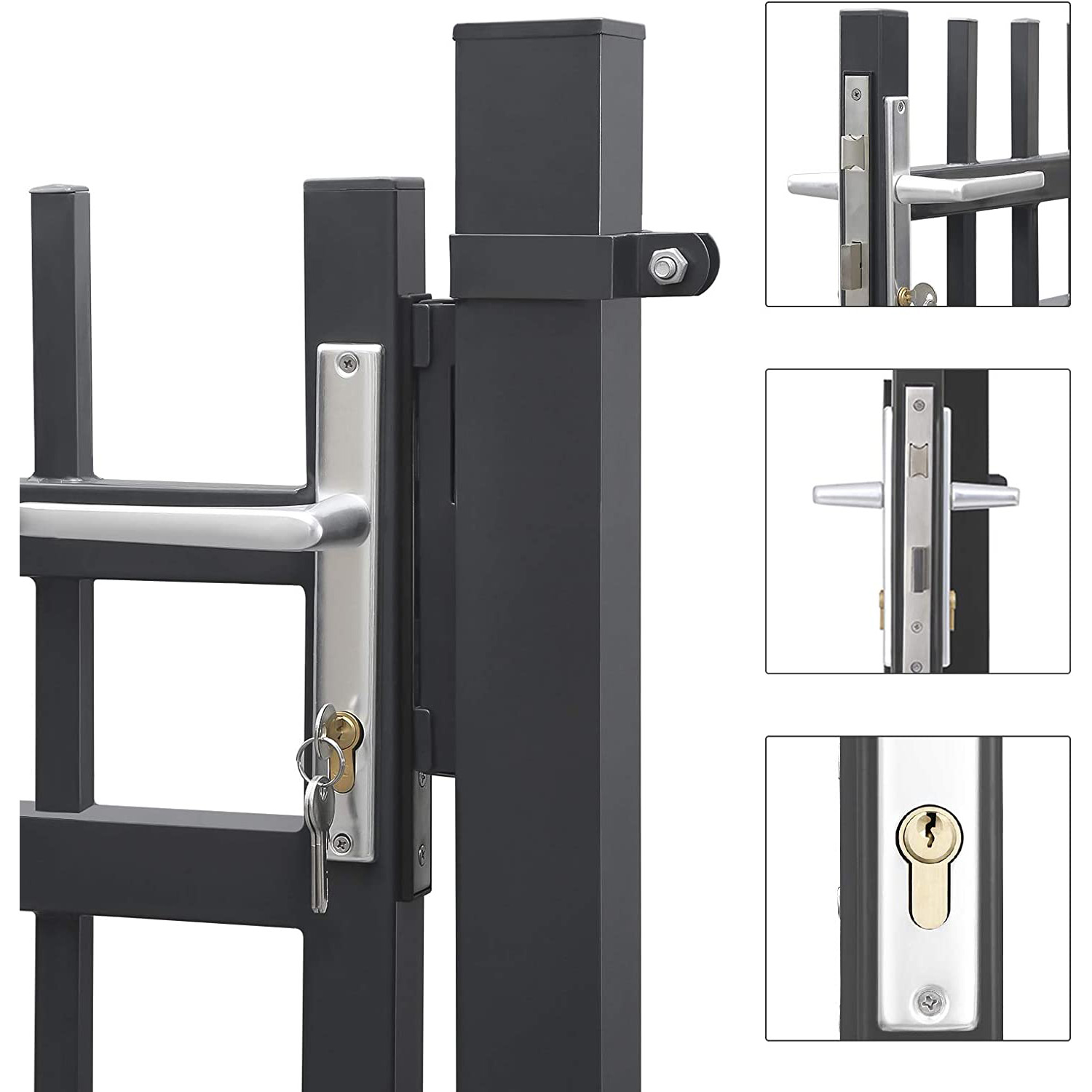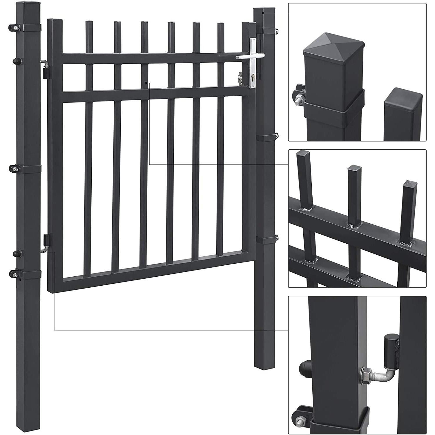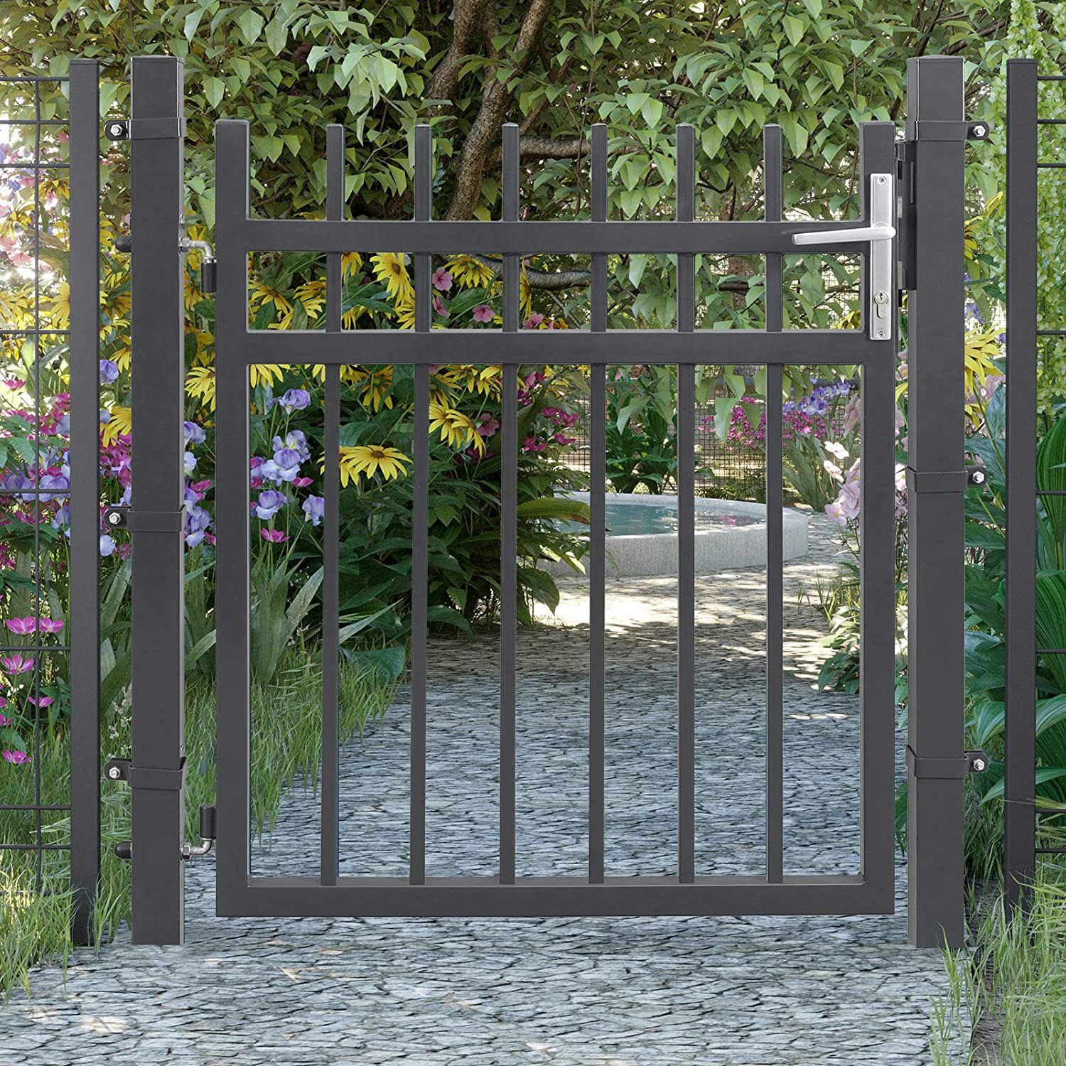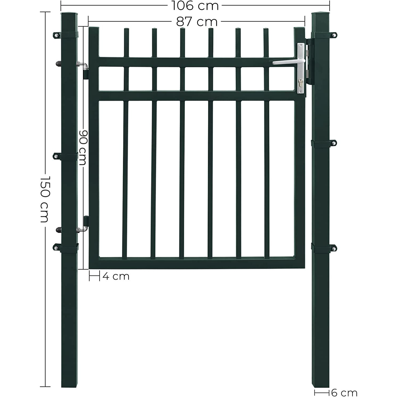 SONGMICS havel?ge af galvaniseret st?l, haved?r, hegn, g?rdport, med l?s, d?rh?ndtag og n?gle, 106 x 100 cm (L x H), gr? GGD350G