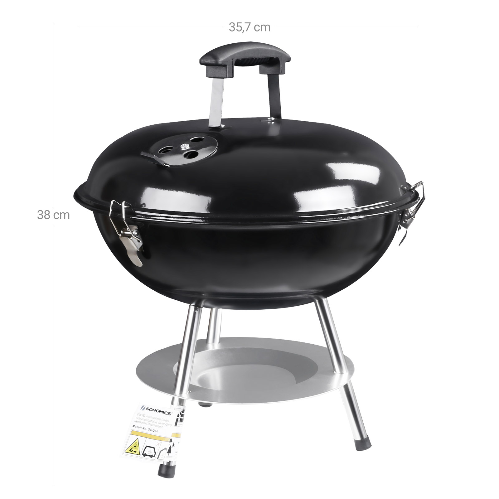 Denne kuglegrill fra SONGMICS er fremstillet af materialer af h?j kvalitet og er testet af T?V S?D i henhold til EN 1860-1-2013+A1-2017. Testresultatet var positivt. L?get har et varmebestandigt h?ndtag af nylon og kan fastg?res til grillen. Takket v?re opsamlingsbakken i den nederste del kan aske nemt opsamles og bortskaffes. Grillristen med en diameter p? 34,5 cm giver dig tilstr?kkelig plads til at grille p?lser, majskolber og lignende. Takket v?re den kompakte st?rrelse p? 38 x 36,5 x 35,7 cm er grillen ogs? ideel til camping, fester og udflugter.Med hj?lp fra l?get kan grillen desuden hurtigt bringes op p? temperatur, s? du kan nyde de l?kreste delikatesser p? rekordtid. Ideel grill til udflugter: Med en st?rrelse p? 38 x 36,5 x 35,7 cm og en tomv?gt p? kun 3 kg er den lille grill ideel til campingudflugter eller andre korte ture. De 3 ben sikrer h?j stabilitet, og askeskuffen giver st?rre sikkerhed ved grillning. Hurtig grillning: Takket v?re l?get kan grillen hurtigt bringes op p? temperatur. Ventilationsskiverne p? l?get og grillsk?len regulerer ogs? temperaturen. L?get kan fastg?res til grillen, s? du hurtigt og nemt kan transportere grillen. H?jkvalitetsmaterialer for l?ngere levetid: Grillristen er lavet af galvaniseret st?l og slides derfor ikke, selv ved hyppig grillning. L?gets h?ndtag er lavet af varmebestandigt nylon, s? du ikke kan br?nde dig under grillningen. Grillbakken og l?get er emaljerede og varmebestandige. Kulristen har p? grund af sin emaljering en l?ngere levetid end konventionelle produkter og deformeres ikke, selv under st?rk varmep?virkning.Produktdetaljer: Farve: sort Materiale: h?jkvalitets, emaljeret kulstofst?l M?l: 38 x 36,5 x 35,7 cm V?gt: 3 kg Leveringsomfang: 1 x grill 1 x vejledning (DE, EN, FR, IT, ES)