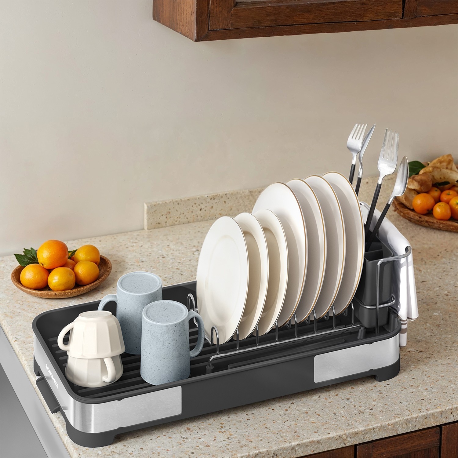 SONGMICS opvaskestativ, opvaskestativ til vask, opvaskestativ, opvaskestativ i rustfrit st?l, opvaskesk?l, bestikholder, koppholder rustfri, til opvask, s?lv-sort KCS034B01