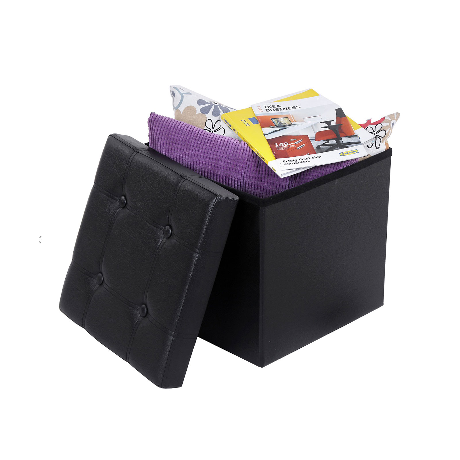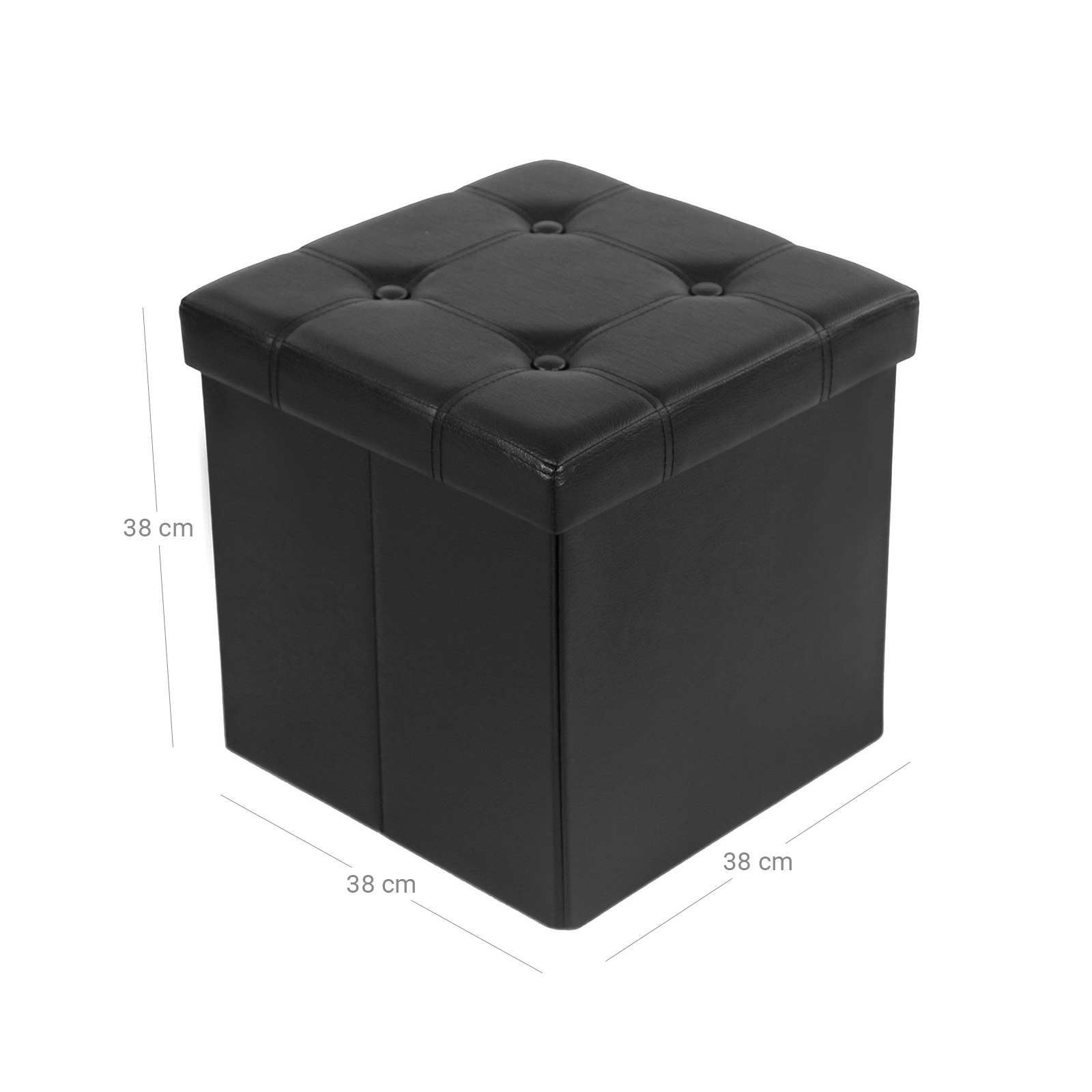 Siddestolen er en kombination af opbevaringskasse og skammel. Den tilbyder ikke kun pladsbesparende opbevaring, men passer ogs? perfekt som dekoration til alle boligstilarter og passer godt i stuen, sovev?relset, gangen og b?rnev?relset. Produktdetaljer: – M?l: 38 x 35 x 35 cm (B/H/D) – Indvendige m?l: 35 x 35 x 35 cm (B/H/D) – Materiale: MDF-fiberplader testet efter E1-standard + kunstl?der Leveringsomfang: – 1 x foldbar opbevaringskiste