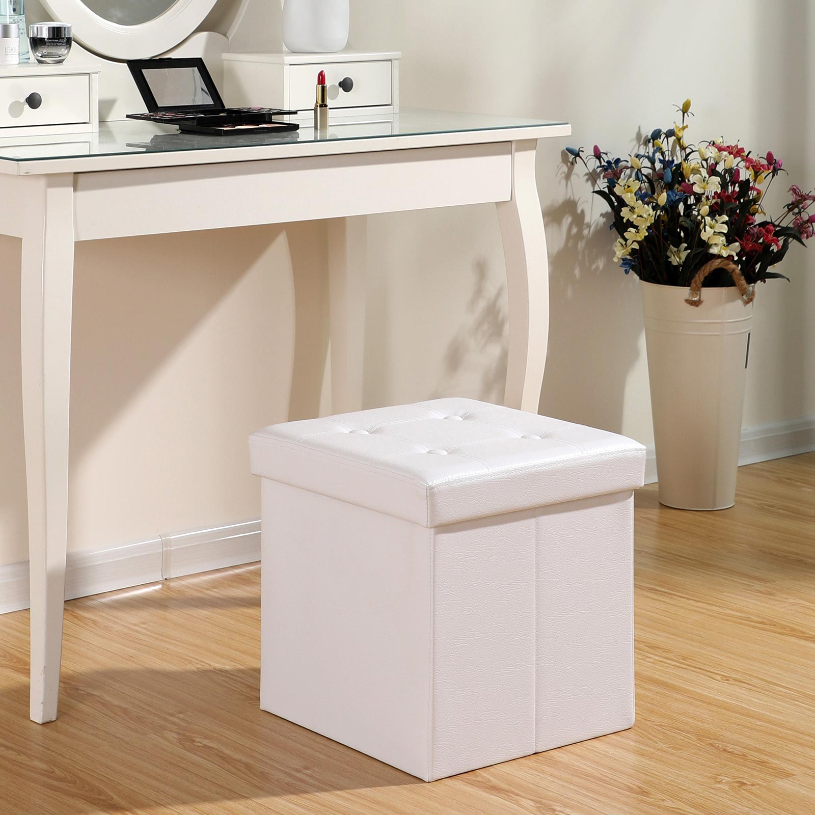 Har du altid brug for mere opbevaringsplads? Har du aldrig nok siddepladser til dine g?ster? S? vil du helt sikkert blive begejstret for den foldbare s?dekiste fra Songmics. Den tilbyder ikke kun en siddeplads, men har ogs? opbevaringsplads til forskellige ting, s?som magasiner, bamser, dvd’er, t?j osv. Desuden kan denne s?dekiste ogs? bruges som natbord, fodskammel, skoskammel, skammel osv. Takket v?re dens foldbarhed kan produktet ogs? opbevares pladsbesparende, n?r det ikke er i brug. Derudover er Songmics s?dekisten godt forarbejdet, og alle s?mme er syet p?nt. Den er et sandt pladsvidunder! Produktdetaljer: – M?l: 38 x 35 x 35 cm (B/H/D) – Indvendige m?l: 35 x 35 x 35 cm (B/H/D) – Materiale: MDF-fiberplader testet efter E1-standard + kunstl?der Leveringsomfang: – 1 x foldbar opbevaringskiste