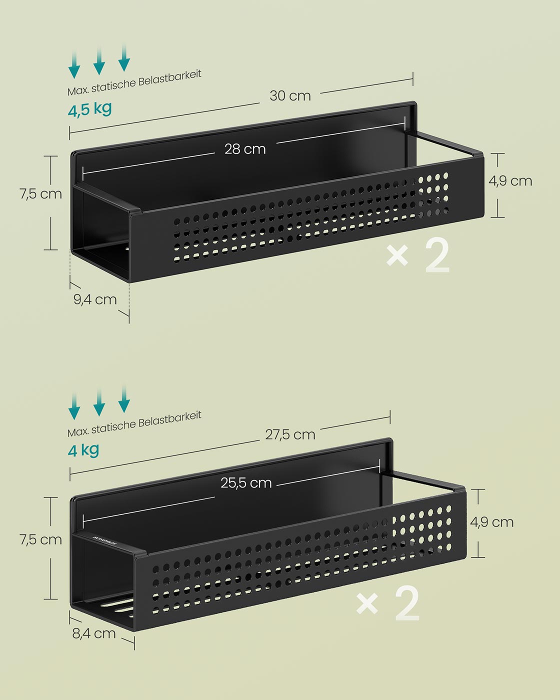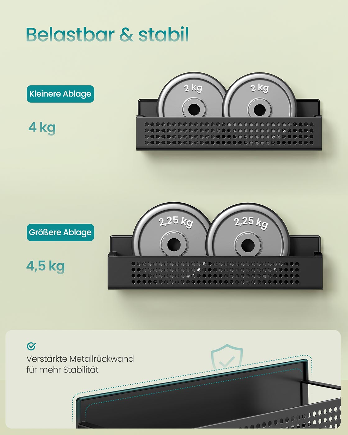 Maks. statisk belastning pr. lille hylde: 4 kg