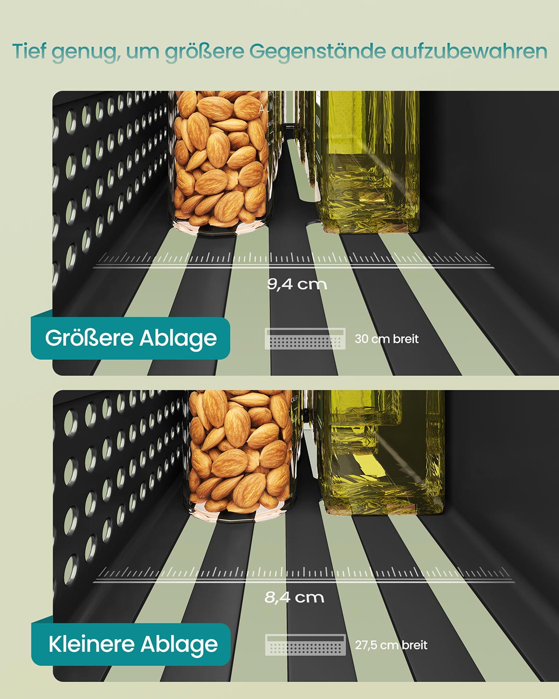St?rrelse pr. stort hylde: 10 x 30 x 7,5 cm (D x B x H)