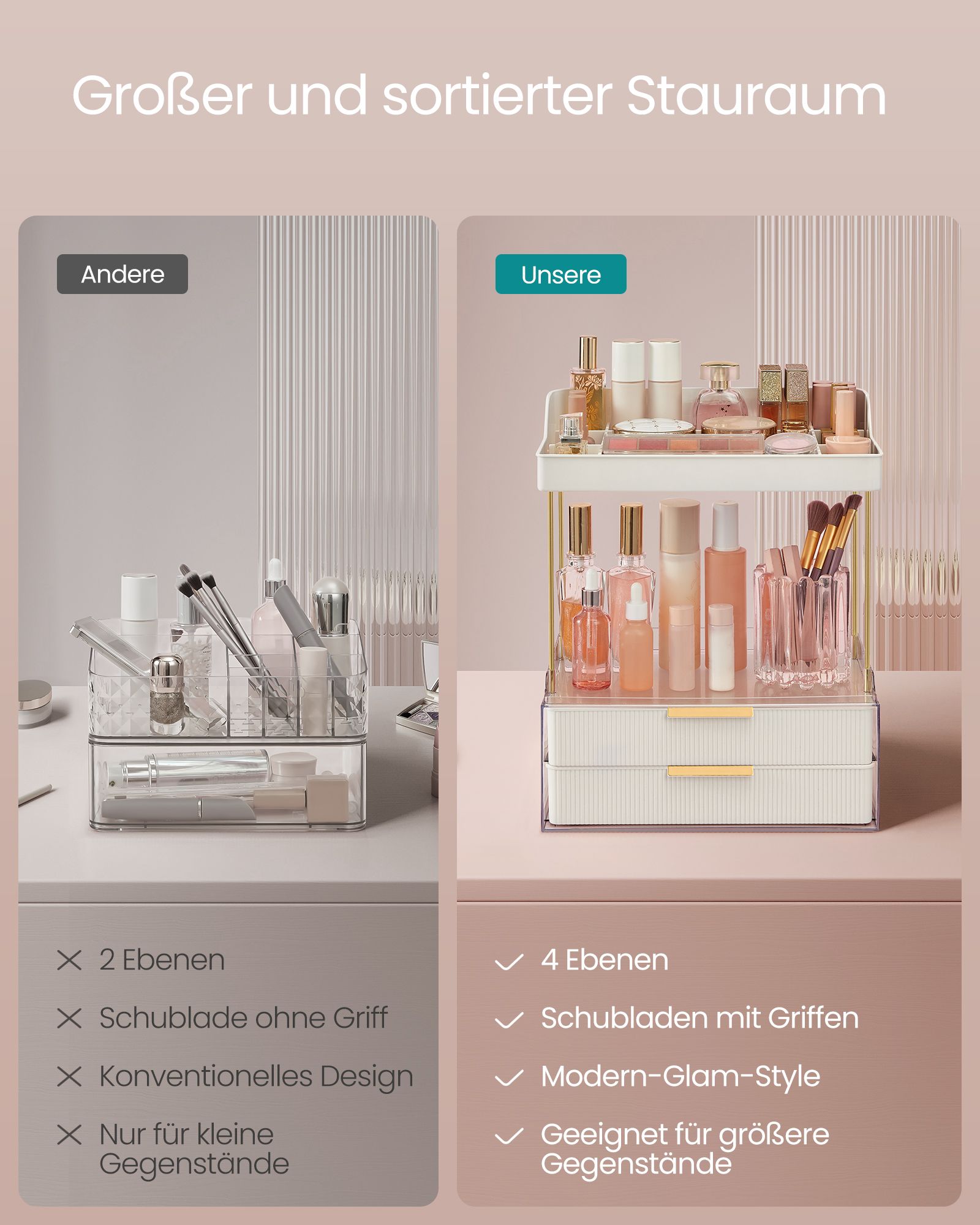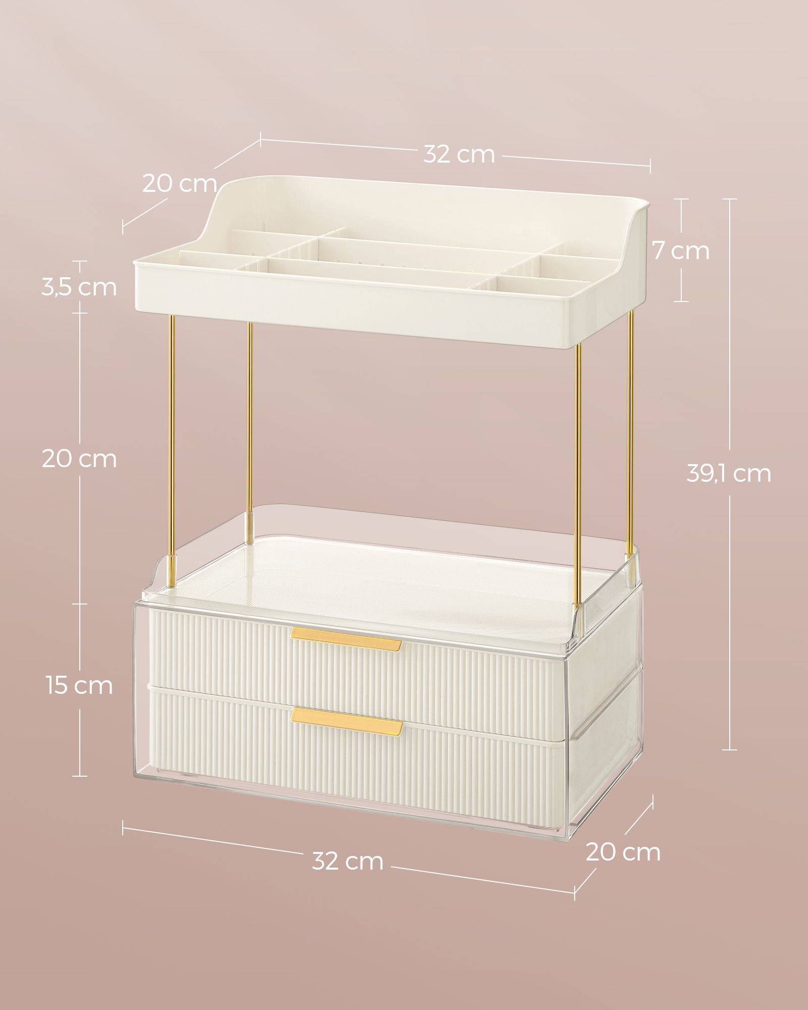 SONGMICS Makeup Organizer 4 niveauer, kosmetikorganizer, 4 skillev?gge, makeup?ske til toiletbord, skridsikker, badev?relse, sovev?relse, k?kken, 20 x 32 x 39,1 cm, skyhvid JKA021W01