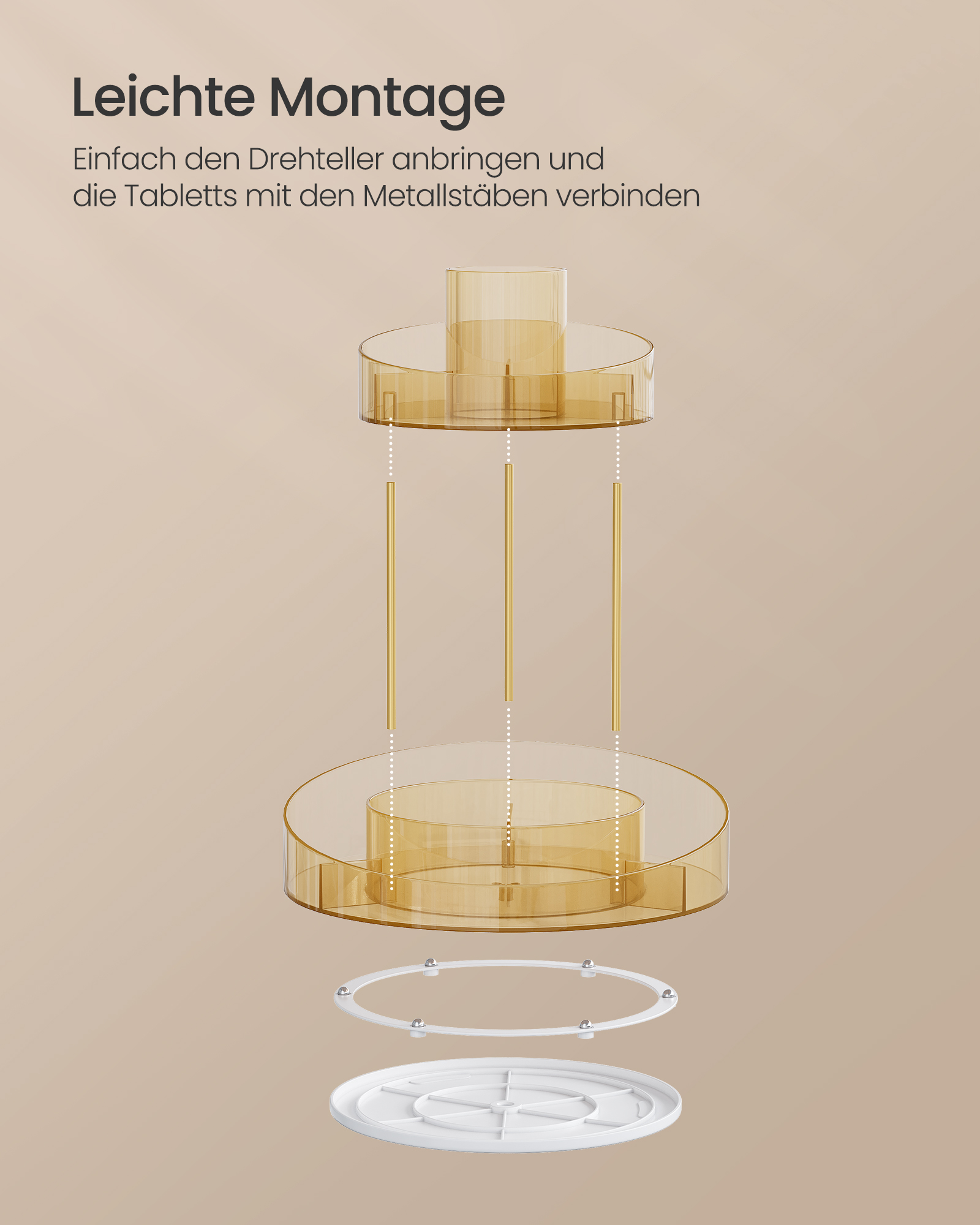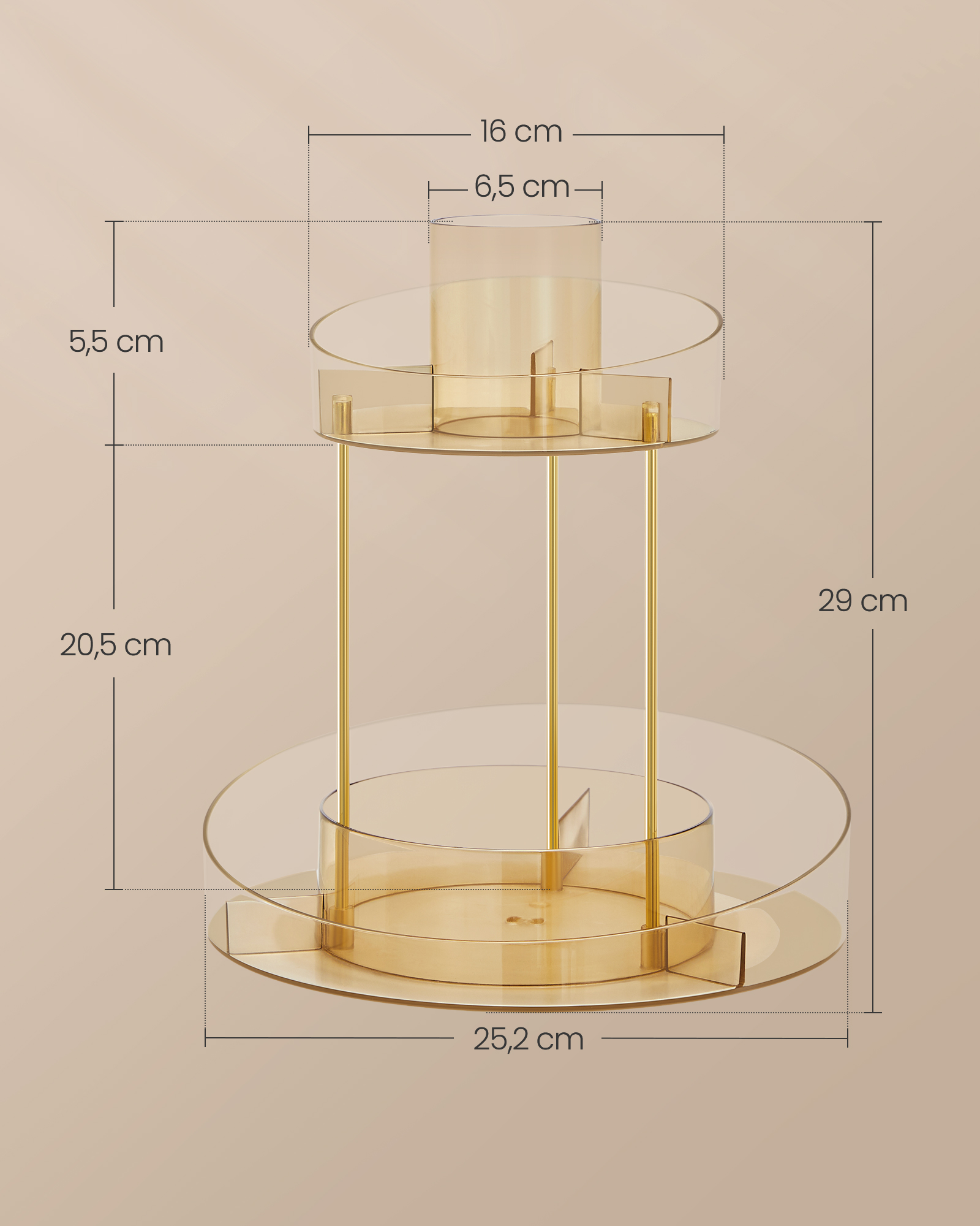 SONGMICS Makeup Organizer, drejelig, med ekstra bakke ovenp?, kosmetikorganizer med 2 niveauer, makeupopbevaring, rummelig, til toiletbord, sovev?relse, k?kken, champagneguld JKA027A01