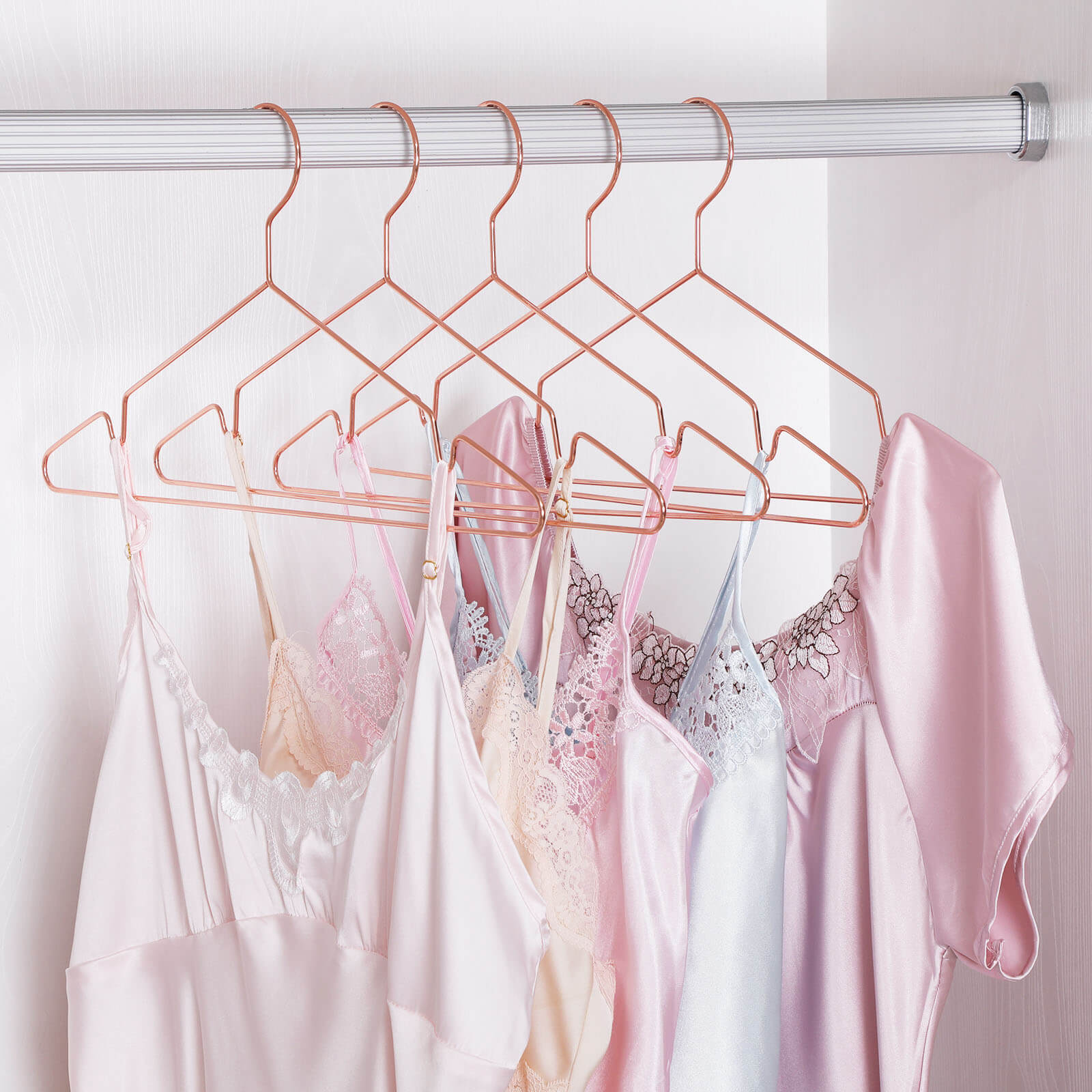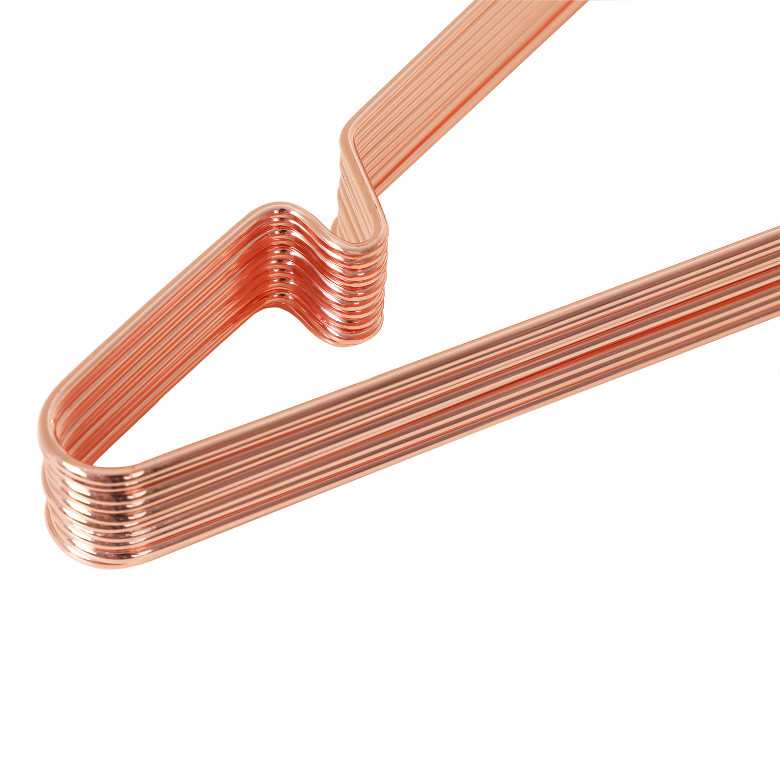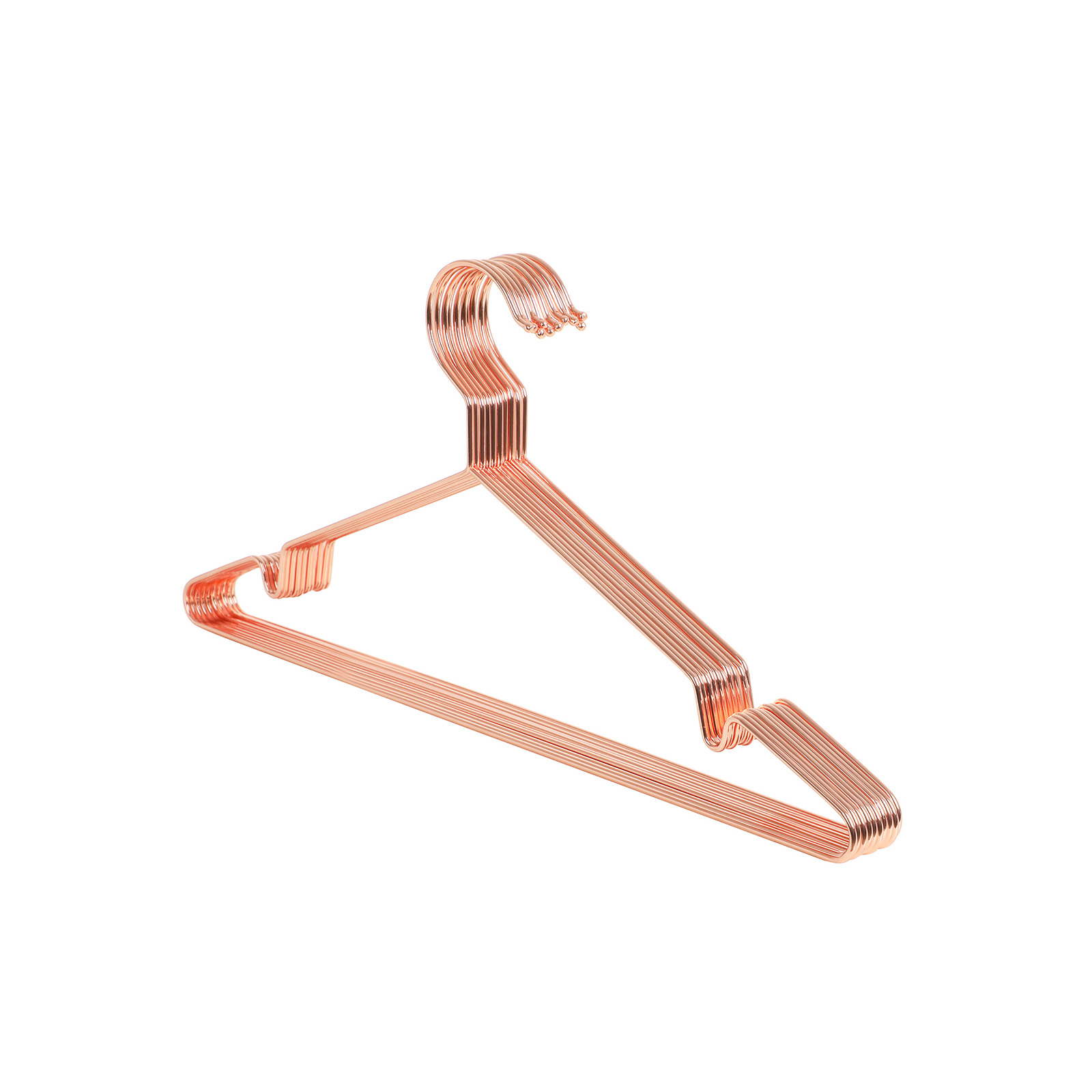Bem?rkninger: – Undg? at opbevare b?jlerne i l?ngere tid i rum med h?j temperatur. – Brug en let fugtet klud til reng?ring. Produktdetaljer: – M?l: 42 x 19,7 x 0,3 cm (B x H x D) – Farve: rosaguld – Materiale: forkromet metal – Belastbarhed pr. b?jle: 3 kg – V?gt (10 x ): 0,375 kg – Bruttov?gt: 0,4 kg Leveringsomfang – 10 x b?jler