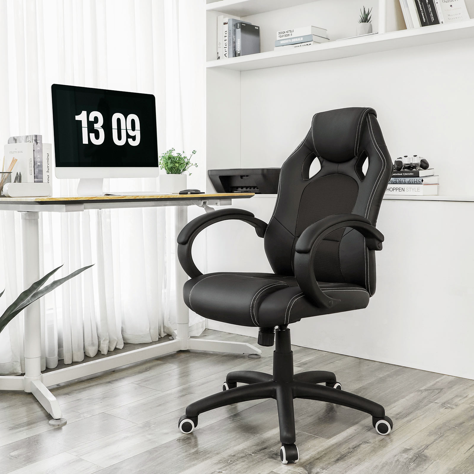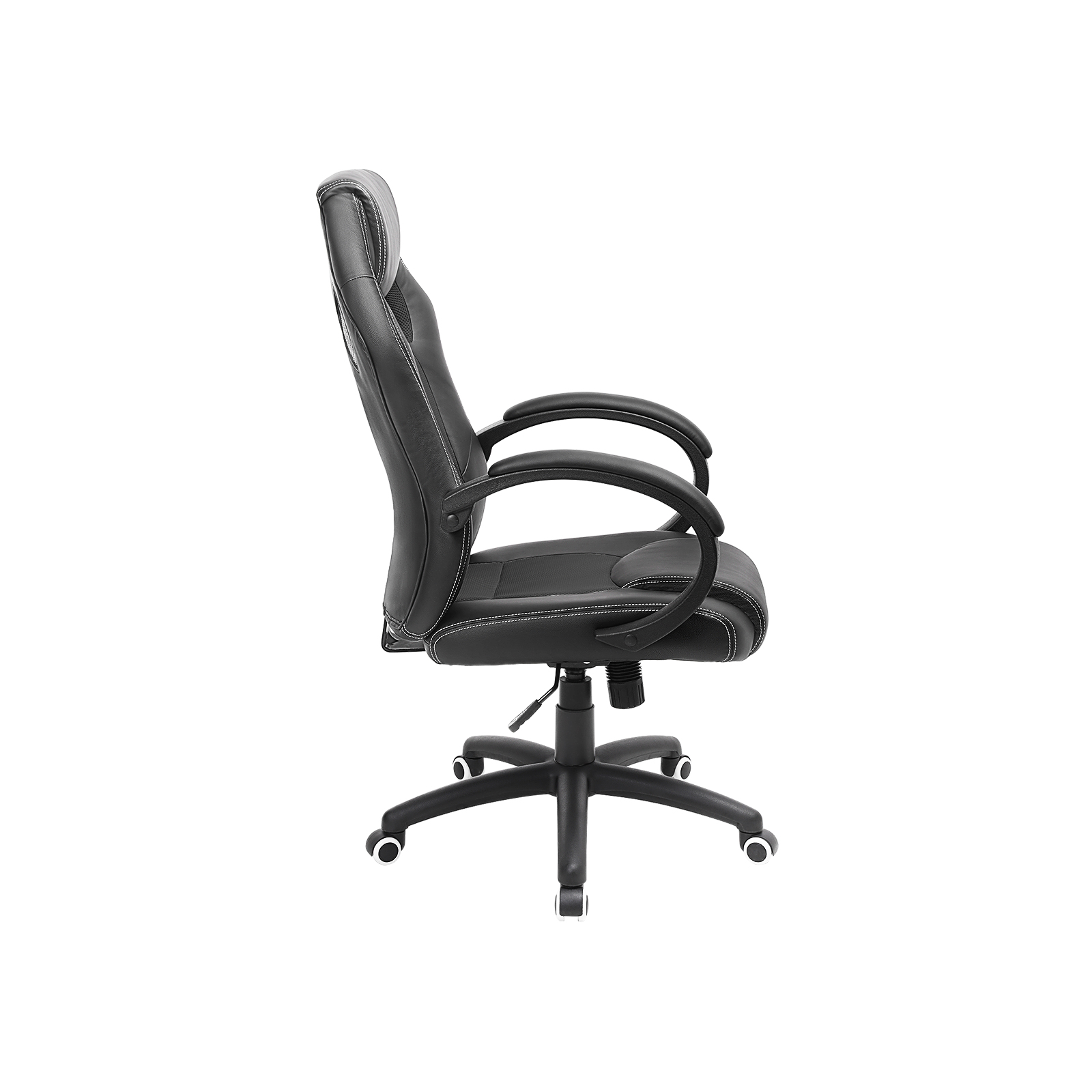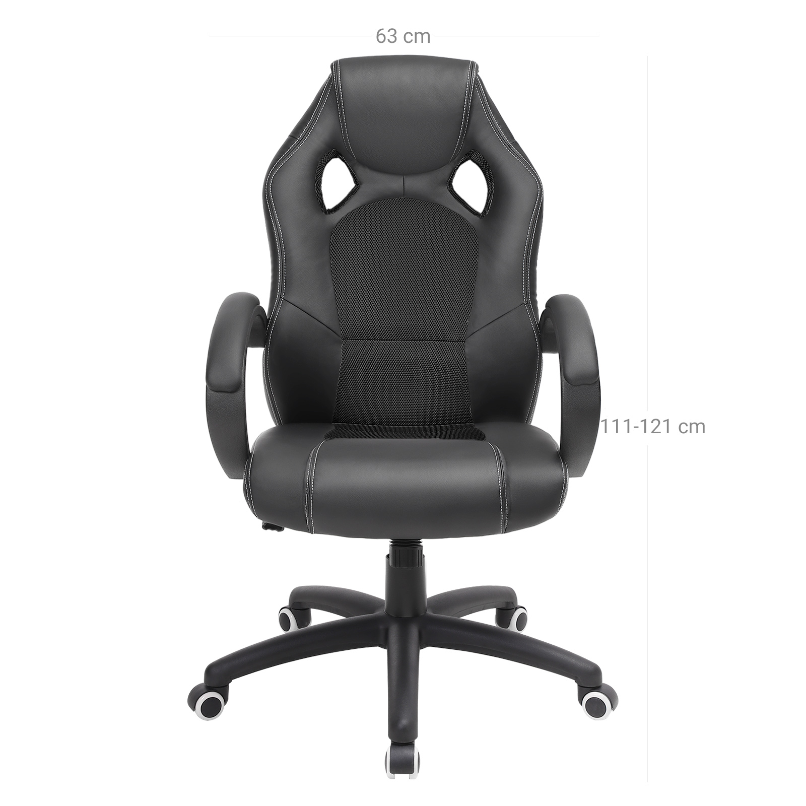 Beskrivelse: – Songmics er altid kundeorienteret og g?r sit yderste for at tilbyde produkter af h?j kvalitet til en god pris. Sogmics kontorstol i stilfuldt design kombinerer funktionalitet og komfort med forn?jelse! – Med materialer af h?j kvalitet og forbedrede tilbeh?rsdele er kontorstolen fra Songmics virkelig komfortabel, praktisk og holdbar. Et absolut blikfang i dit rum! Bem?rk: – N?r du samler st?ttedelen, skal du v?re opm?rksom p?, at siden med m?rket “Front” skal vende fremad. – Tag fat i den bageste h?jre h?ndtag, og tr?k i den, s? kan du justere s?deh?jden trinl?st ved at belaste eller aflaste stolen, mens h?ndtaget er trukket ud, indtil den ?nskede s?deh?jde er n?et. Tr?kker du h?ndtaget udad, aktiveres vippefunktionen. Rygl?net er derefter ikke fastl?st, og rygl?net st?tter ryggen i alle bev?gelser og bev?ger sig dynamisk med. Hvis du trykker h?ndtaget indad igen, deaktiveres vippefunktionen. Rygl?net kan fastl?ses igen. – N?r vippefunktionen er aktiveret, bev?ger s?det og rygl?net sig sammen, n?r du l?ner dig tilbage. Rygl?nets h?ldning kan ikke ?ndres separat fra s?det. Produktdetaljer: – Total h?jde: ca. 111-121 cm – Rygl?nets h?jde: ca. 73 cm – S?deh?jde: ca. 45-55 cm – Stolens bredde: 66,5 cm – Arml?nets h?jde: 69-79 cm – Materiale: PU + skum + st?l + nylon – Farve: sort Leveringsomfang: – 1 x kontorstol med fodst?tte – 1 x vejledning (tysk, engelsk, fransk, italiensk, spansk) – 1 x beslagspose
