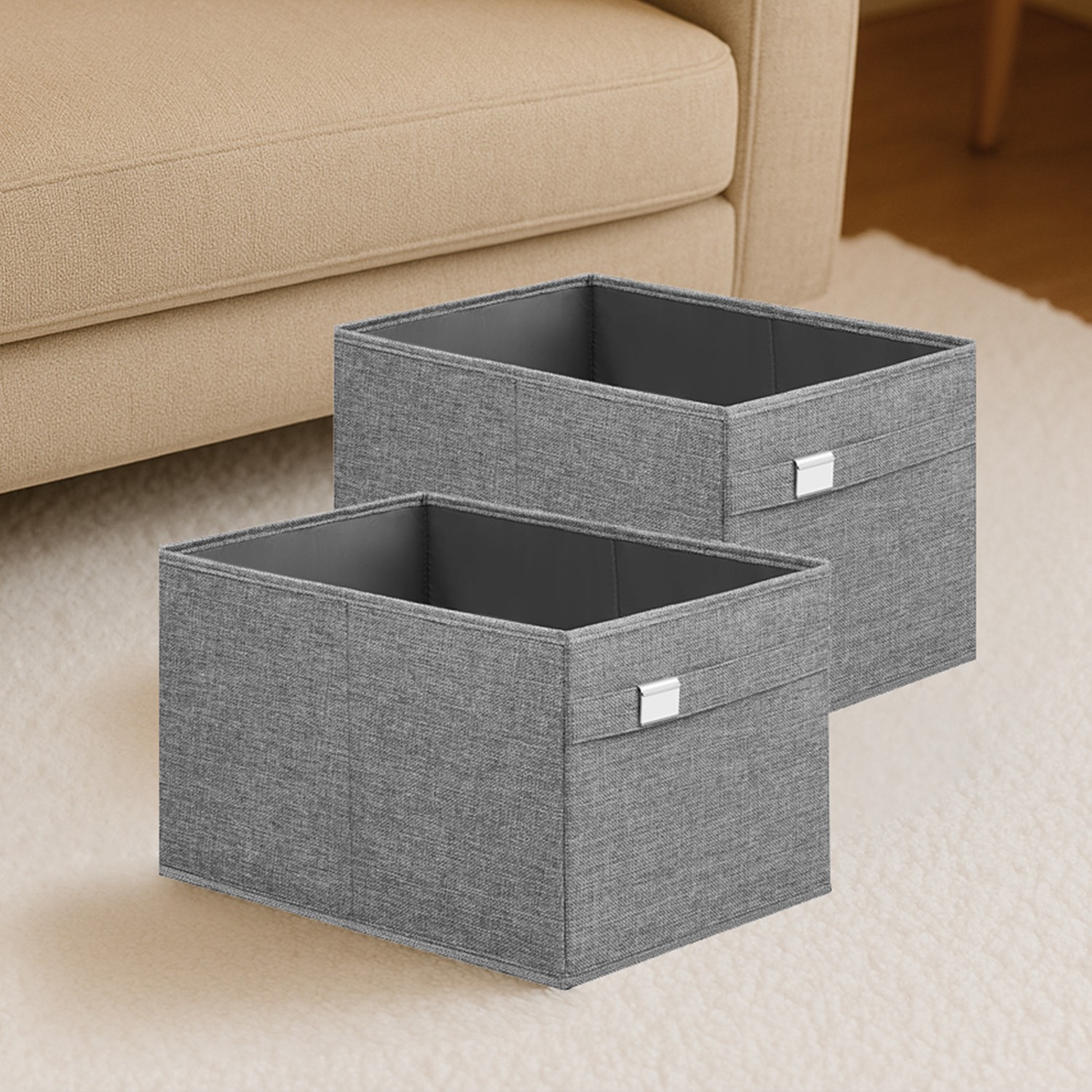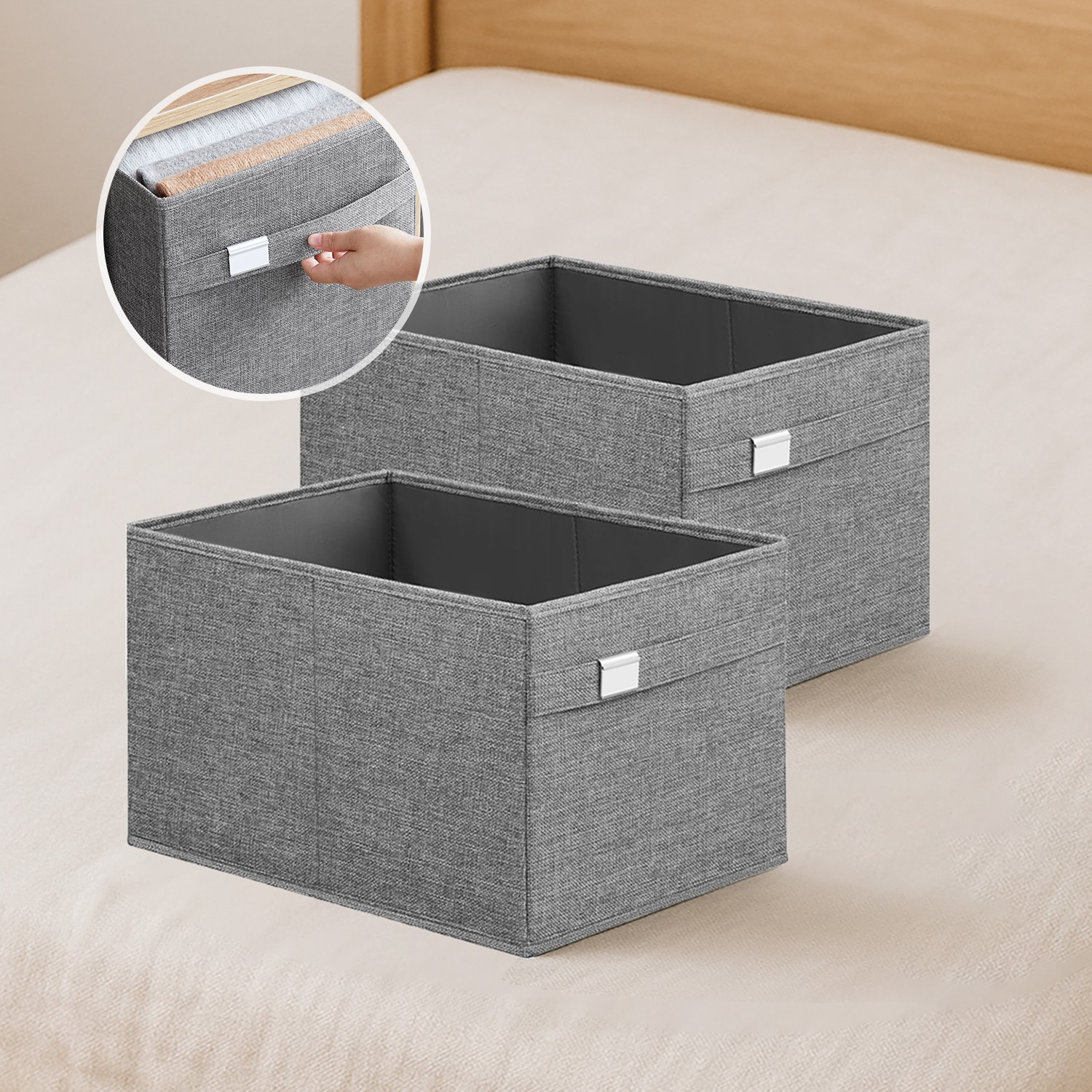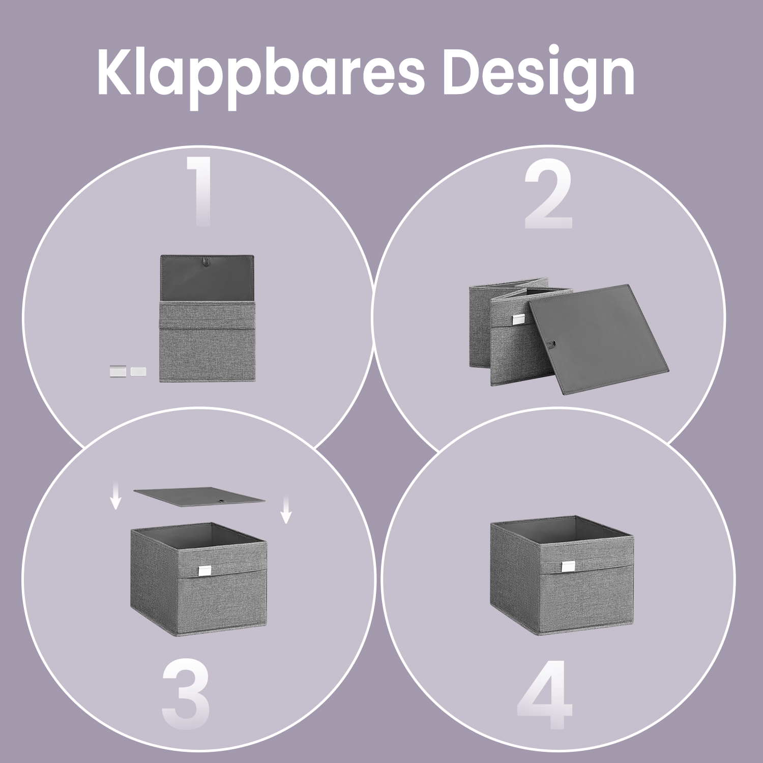 SONGMICS opbevaringsboks, 4-pak, opbevaringsbokse, 40 x 30 x 25 cm, 2 h?ndtag, foldbar, Oxford-stof og imiteret linned, nem at vedligeholde, metalskilt