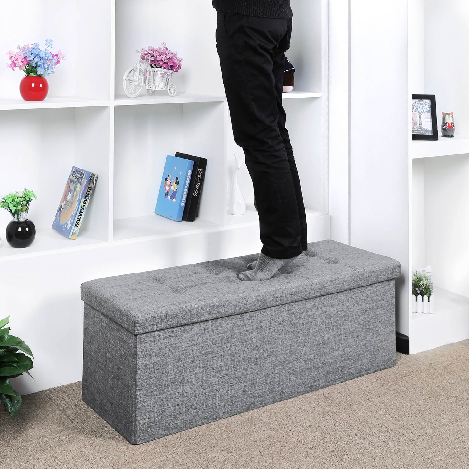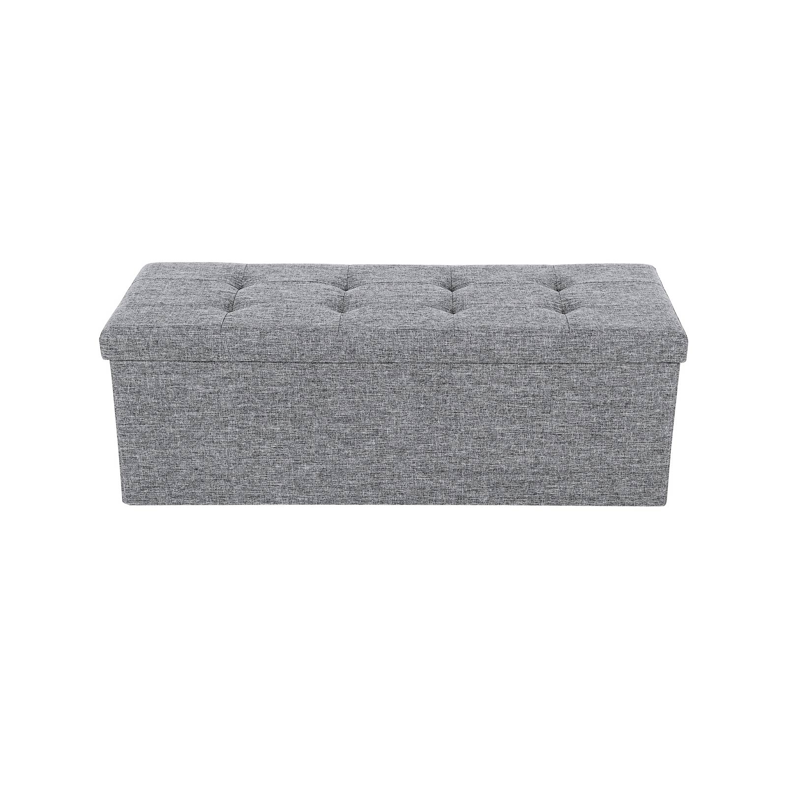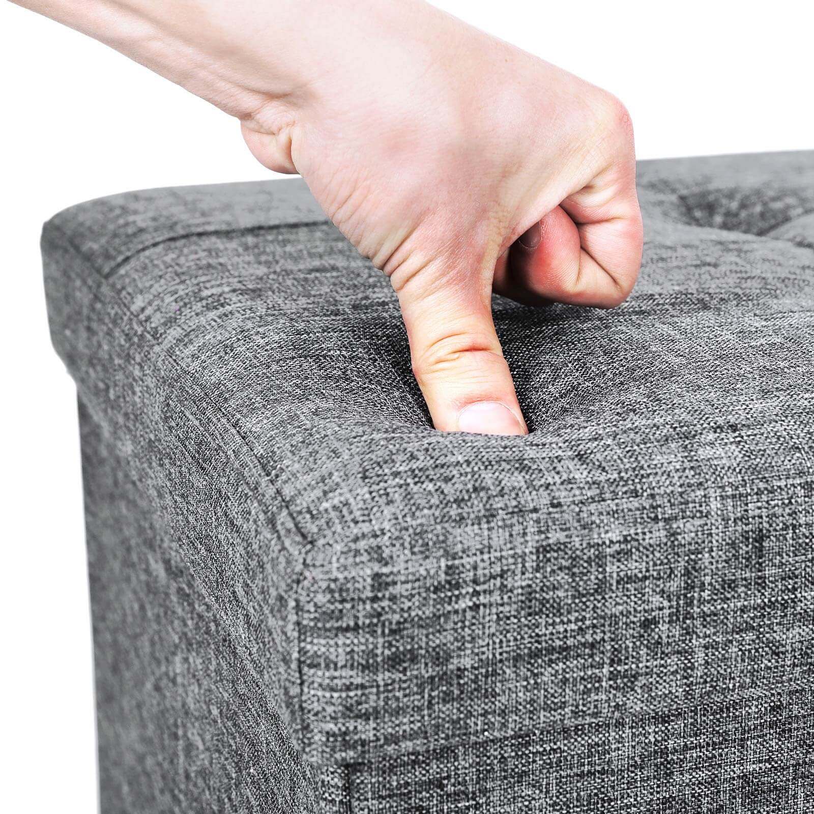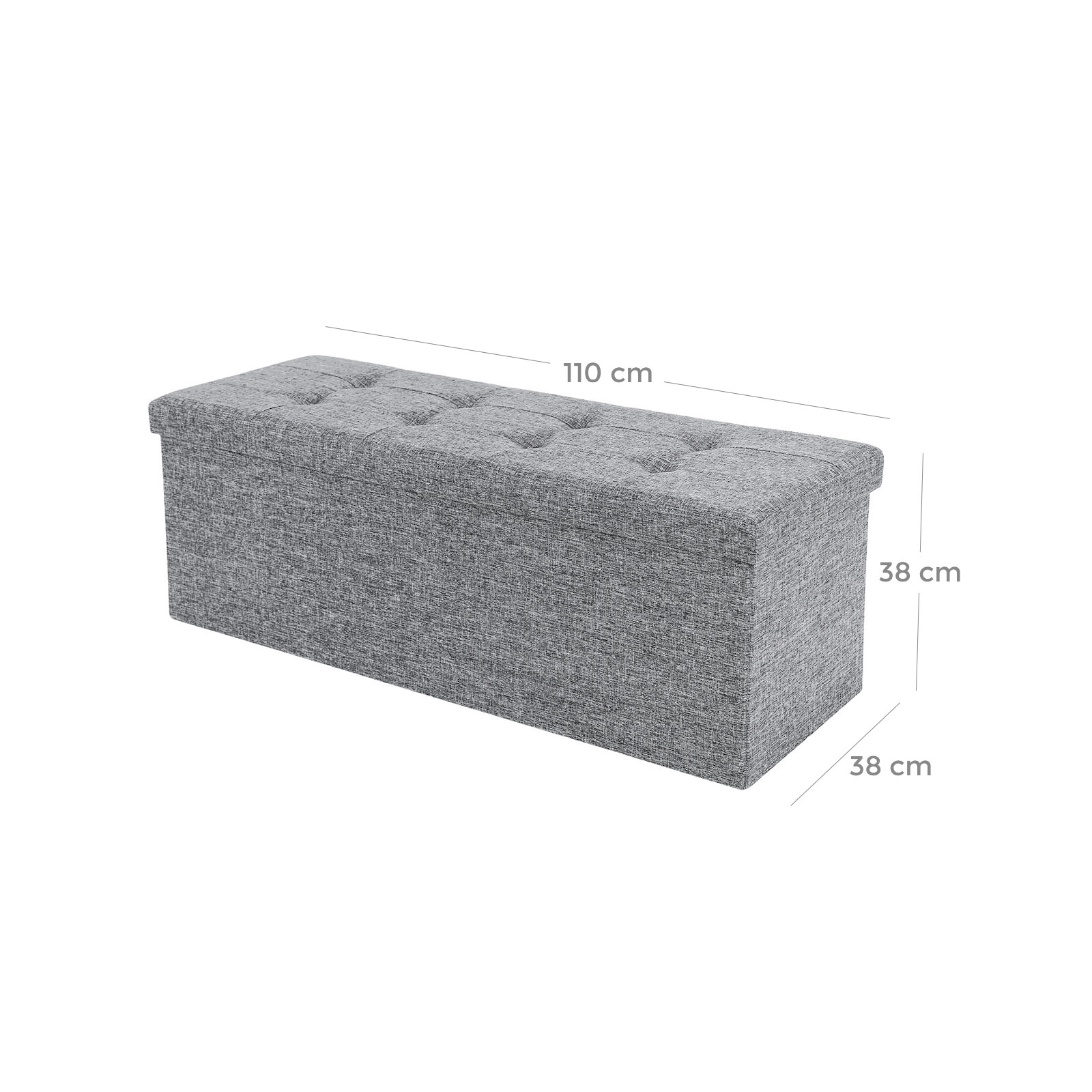 SONGMICS 110 x 38 x 38 cm sammenklappelig skammel, belastbar op til 300 kg fodskammel b?nk opbevaringsboks linned m?rkegr? LSF80GYZ
