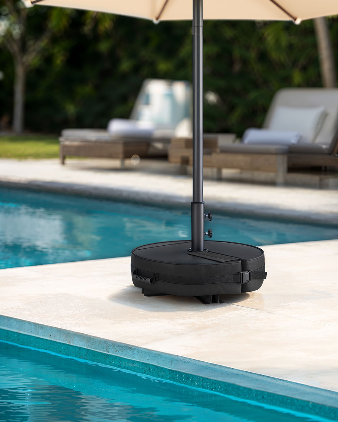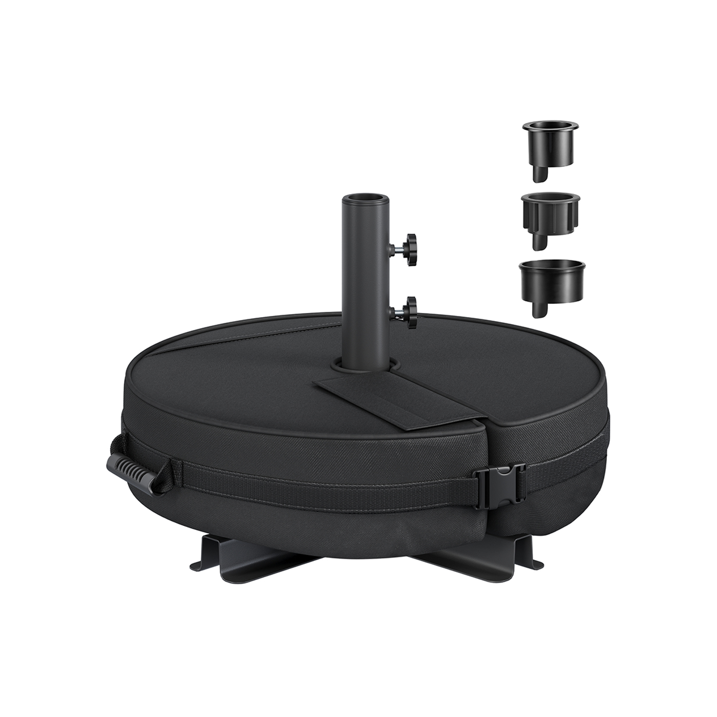 SONGMICS Parasolstativ, parasolholder, kan fyldes med sand, parasolholder, til 1,5-3 m parasol, parasolfod, med 3 reduktionsringe, sort GUB0041B01
