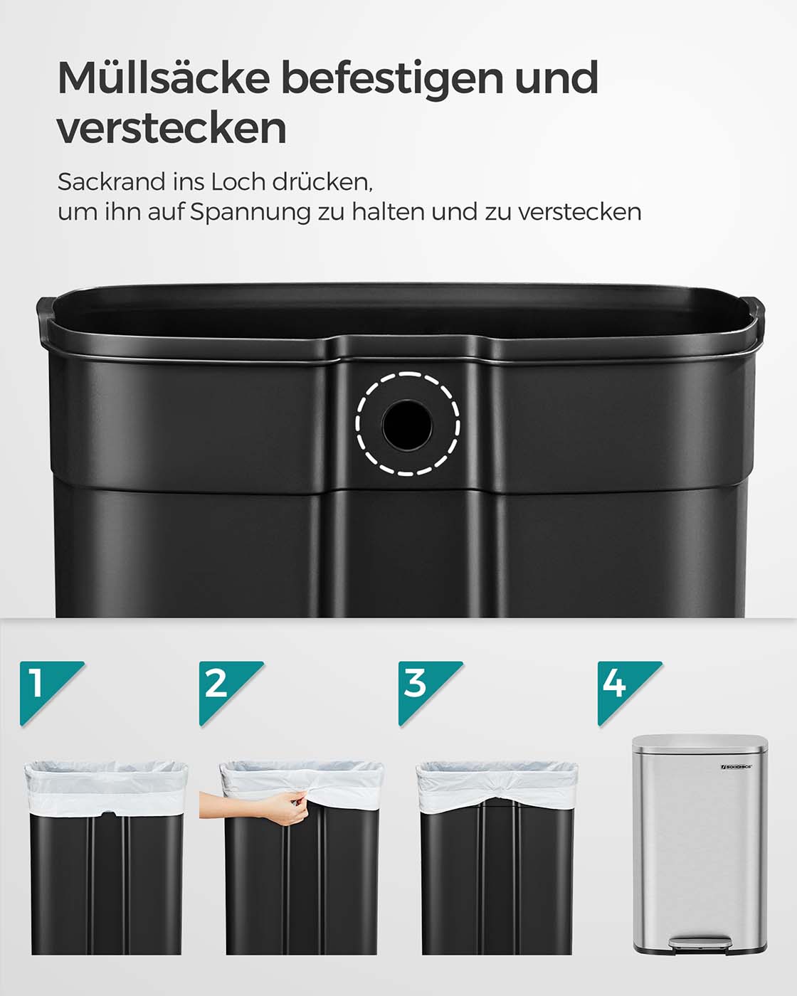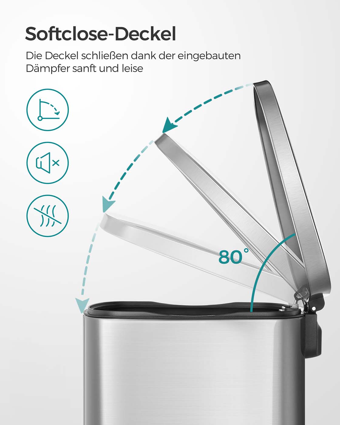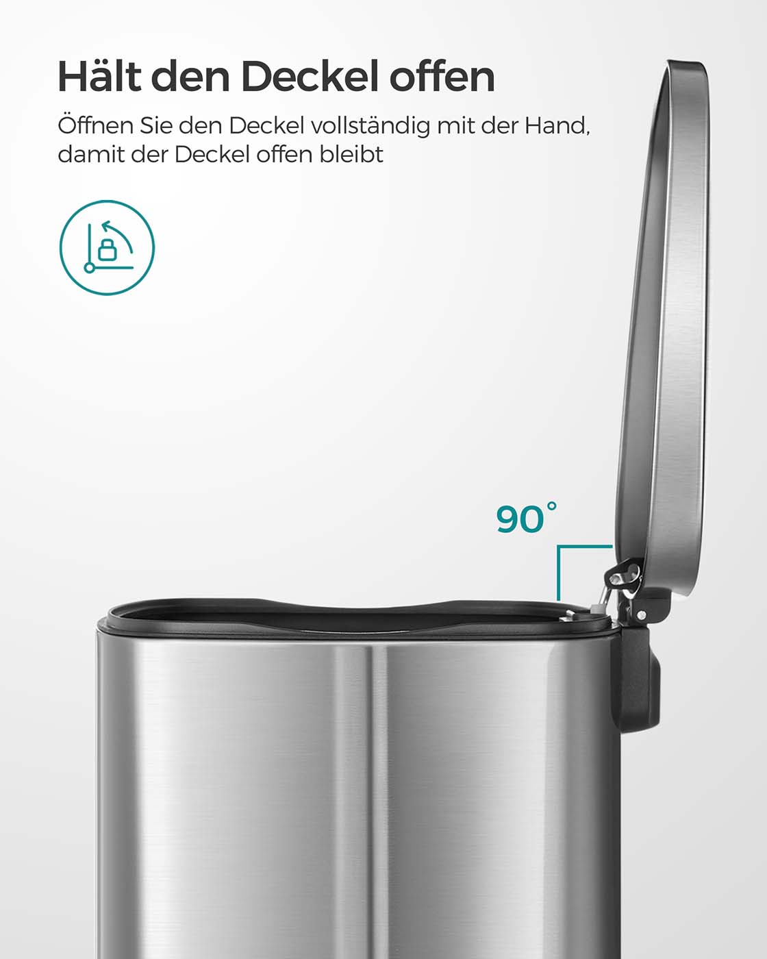 Se h?jdepunkterne ved denne pedalskraldespand: Den har en kapacitet p? 50 liter. Du kan blot tr?de p? pedalen for at ?bne l?get. L?get kan forblive ?bent i l?ngere tid. Det lukker langsomt og blidt uden st?j. Den leveres med en udtagelig inderspand i plast. Den indre spand har en ?bning til plastposen.Produktdetaljer: Farve: S?lvfarvet Materiale: St?l, PP-plast (indvendig spand) Samlet st?rrelse: 42,4 x 32 x 65 cm (L x B x H) St?rrelse p? indvendig spand: 40,4 x 27,4 x 58,4 cm (L x B x H) Samlet h?jde (med ?bent l?g): 93 cm V?gt: 6,2 kg Leveringsomfang: 1 x skraldespand SONGMICS Bem?rkninger: T?r produktet af med en bl?d, fugtig klud og brug om n?dvendigt et mildt reng?ringsmiddel.