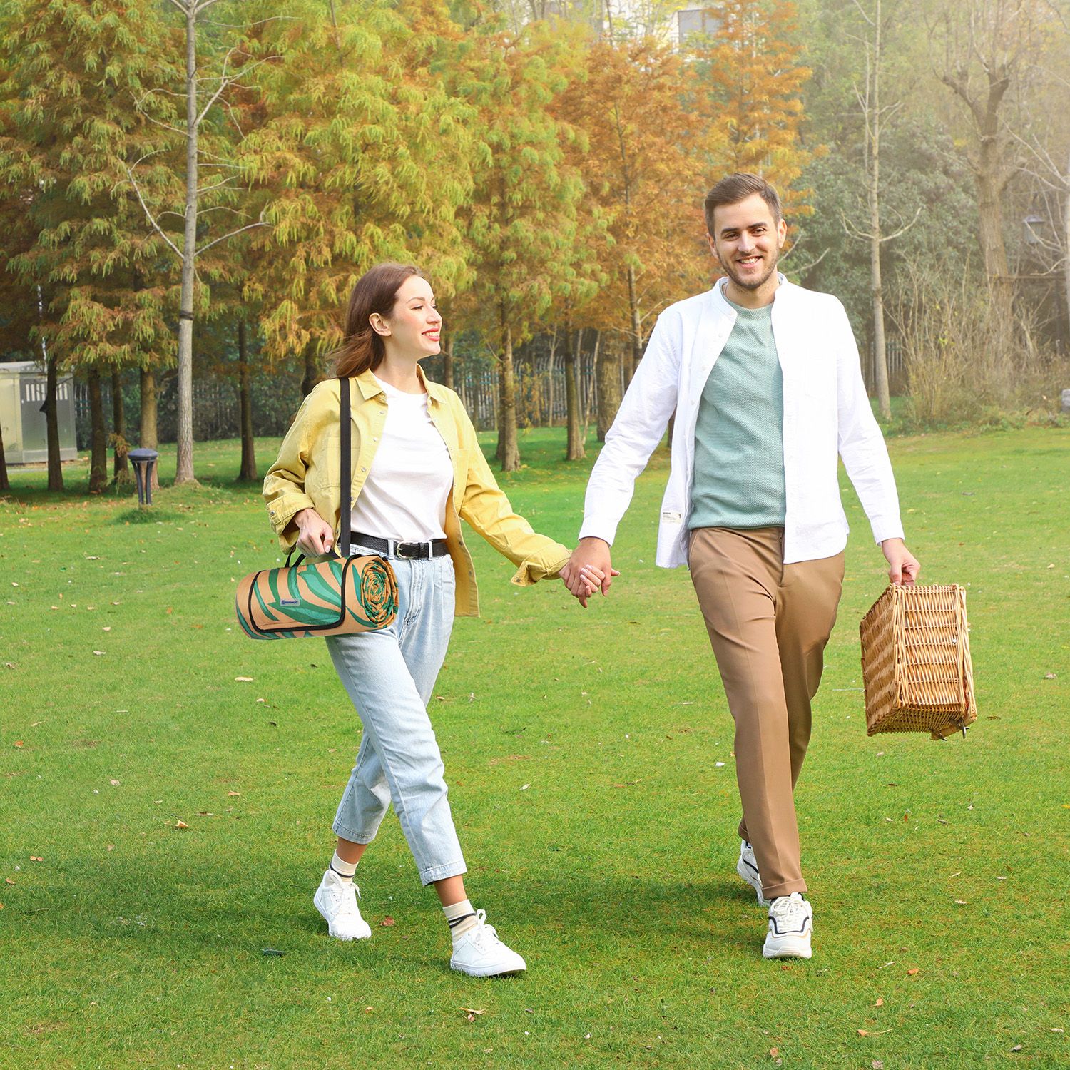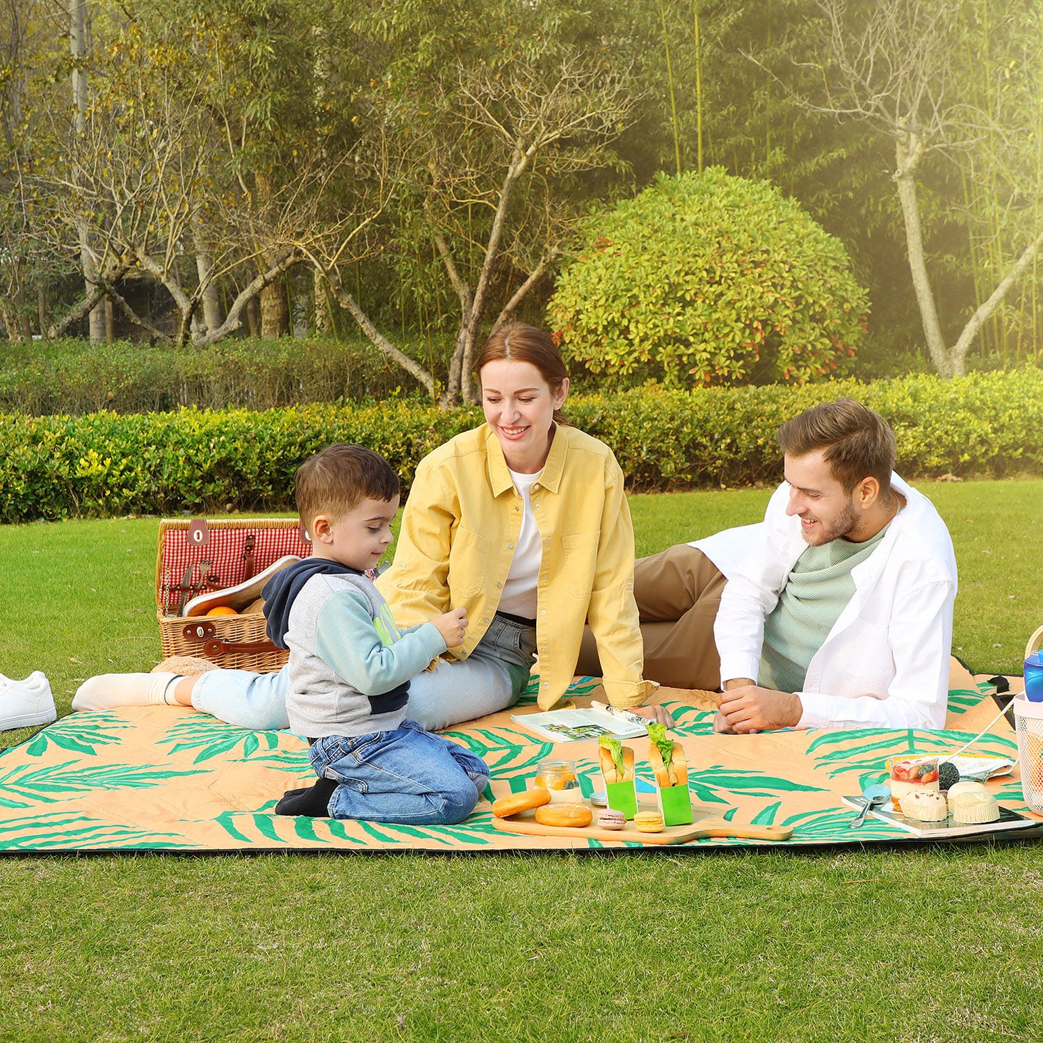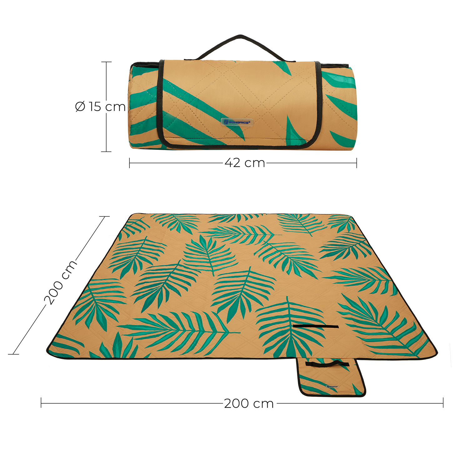 SONGMICS picnic-t?ppe, 200 x 150 cm stort strandt?ppe, camping-t?ppe, vandt?t underside, maskinvaskbart, foldbart, til have, park, strand, camping, citroner GCM085C01