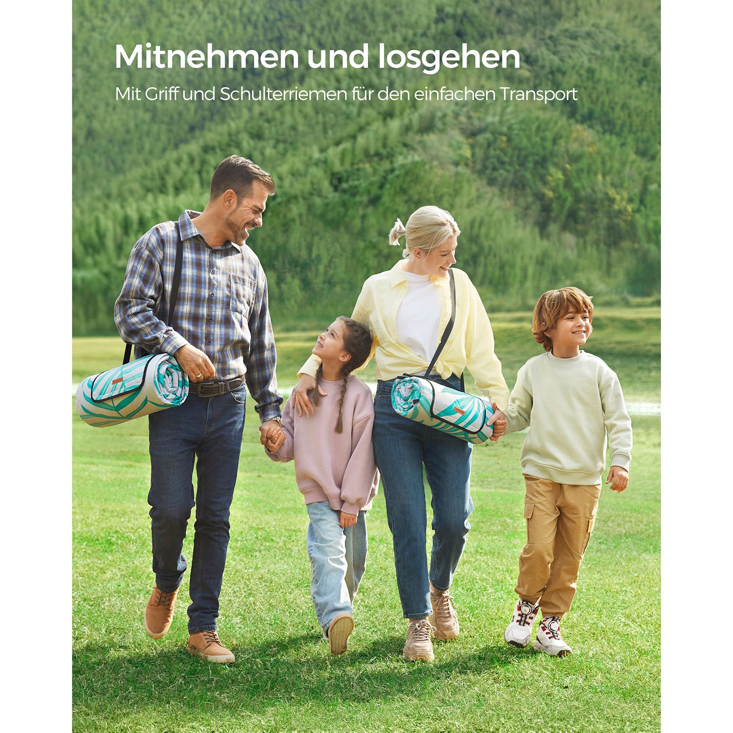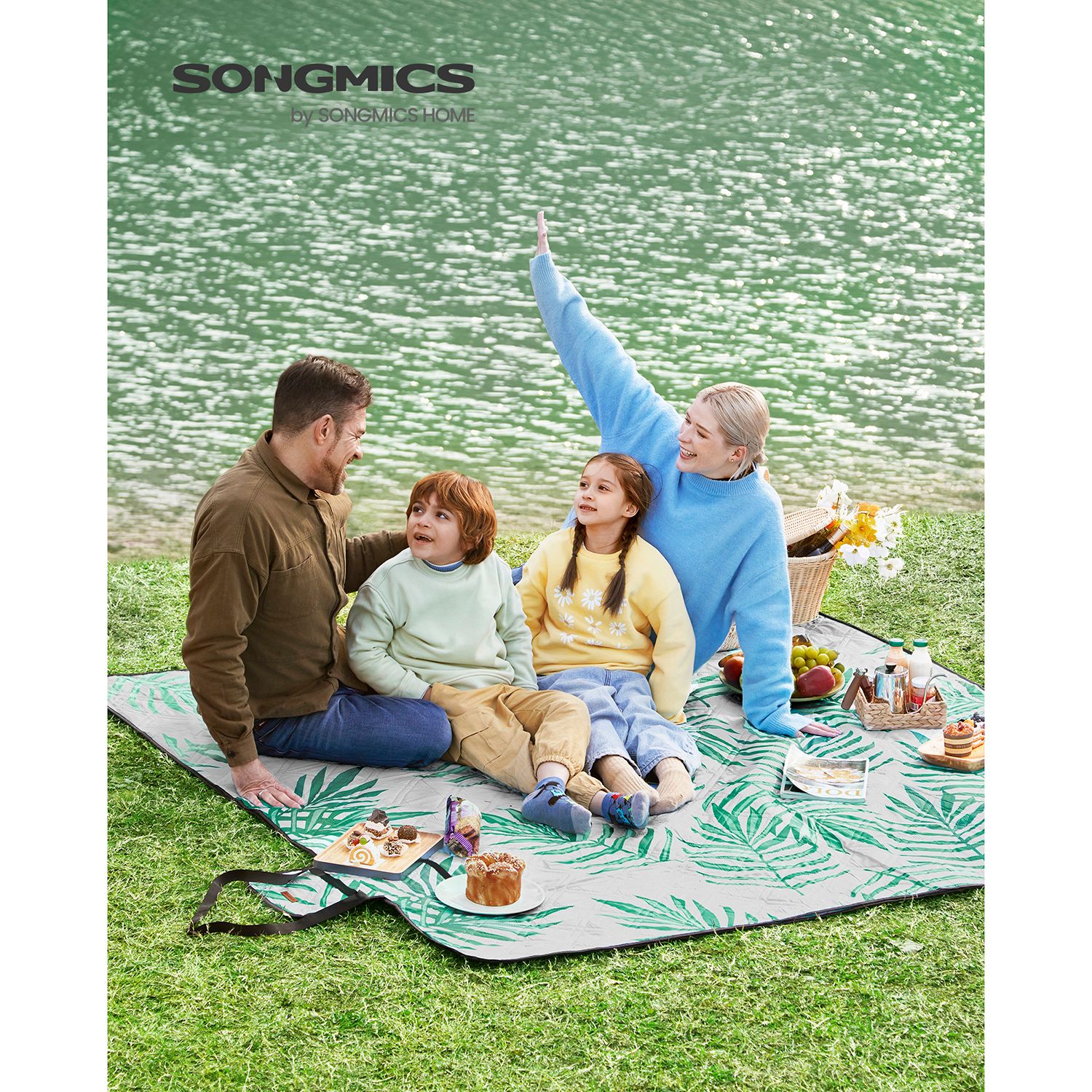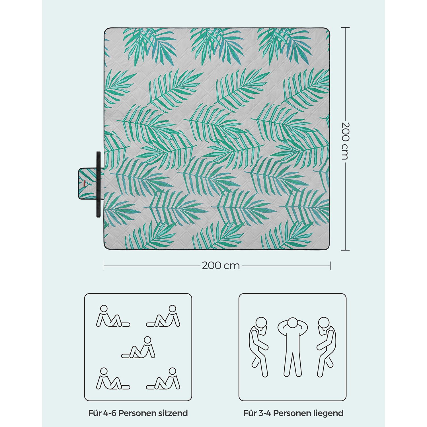 SONGMICS Picnict?ppe, 200 x 200 cm stort strandt?ppe, campingt?ppe, vandt?t underside, maskinvaskbart, foldbart, til have, park, strand, camping, orange med tropisk bregne GCM001O02