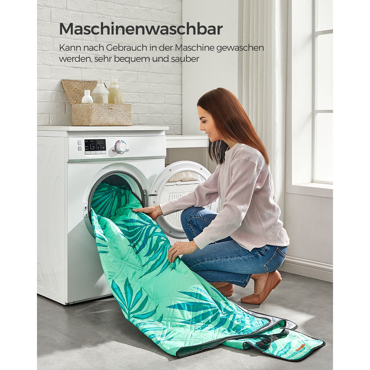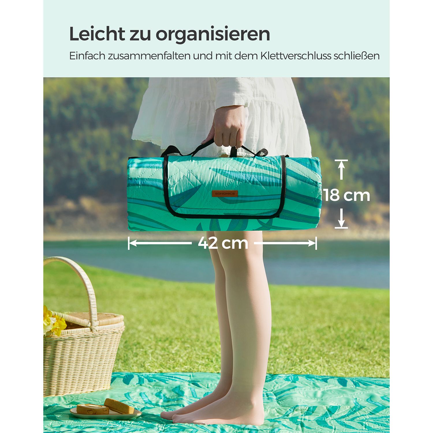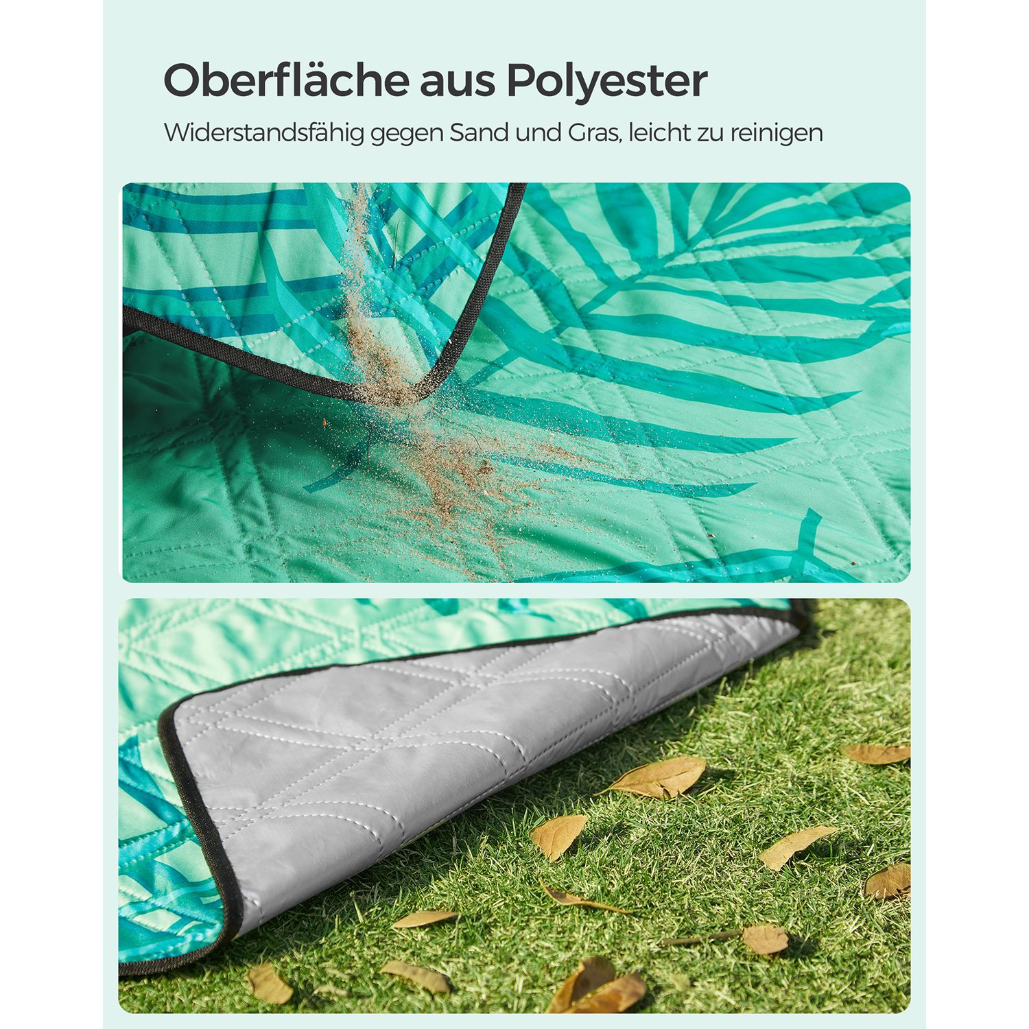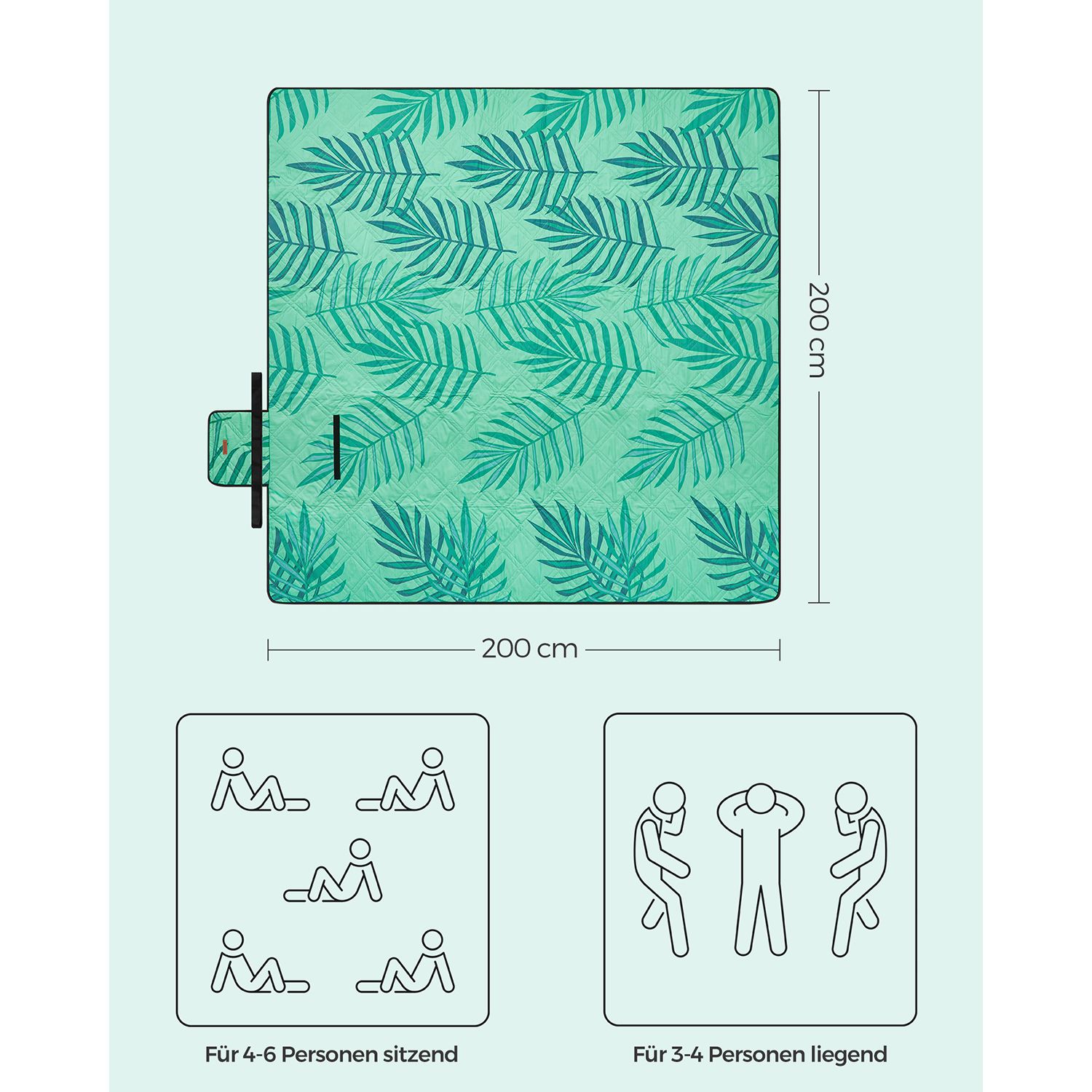SONGMICS Picnict?ppe, 200 x 200 cm stort strandt?ppe, campingt?ppe, vandt?t underside, maskinvaskbart, foldbart, til have, park, strand, camping, orange med tropisk bregne GCM001O02