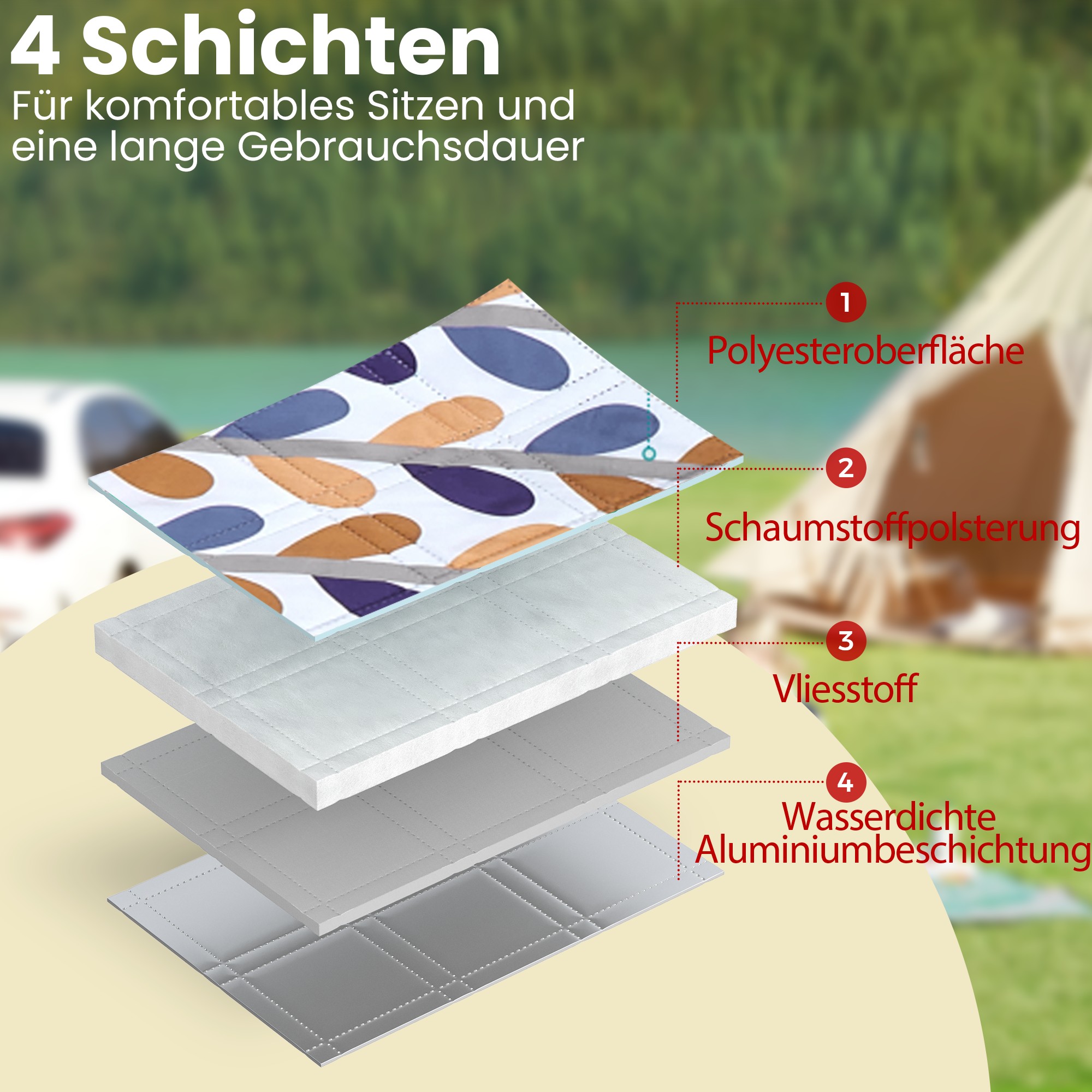 – Materiale: Polyesteroverflade, skumpolstring, ikke-v?vet stof, aluminiumsbel?gning
