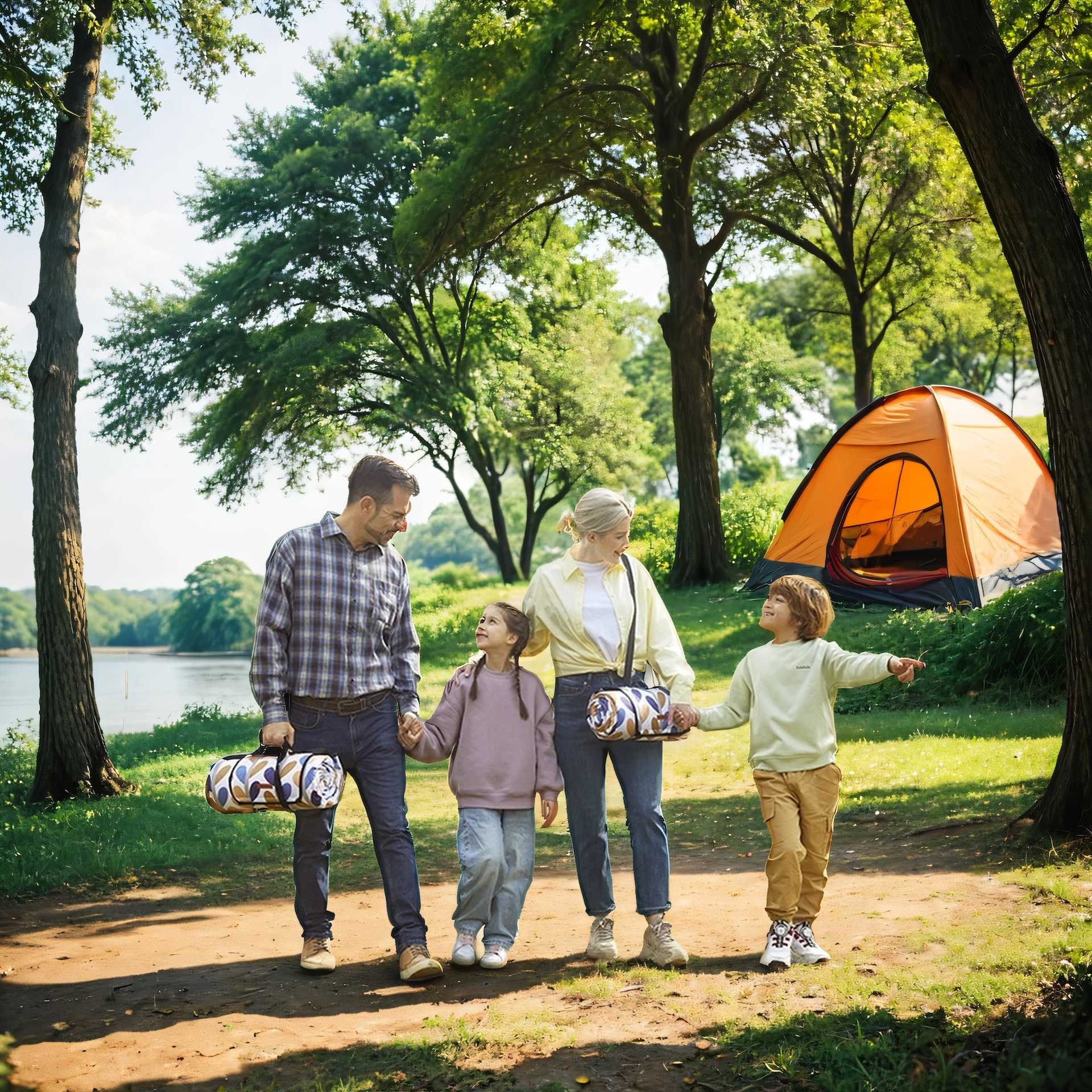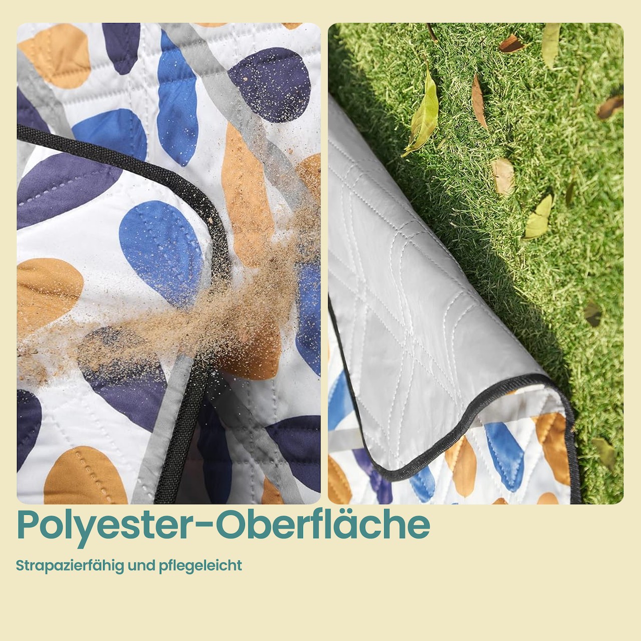 Picnict?ppe, 300 x 200 cm, 4 lag, campingt?ppe, vandt?t, maskinvaskbart, foldbart, farverige blade