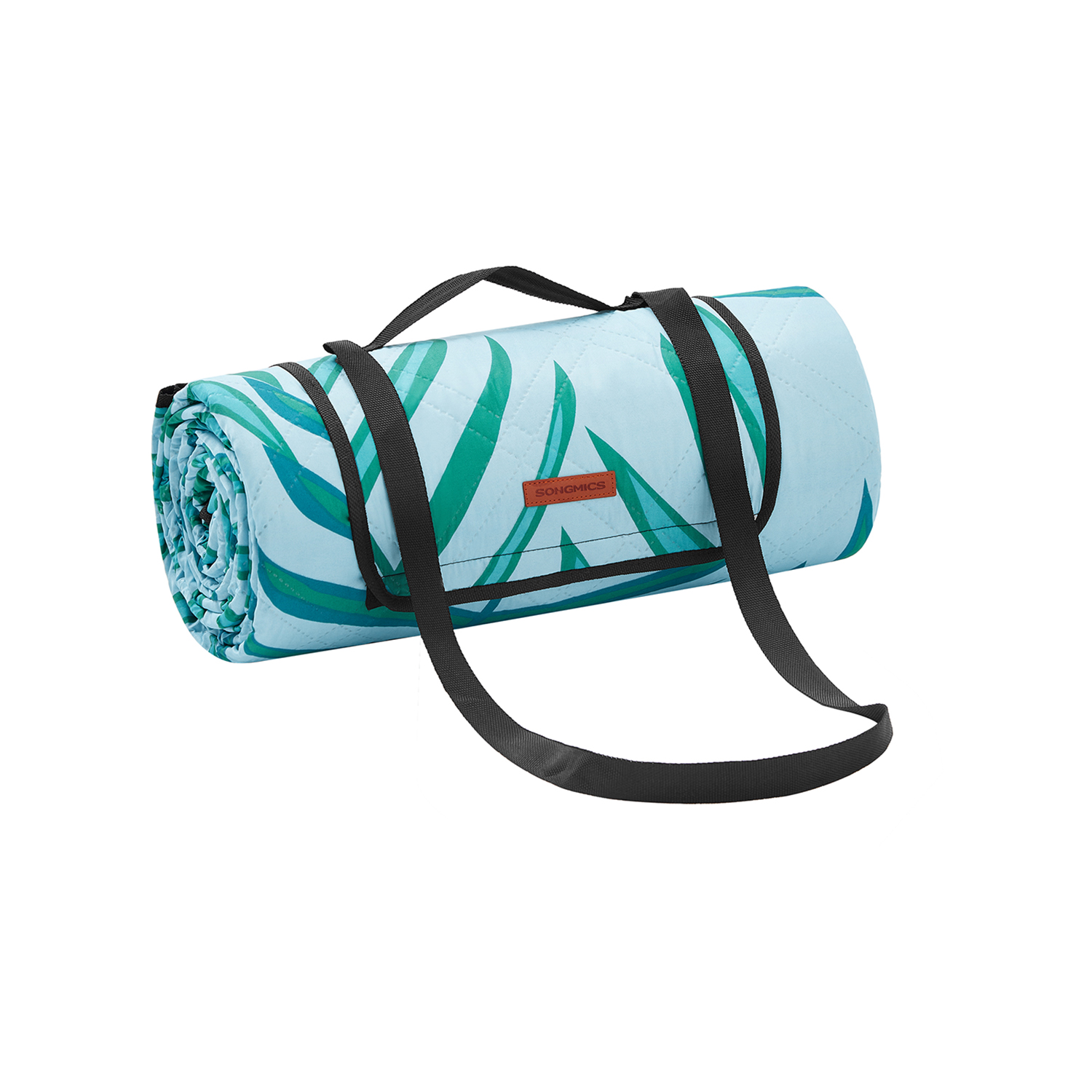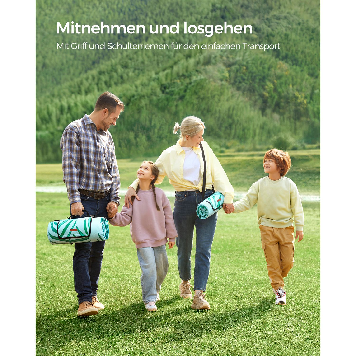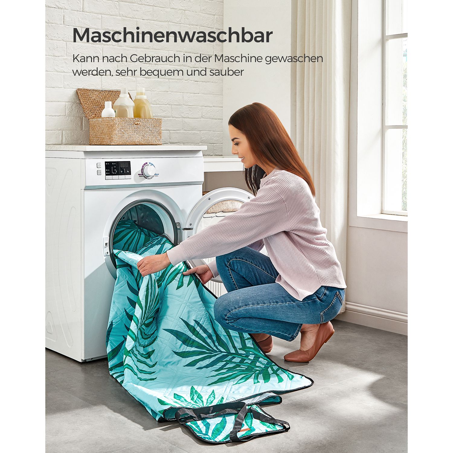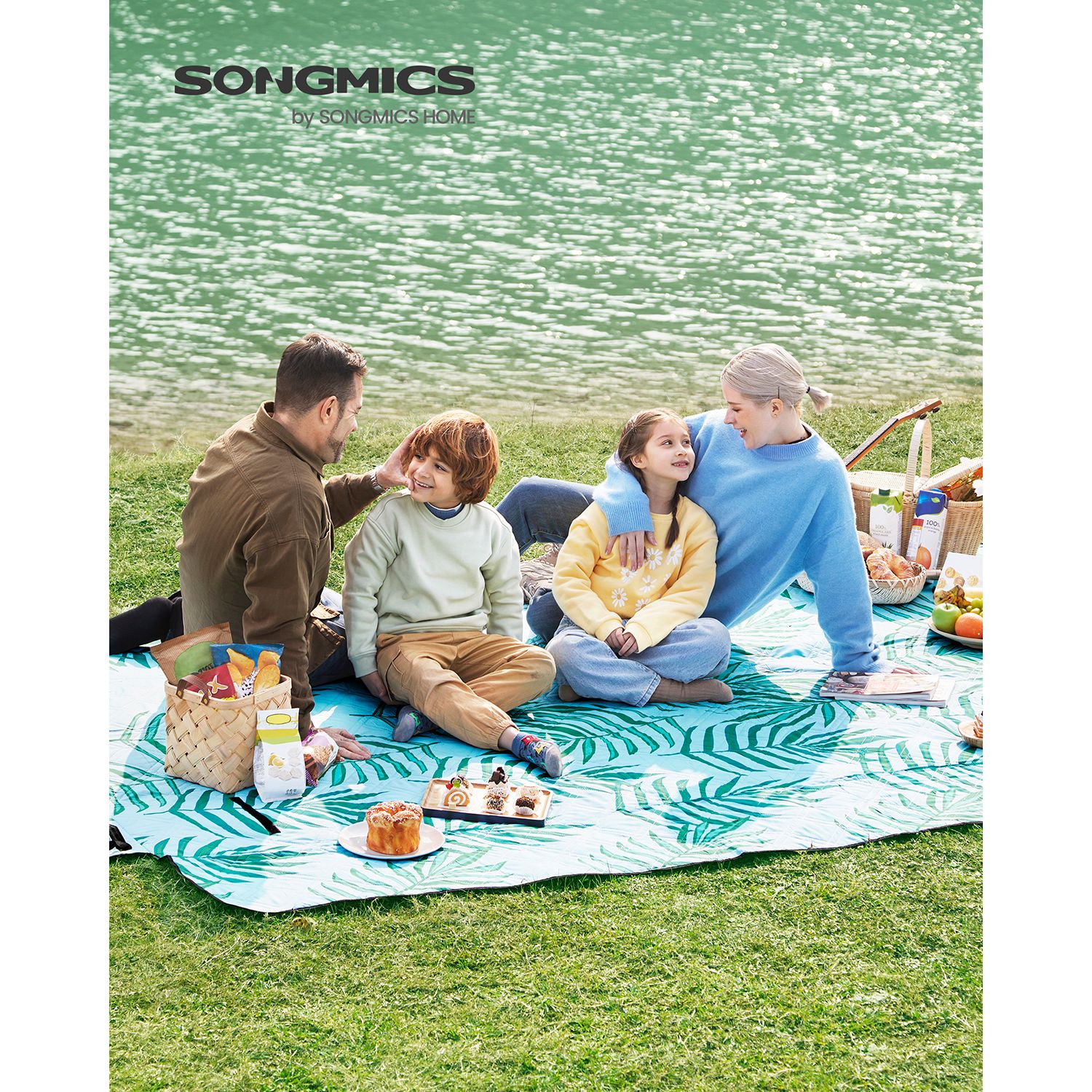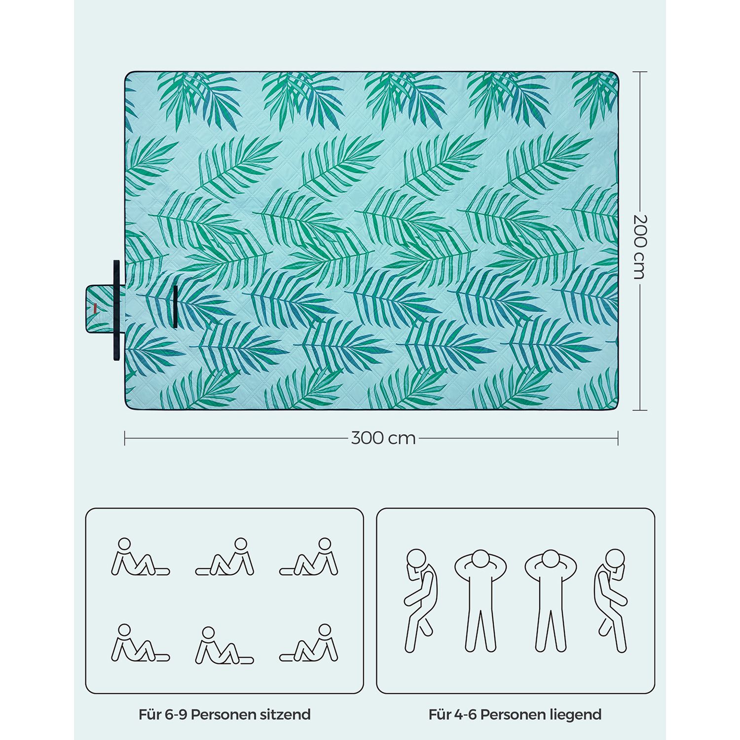SONGMICS Picnict?ppe, 200 x 200 cm stort strandt?ppe, campingt?ppe, vandt?t underside, maskinvaskbart, foldbart, til have, park, strand, camping, orange med tropisk bregne GCM001O02
