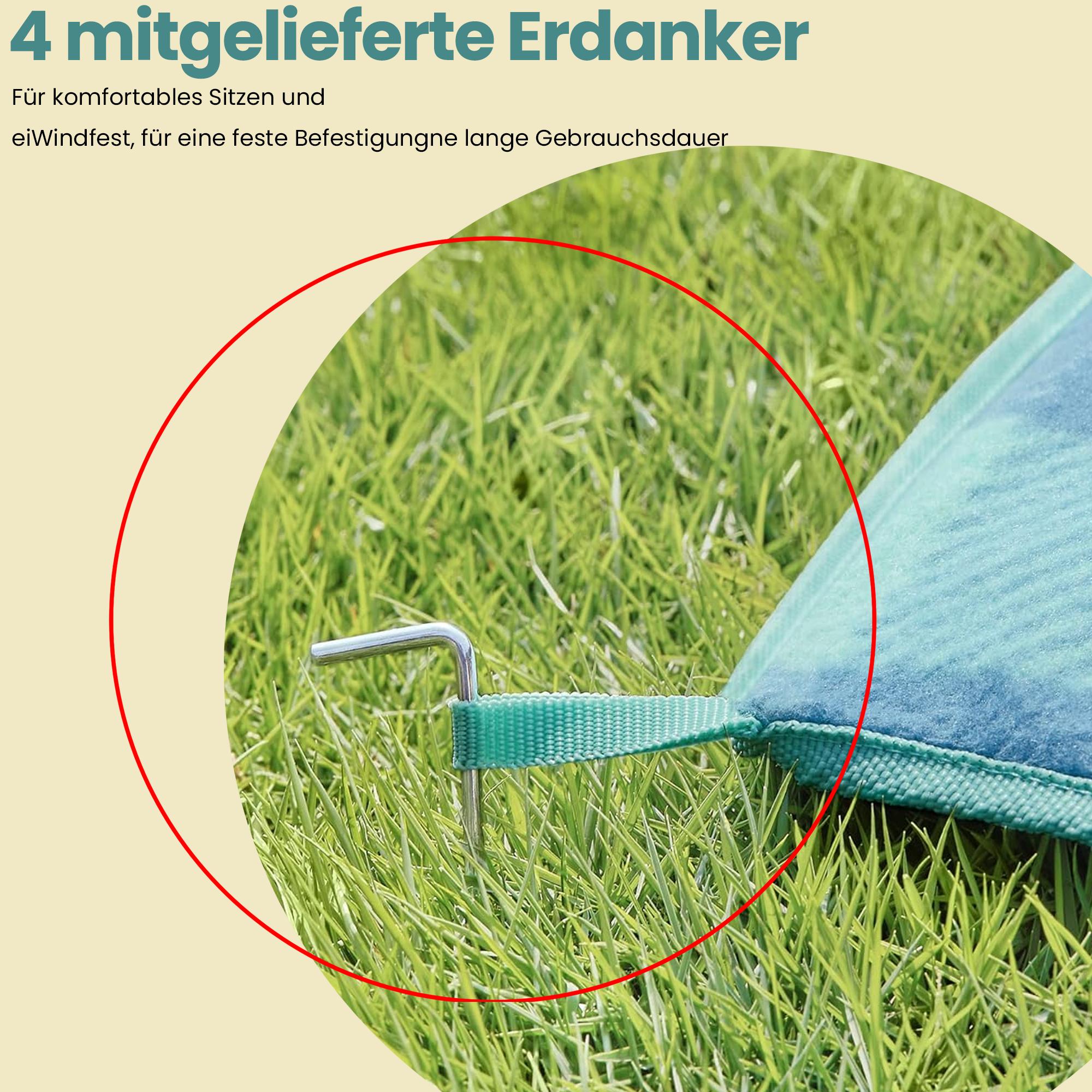 Picnict?ppe 300 x 200 cm, med 4 jordankre, stort, campingt?ppe, vandt?t, foldbart, til park, have, strand, gr?n-bl?