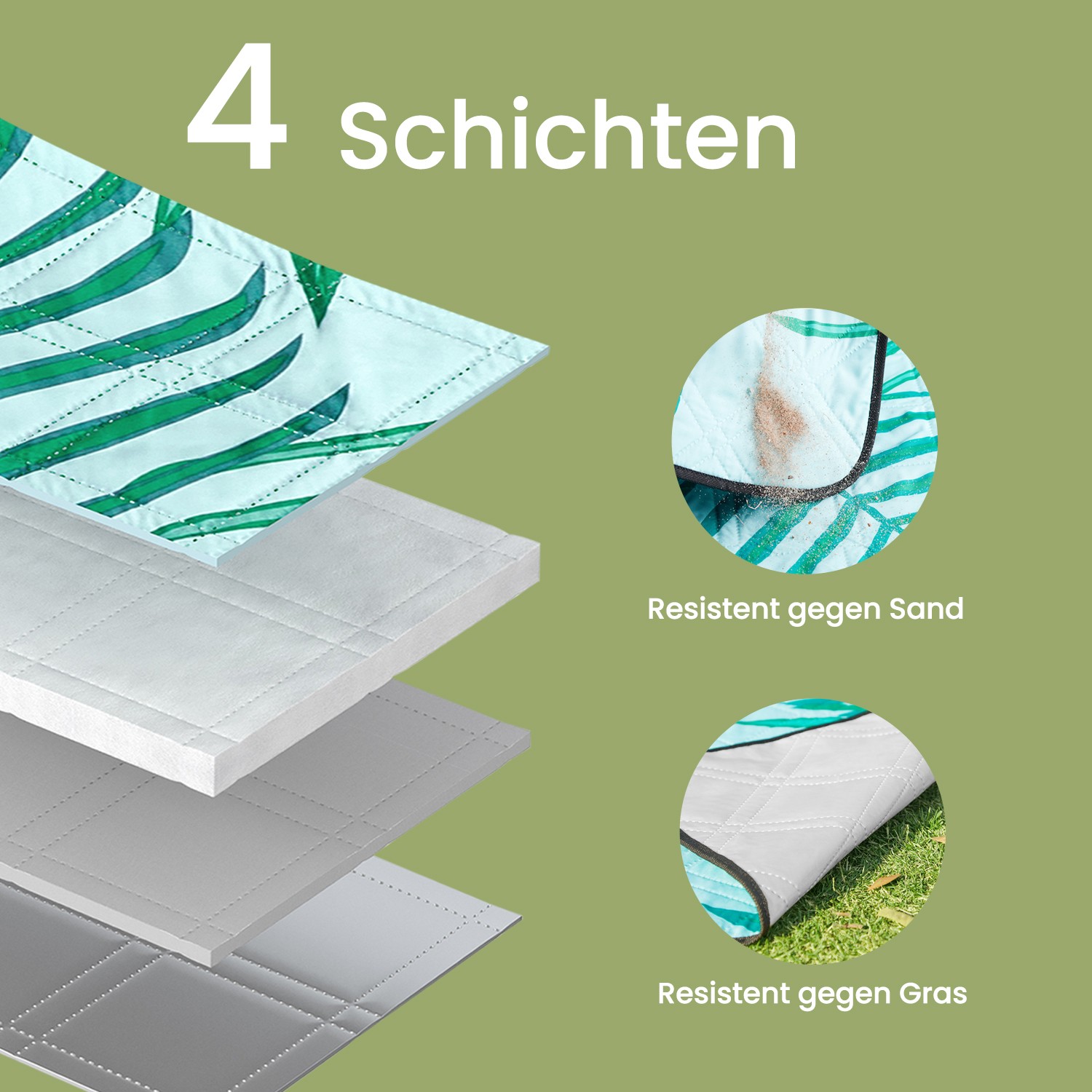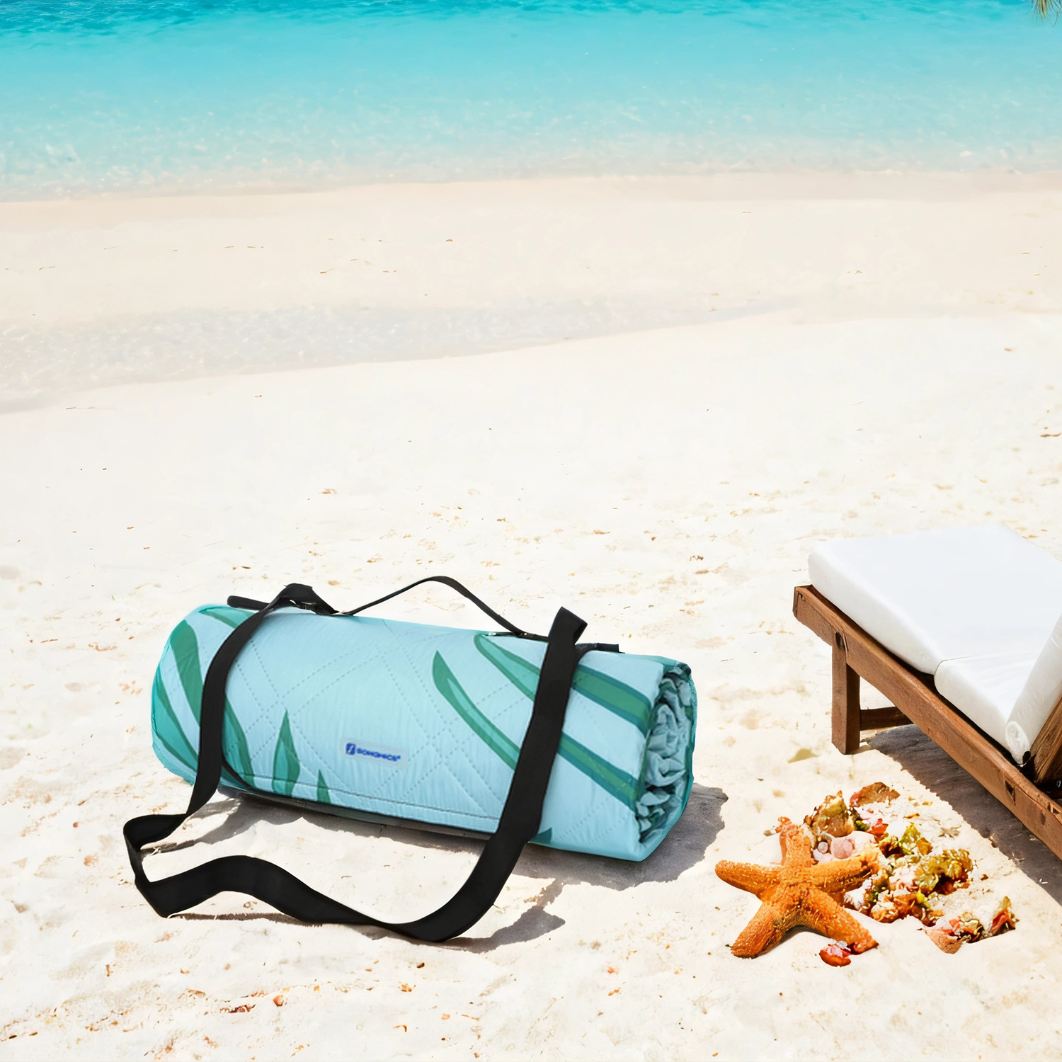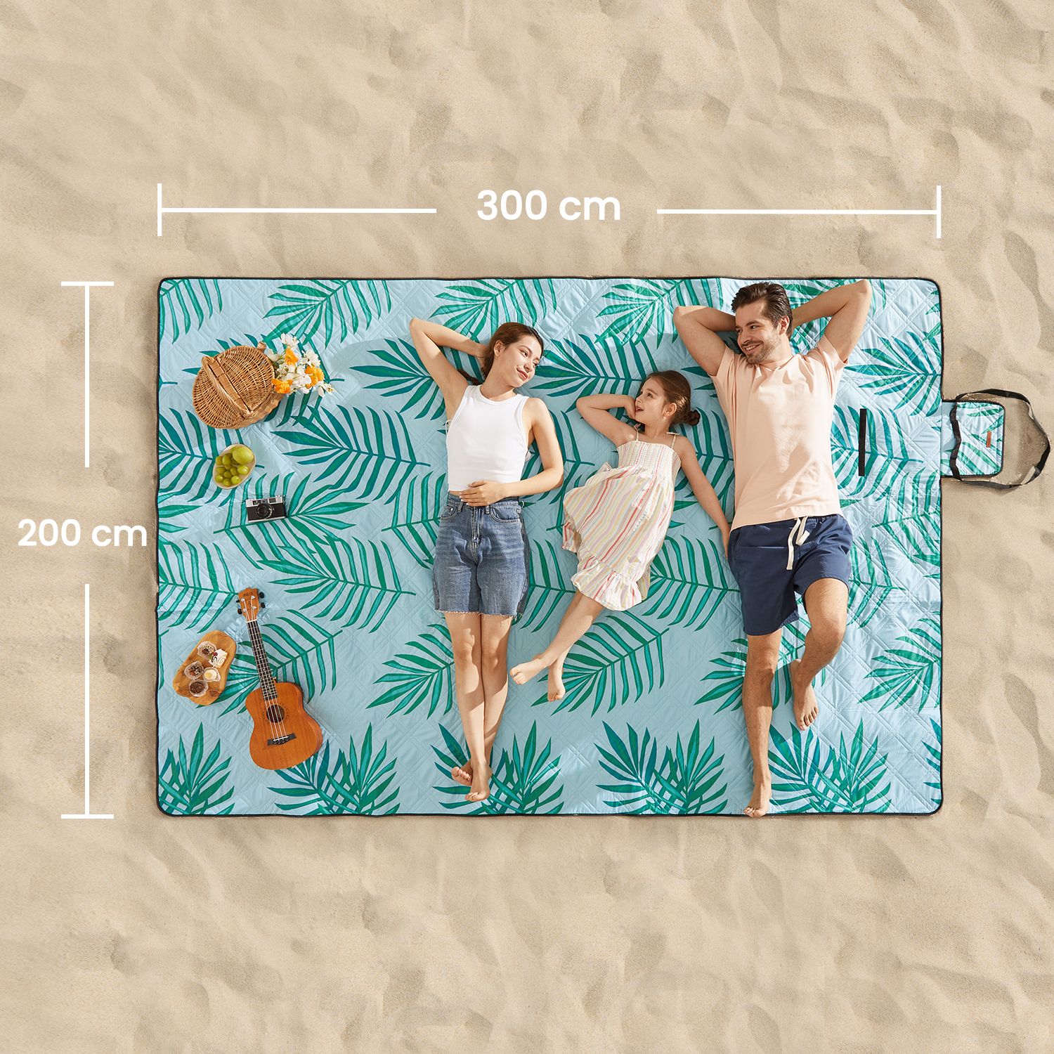 Picnict?ppe, 300 x 200 cm, stort t?ppe, til camping, park, have, strand, vandafvisende, maskinvaskbart, foldbart, bregnem?nster og lysebl?t