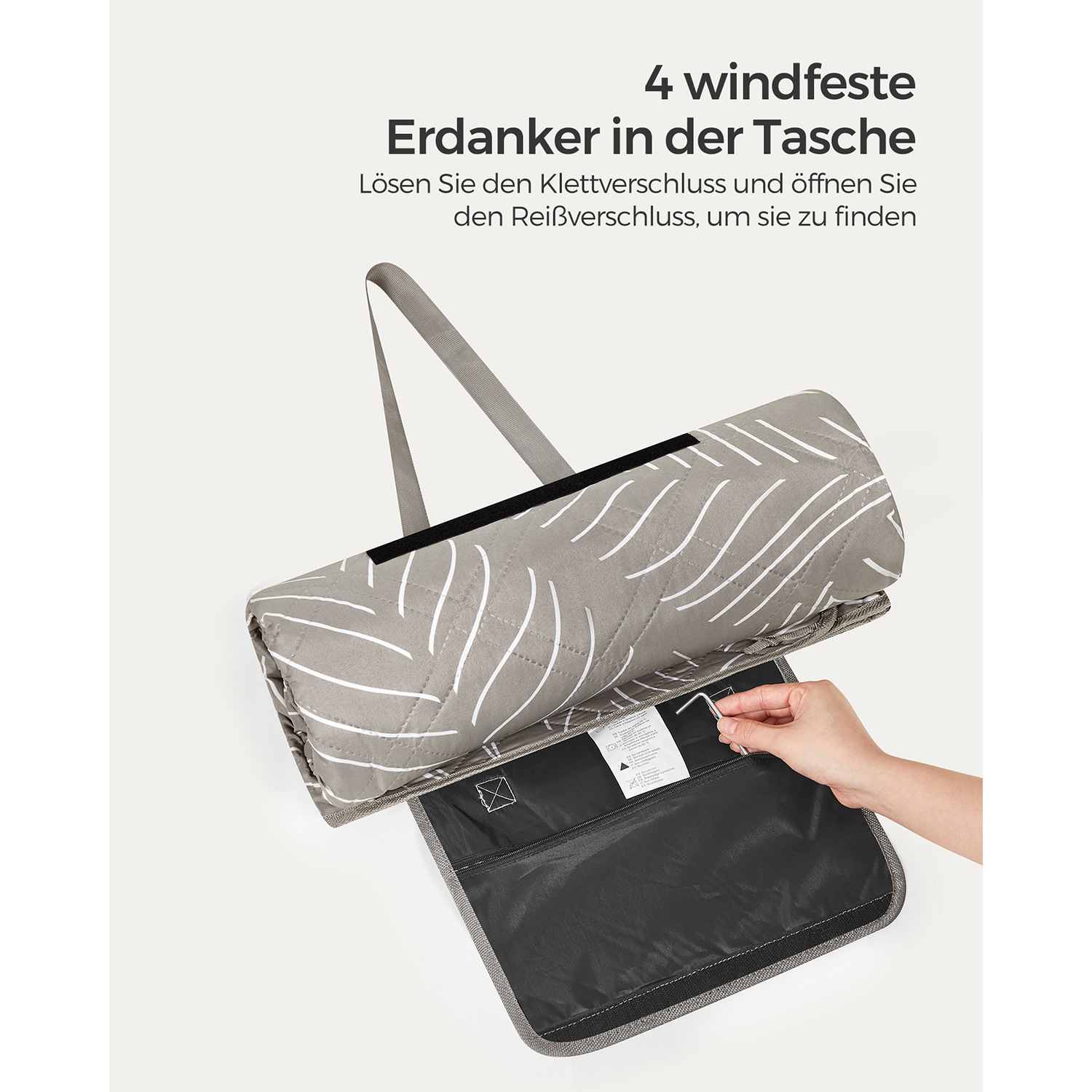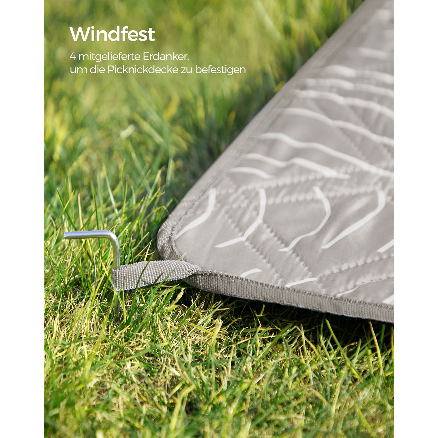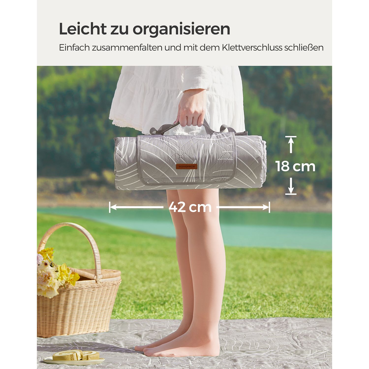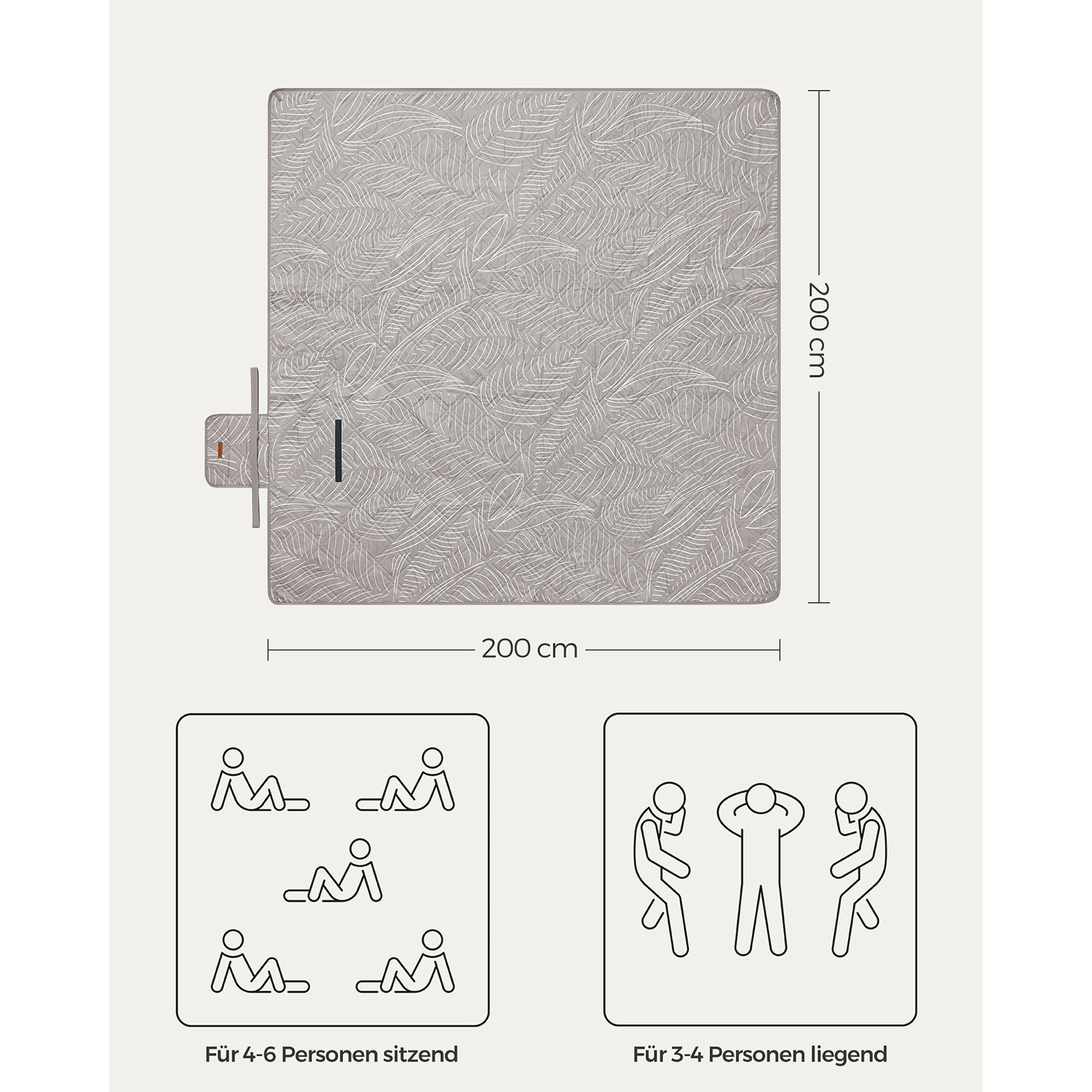 SONGMICS picnic-t?ppe, 200 x 200 cm, med 4 jordankre, stort, camping-t?ppe, til park, have, strand, vandt?t, maskinvaskbart, foldbart, lysebl?t med tropisk bregne GCM010Q02