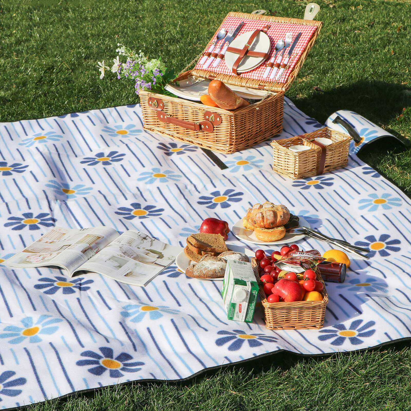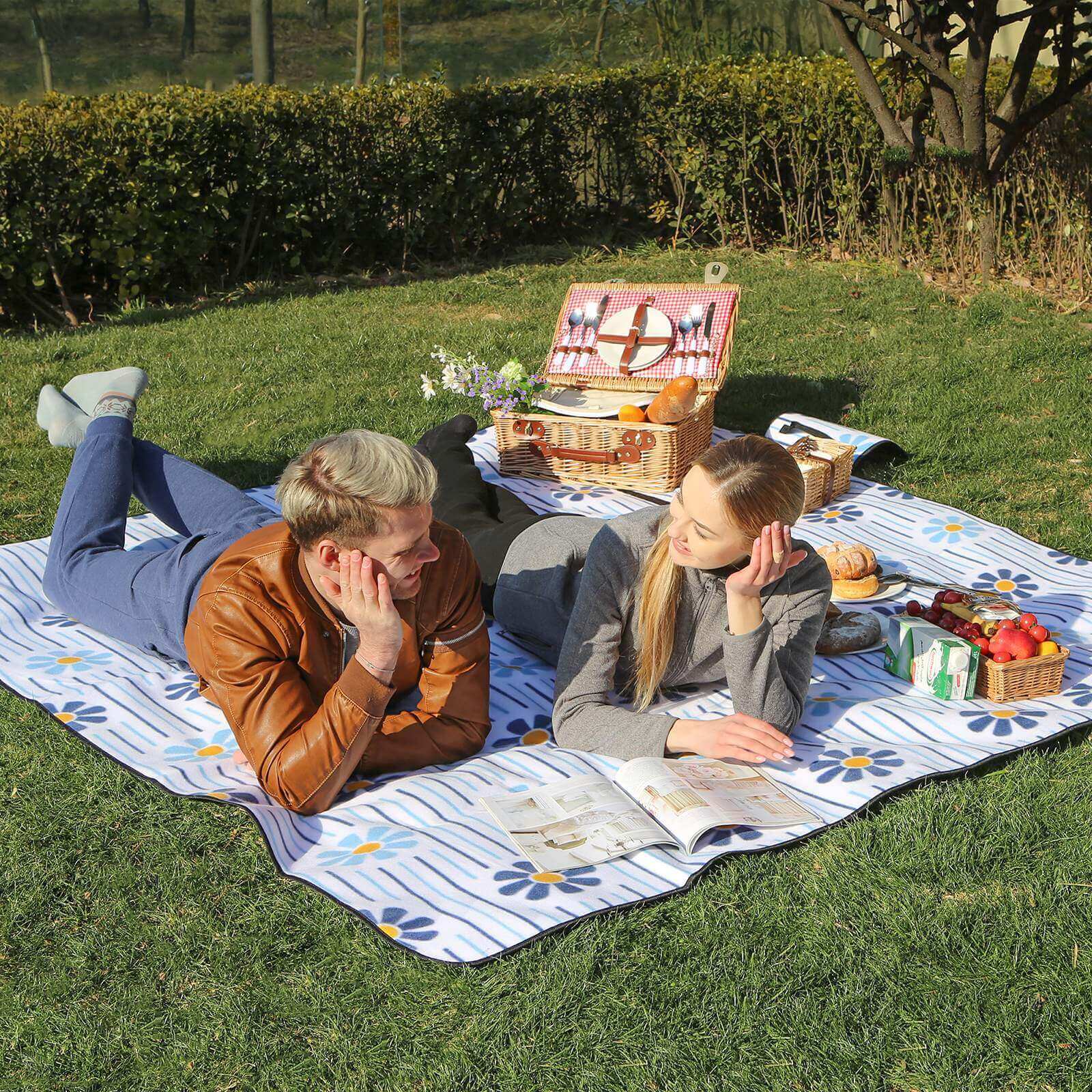 Picnict?ppet er let og alligevel robust og best?r af tre lag: Takket v?re overfladen af fleece ligger man bl?dt p? t?ppet; polstringen sikrer behagelig liggekomfort p? h?rdt underlag; den isolerende underside af aluminiumsbel?gning beskytter t?ppet mod v?dt og koldt underlag. S? man ender ikke i v?dt gr?s og f?r ikke v?d bagdel. Og picnic-t?ppet er udstyret med et b?reh?ndtag og en velcrolukning, s? det er nemmere at transportere. Dette picnic-t?ppe er den perfekte ledsager til afslappede og hyggelige dage i naturen, p? stranden eller p? ferie! Bem?rkninger: – T?ppet m? ikke reng?res med vand, det skal kun b?rstes af. – F?r brug skal du sikre dig, at der ikke er sm?sten, r?dder eller lignende under t?ppet p? jorden. Ellers kan de lave huller i t?ppet eller skade dig, n?r du sidder/ligger p? det. Produktdetaljer: – Materiale: Fleece + skumgummi + aluminiumsbel?gning – M?l udfoldet: ca. 200 x 200 cm – M?l sammenfoldet: ca. 40 x 25 x 12 cm – V?gt: ca. 1 kg Leveringsomfang: – 1 x picnic-t?ppe
