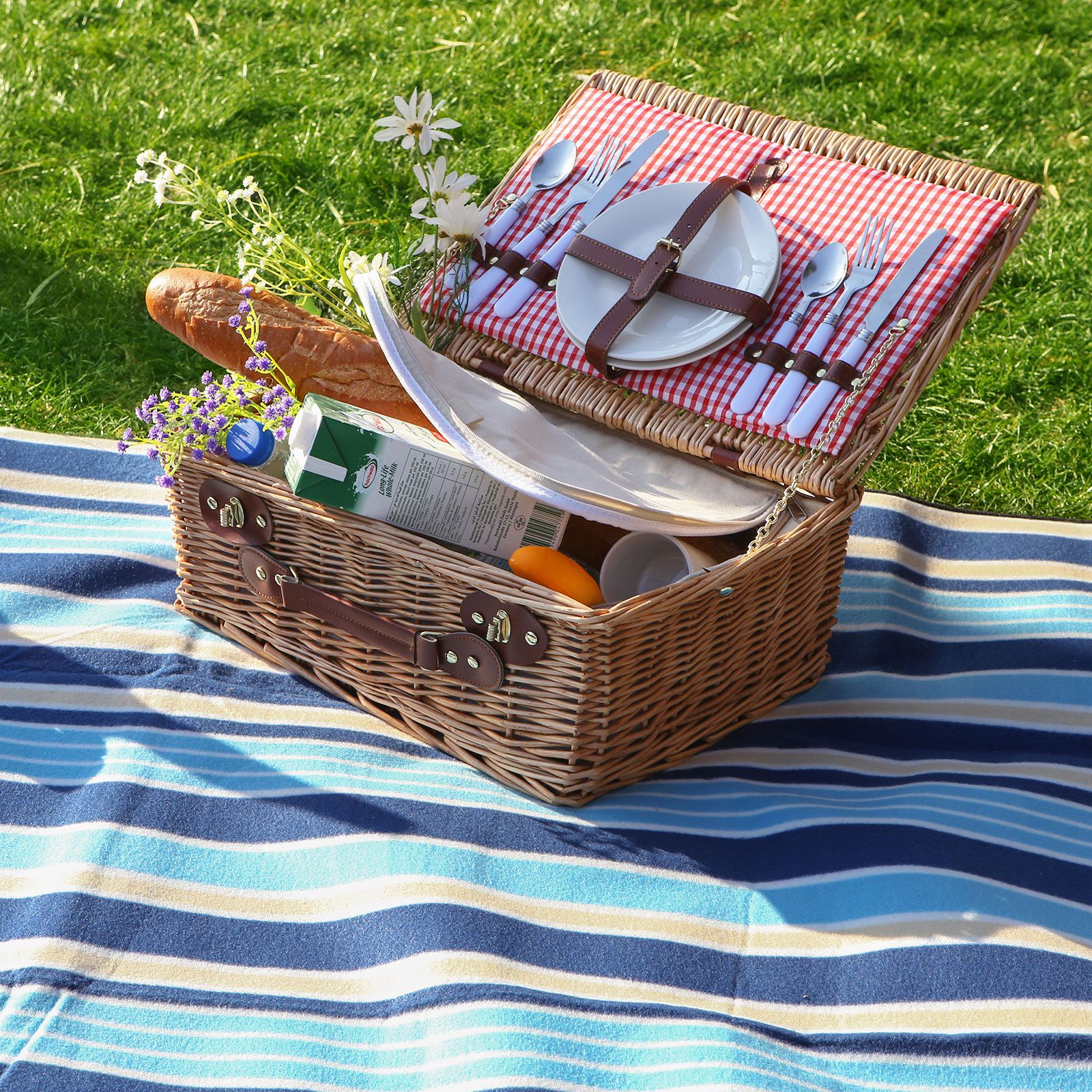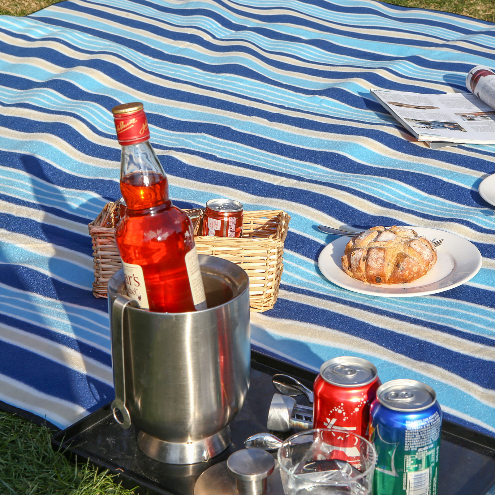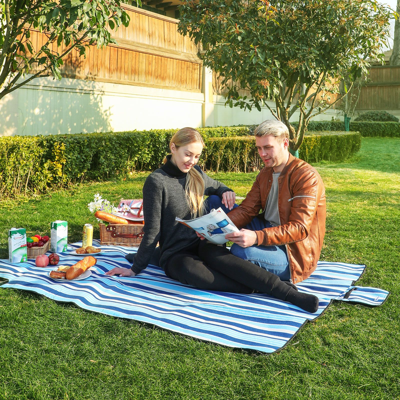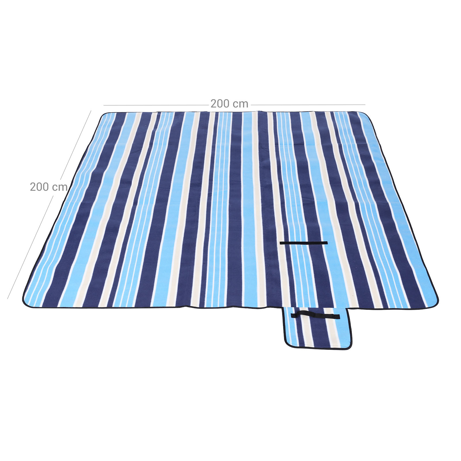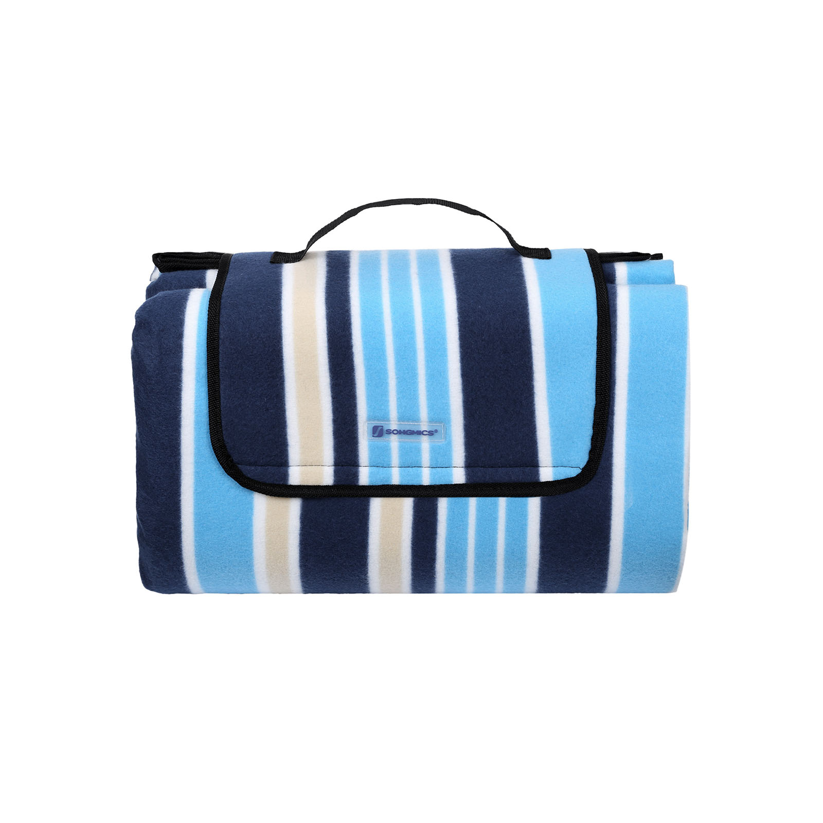 En uundv?rlig ledsager p? alle dine udend?rs eventyr! Det praktiske picnic-t?ppe fra Songmics er perfekt til camping, picnic, dage p? stranden, open air-festivaler, i parken eller p? ferie med venner eller familie. Det er let og alligevel robust og har i alt tre lag: Takket v?re overfladen af akrylfibre/fleece ligger man bl?dt p? t?ppet; polstringen sikrer behagelig liggekomfort p? h?rdt underlag; den isolerende underside beskytter t?ppet mod v?dt og koldt underlag. S? man ender ikke i v?dt gr?s og f?r ikke v?d bagdel.Med den illustrerede vejledning (etiketten) til foldning kan man nemt folde picnic-t?ppet sammen igen og fastg?re det med den integrerede velcrolukning. Hvis du foretr?kker et st?rre t?ppe, kan du ogs? finde det hos os. Bem?rkninger: – T?ppet m? ikke reng?res med vand, det skal kun b?rstes af.- F?r brug skal du sikre dig, at der ikke er sm?sten, r?dder eller lignende under t?ppet p? jorden. Ellers kan de lave huller i t?ppet eller skade dig, n?r du sidder/ligger. – Outdoor-t?ppet f?s i forskellige farver. V?lg dit yndlingsmotiv og gl?d dig til picnic. Produktdetaljer: – Materiale: Fleece + skum + aluminiumsbel?gning – M?l udfoldet: 200 x 200 cm – M?l sammenfoldet: ca. 40 x 25 x 12 cm – V?gt: ca. 1 kg – Farve: bl?-hvid stribet Leveringsomfang: – 1x picnic-t?ppe