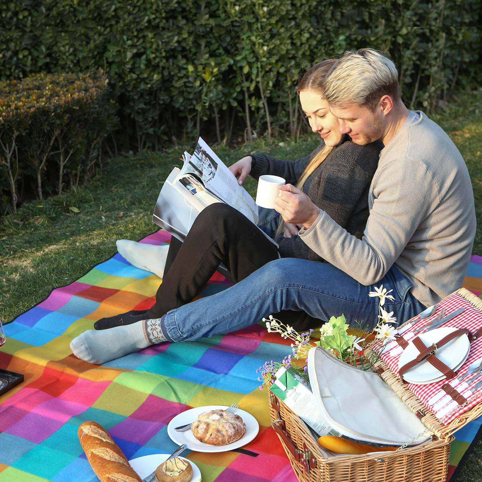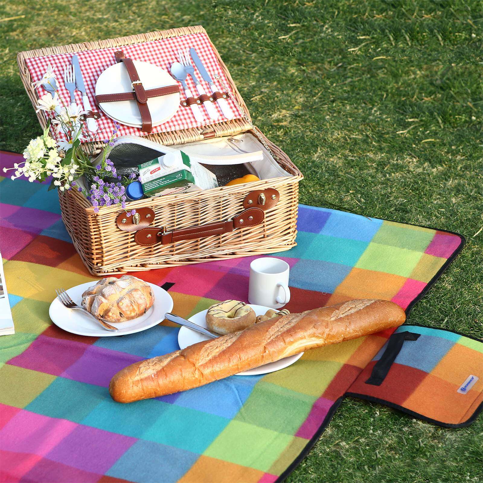Uundv?rlig til udend?rs eventyr Dette praktiske picnic-t?ppe er perfekt til camping, picnic, stranddage, open air-festivaler, i parken eller til ferier med venner og familie. Det er let, men alligevel robust og har i alt 3 lag: Overfladen af fleece f?les behageligt bl?d. Polstringen sikrer behagelig liggekomfort, selv p? h?rdt underlag. Den isolerende underside beskytter mod fugt og kulde. Takket v?re den illustrerede foldvejledning (p? etiketten) er picnic-t?ppet nemt at folde sammen. Den integrerede velcrolukning sikrer, at t?ppet ikke folder sig ud igen. Produktdetaljer: – Farve: Farvet – Materiale: Fleece, skum, aluminiumsbel?gning – M?l udfoldet: 195 x 150 cm – M?l sammenfoldet: ca. 40 x 25 x 10 cm – V?gt: 0,7 kg Leveringsomfang: – 1x picnic-t?ppe SONGMICS Bem?rkninger: – T?ppet m? kun b?rstes; det m? ikke reng?res med vand. –