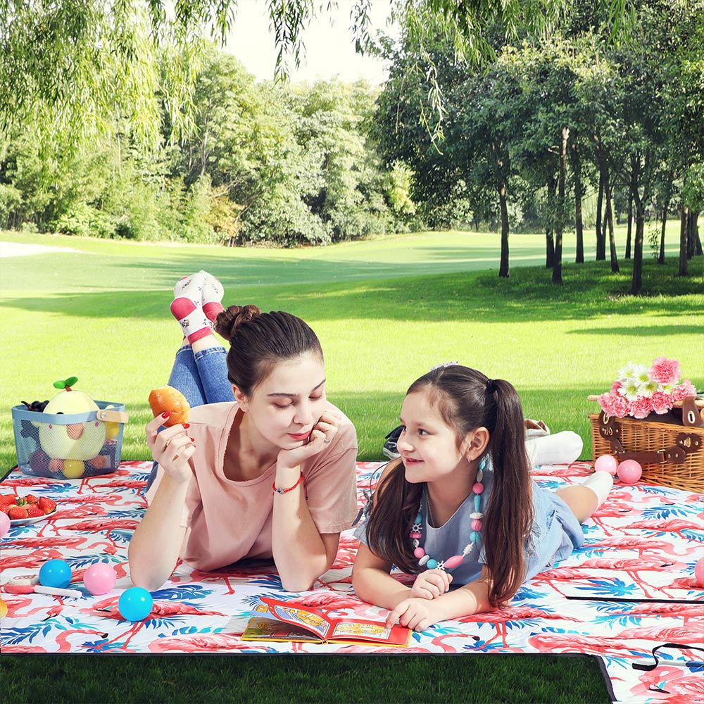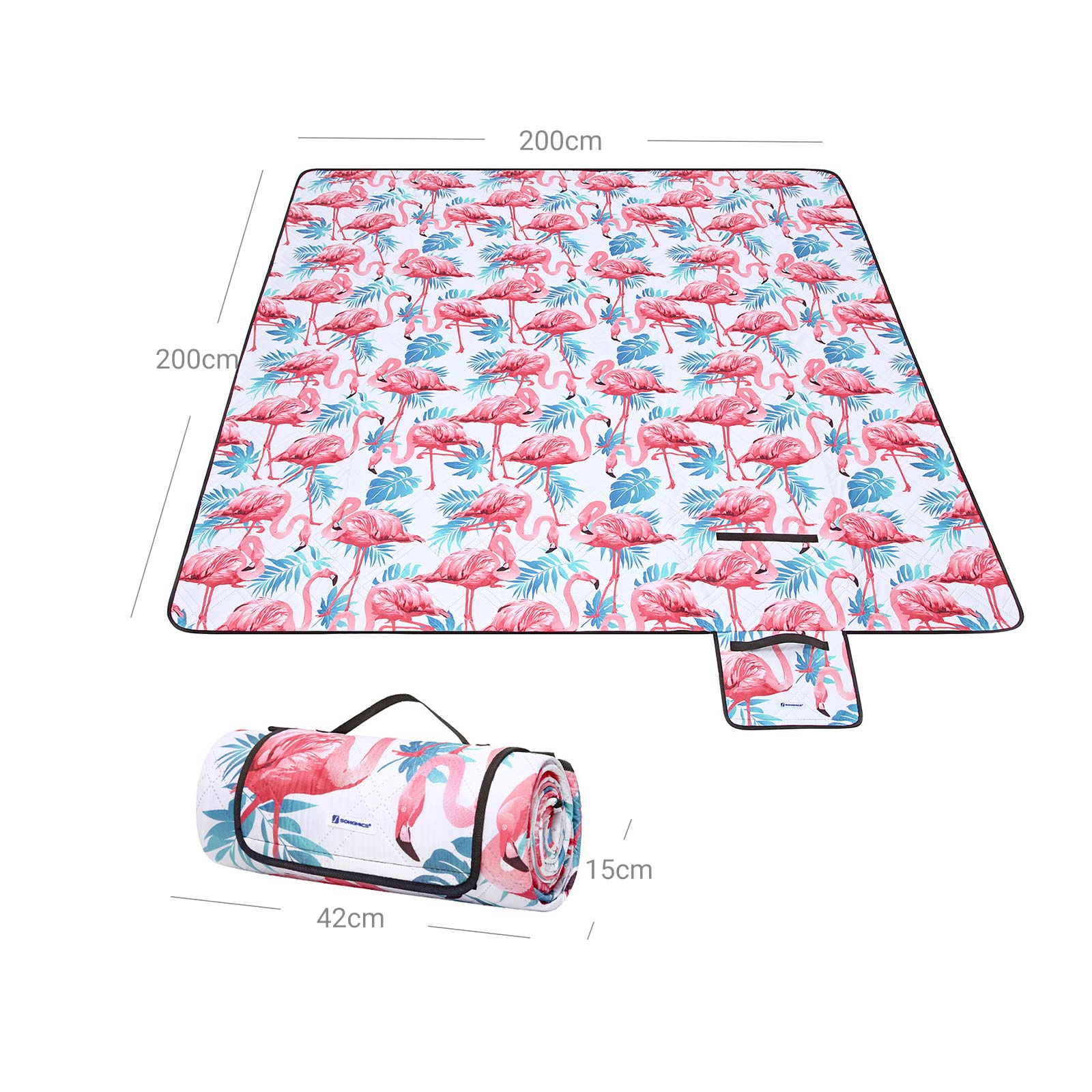Nyd naturens sk?nhed Uanset om du forbereder dig p? en for?rspicnic, camping om sommeren, en musikfestival eller bare en solbadning i naturen, er dette t?ppe dit ideelle tilbeh?r til en dag i parken, p? stranden, i haven eller ved swimmingpoolen. H?j kvalitet Med en bl?d overflade af polyester, en aluminiumsbel?gning og et skumlag i midten er dette picnic-t?ppe b?de behageligt og vandt?t. Fold det blot sammen til en kompakt st?rrelse og tag det med p? rejsen. Produktdetaljer:- Farve: Store flamingoer – Materiale: Polyesteroverflade, skumpolstring, aluminiumsbel?gning – St?rrelse sammenfoldet: 42 x 15 x 15 cm (L x B x H) – St?rrelse udfoldet: 200 x 200 cm (L xB x H) – V?gt: 1,1 kg Leveringsomfang: – 1 x picnic-t?ppe SONGMICS Bem?rkninger:- P? grund af forskellige lysforhold eller sk?rme med forskellig opl?sning kan der forekomme mindre farveafvigelser i forhold til de produkter, der vises p? billederne. – Placer ikke dette produkt p? skarpe eller spidse genstande s?som sten eller grene for at undg? skader eller beskadigelse. – Vask ikke produktet for ofte i vaskemaskinen, da dette kan p?virke levetiden negativt.