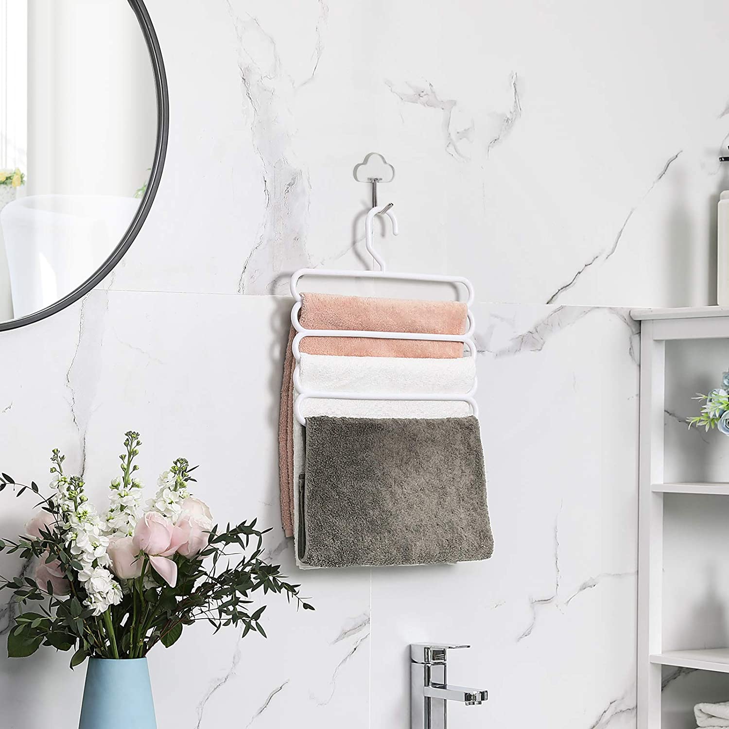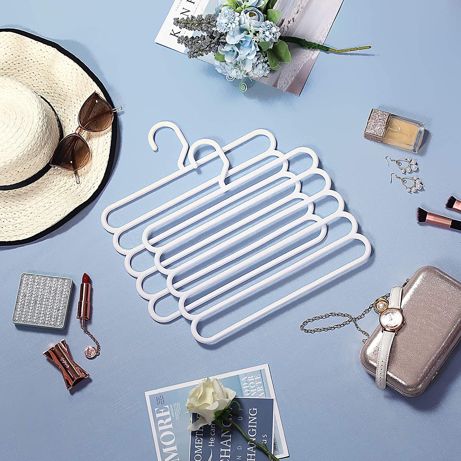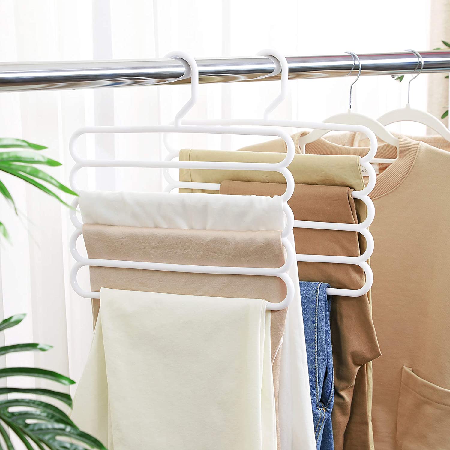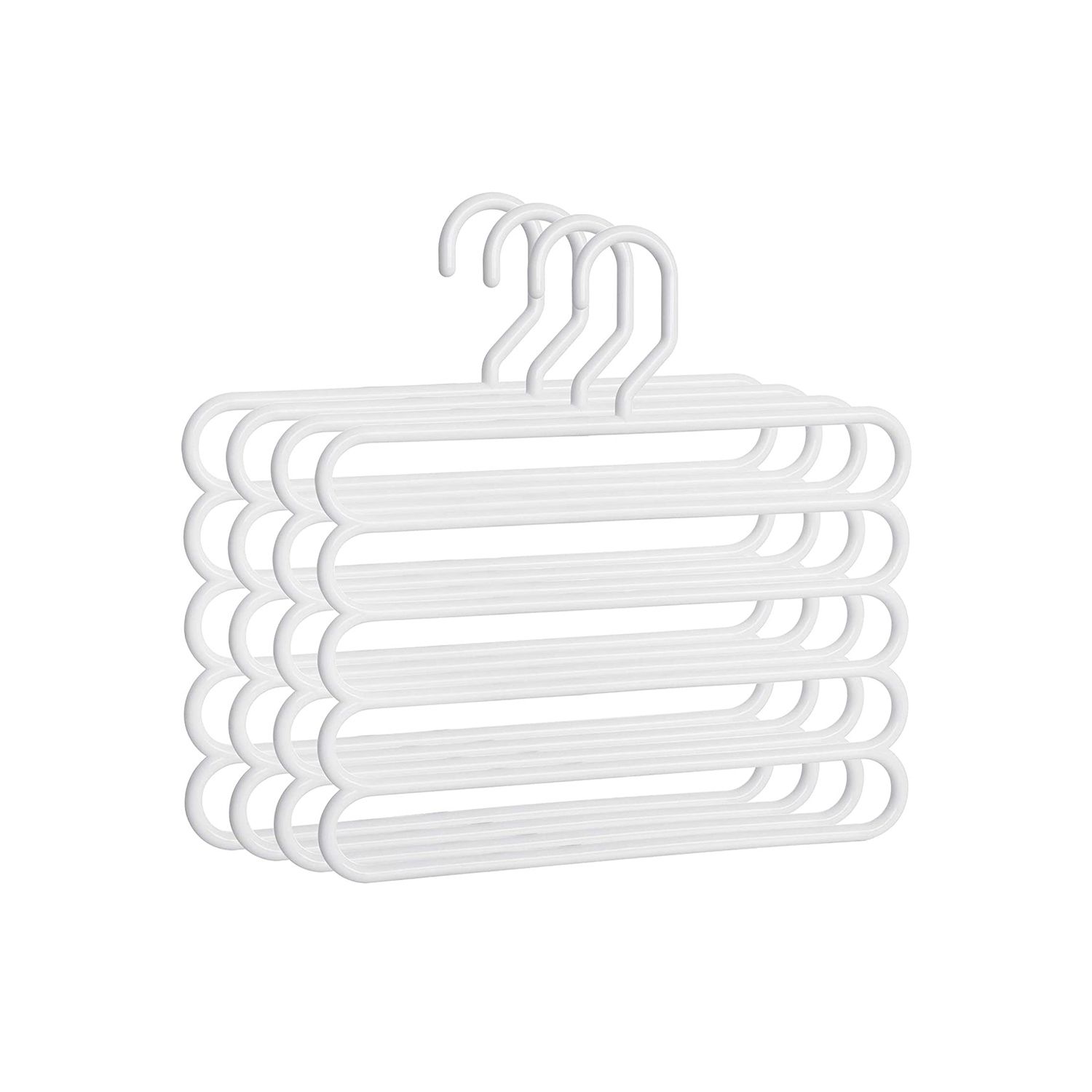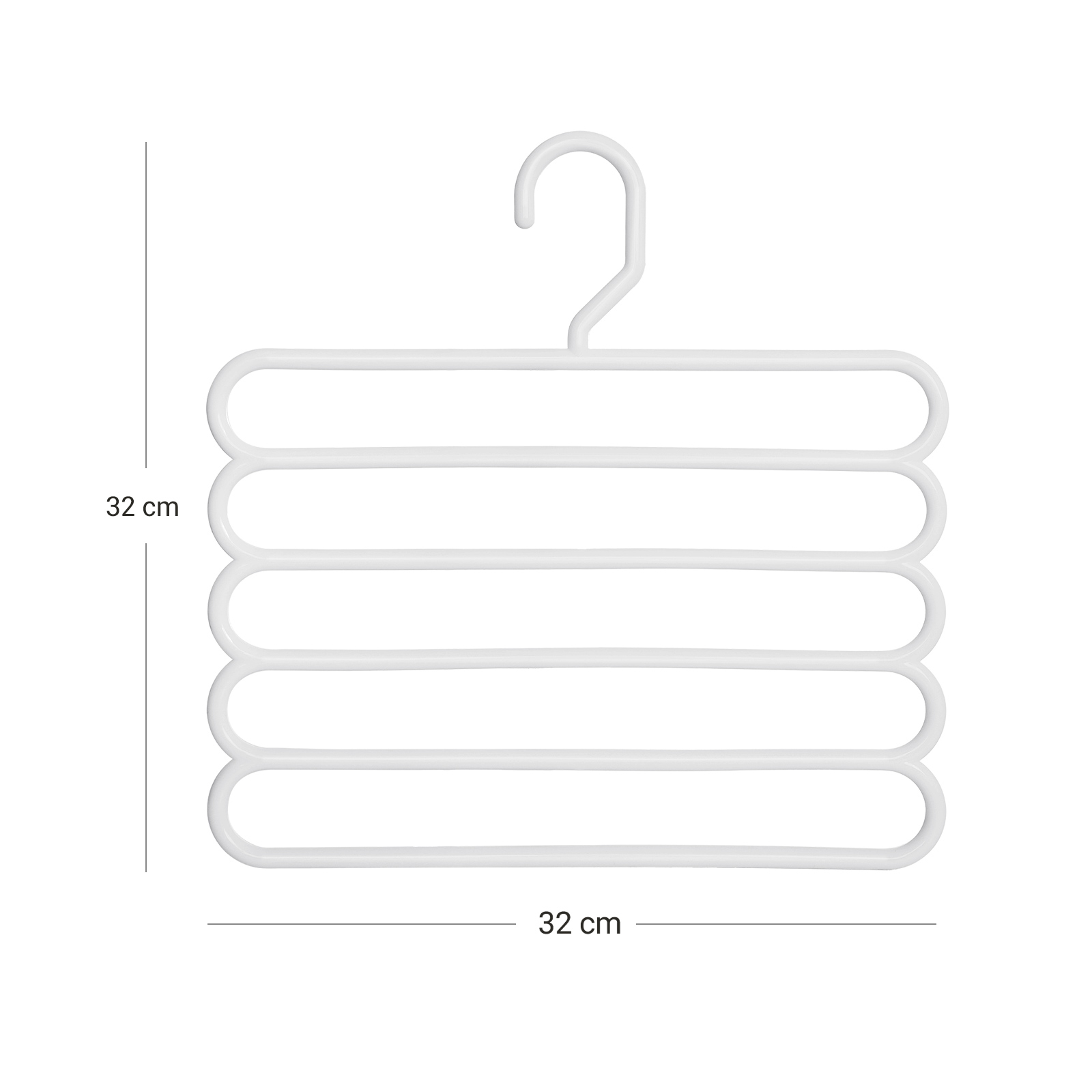Alt er i orden igen! Ligger der en k?mpe bunke bukser i dit kl?deskab? Er du tr?t af at skulle stryge dine kr?llede bukser igen og igen? Ligger alle dine t?rkl?der og h?ndkl?der i en kaotisk bunke i en skuffe? Disse multifunktionelle b?jler kommer dig til unds?tning! Med dem kan du f? styr p? dit kl?deskab og finde alt med et enkelt blik. N?r du har styr p? kaoset, har du styr p? livet! Maksimer opbevaringspladsen i dit kl?deskab Hvad kan du g?re, n?r dit kl?deskab er fyldt? Aflevere nogle af dine t?j til genbrug? Nej! K?b disse multifunktionelle b?jler og spar op til 80 % plads i dit kl?deskab. S? kan du k?be flere smukke t?j! Produktdetaljer:- Farve: Hvid – Materiale: ABS-plast – St?rrelse: 32 x 0,8 x 32 cm (L x B x H) – Samlet v?gt (4 multifunktionelle b?jler): 540 g – Maks. statisk belastning pr. multifunktionel b?jle: 5 kg Leveringsomfang: – 4 x multifunktionelle buksb?jler SONGMICS Bem?rkninger:- Den maksimale belastning pr. multifunktionel b?jle er 5 kg. Overskrid ikke denne maksimale v?gt. – Brug ikke disse b?jler i t?rretumbleren eller vaskemaskinen.