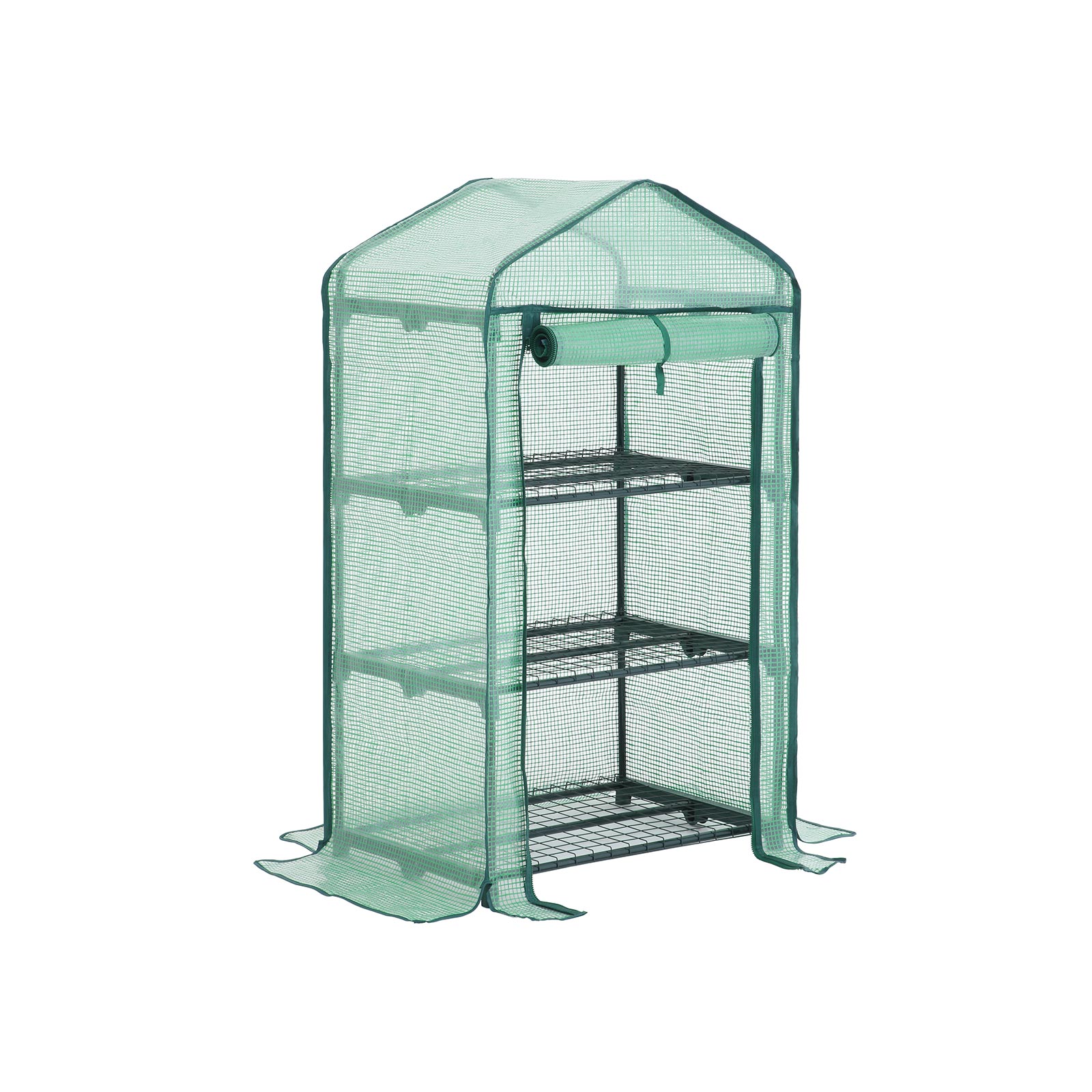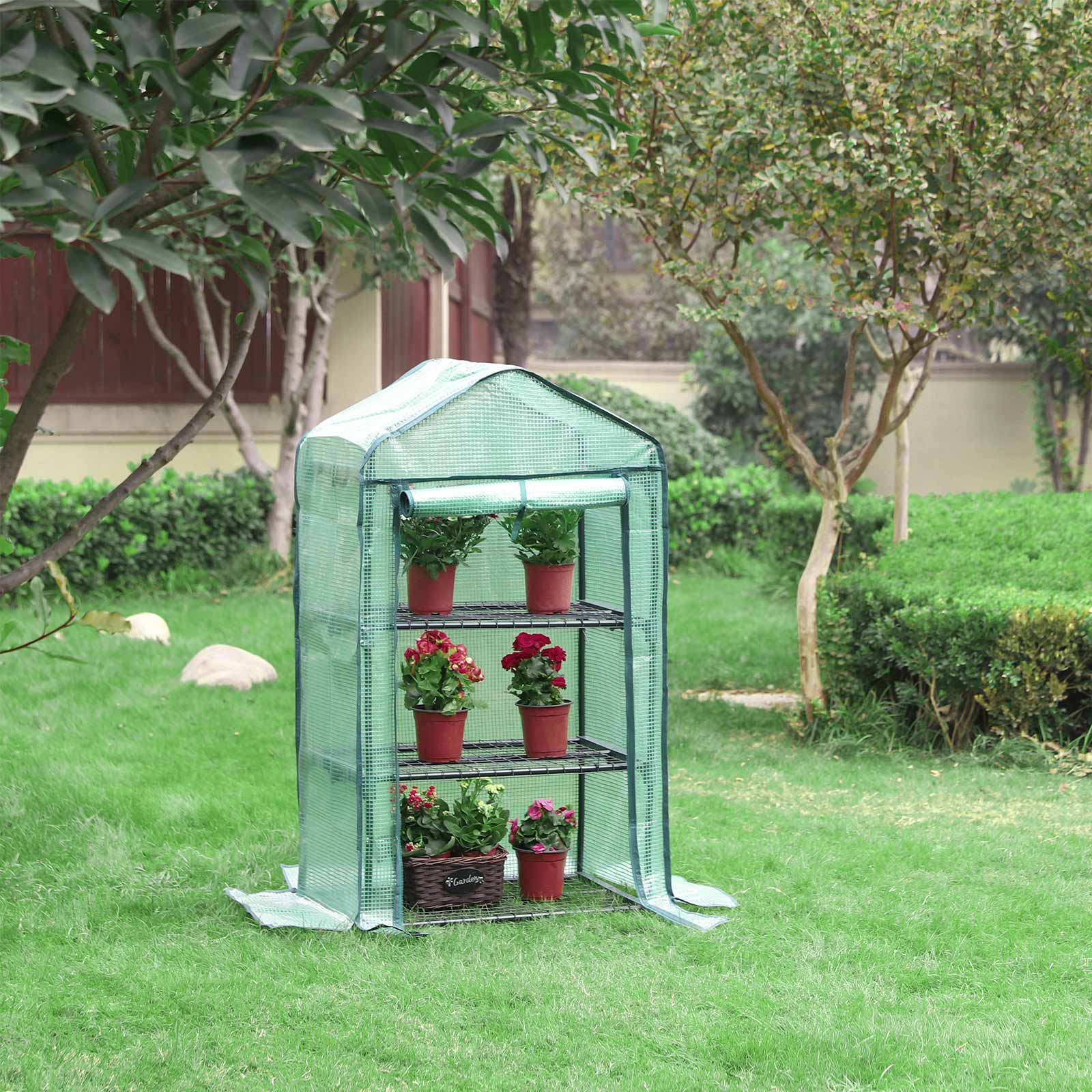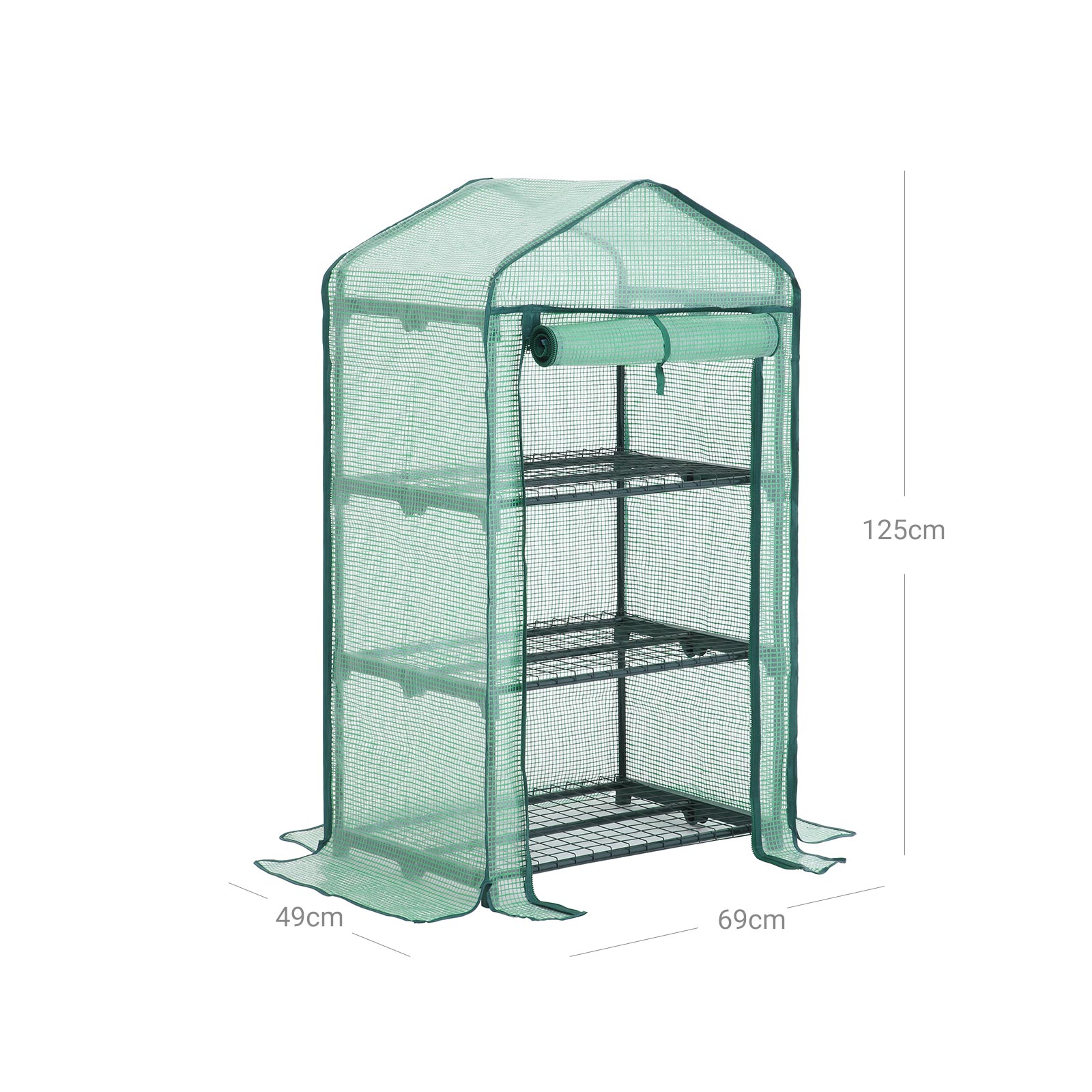 Anl?g din egen have ? s? nemt er det Hvis du endnu ikke helt har f?et styr p? havearbejdet, er et foliehus en fremragende hj?lp, der passer godt p? dine planter. Folien lader ikke kun solstr?lerne tr?nge igennem, men holder ogs? p? fugt og varme, hvilket hj?lper dine planter med at overleve vinteren og trives godt om for?ret. Passer overalt Dette havehus tager kun lidt plads (69 x 49 cm) og er et perfekt supplement til din have eller altan. For at give dine planter et endnu varmere milj? at vokse i, kan du ogs? bruge dette drivhus indend?rs. Hemmeligheden bag en lang levetid Har du bem?rket det gr?nne gitter inden i 140 g/m? PE-folien? Dette styrker strukturen i det slidst?rke d?ksel. S?ledes er dine planter godt beskyttet i lang tid. Produktdetaljer: – Farve: Gr?n – Materiale: Pulverlakerede st?lr?r, 140 g/m? PE-d?ksel, jerngitter, forbindelsesstykker af PP-plast – St?rrelse: 69 x 49 x 125 cm (L x B x H)- V?gt: 4 kg- Maks. statisk belastning pr. hylde: 15 kgLeveringsomfang:- 1 x drivhus- 1 x vejledning (DE, EN, FR, ES, IT)