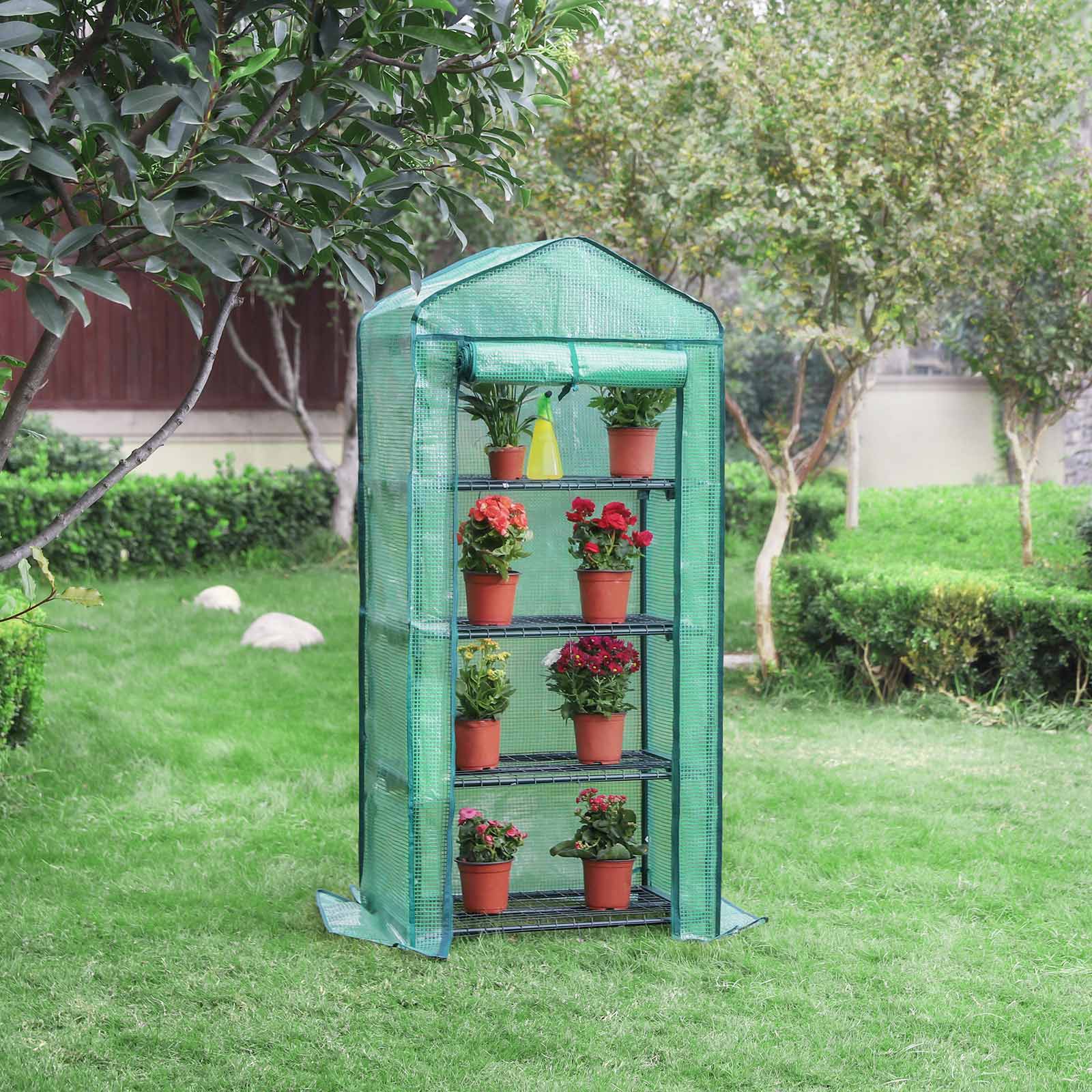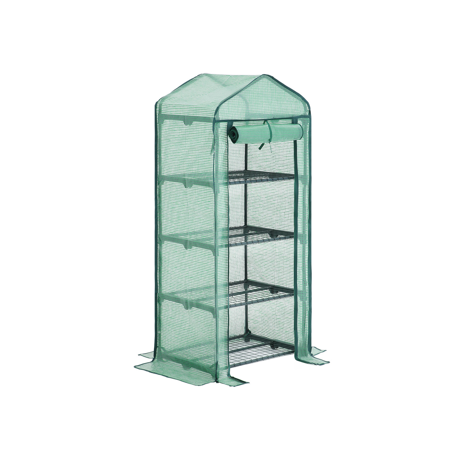 Det robuste folie-drivhus ser godt ud i din have og p? din altan og giver dine planter perfekt beskyttelse i alle ?rstider! De beskyttes optimalt mod vind, regn, solstr?ling og fugleangreb, og det specielle netfolie fremmer desuden dine planters v?kst optimalt. Stativet og presenningen virker meget stabile. Rivfast netpresenning af PE, meget slidst?rk, holdbar og frostbestandig. Om sommeren, n?r den ikke er i brug, kan netdugen tages af og vaskes med vand og derefter opbevares forsvarligt. Produktdetaljer: – Ramme: pulverlakerede st?lr?r (? 16 mm; tykkelse 0,32 mm) – Betr?k: PE-netdug (140 g/m?) – Netunderlag: Jernwire – M?l: 69 x 49 x 158 cm – Grundflade: 69 x 49 cm (ca. 0,34 m?) – D?rm?l: 49 x 136 cm – Nettov?gt: 4,4 kg – Farve: gr?n – Belastbarhed for hver maskeplade: 15 kg Leveringsomfang:- 1 x drivhus (folie, metalr?r, 4 x netunderlag og andet tilbeh?r) – 1 x vejledning