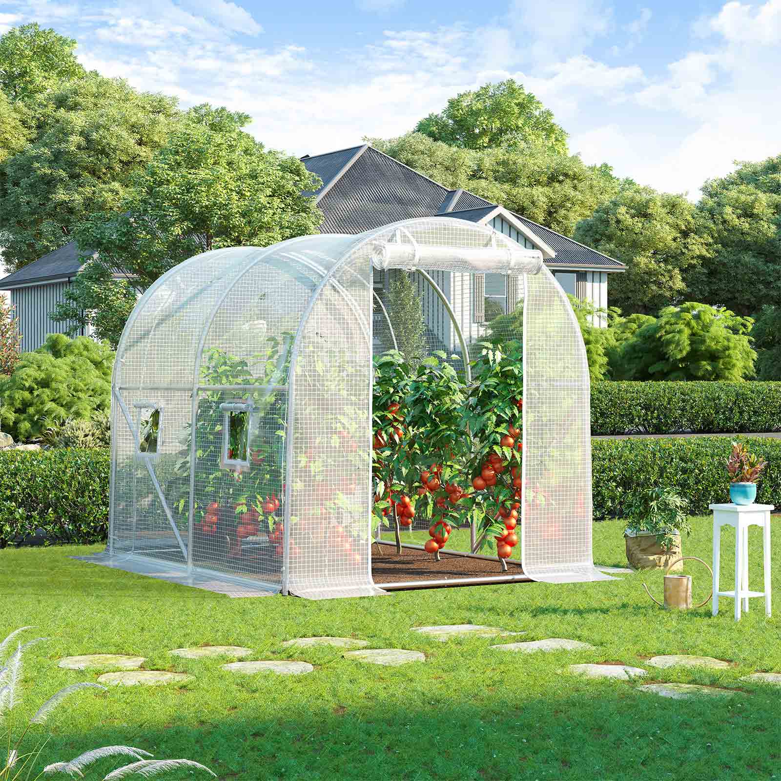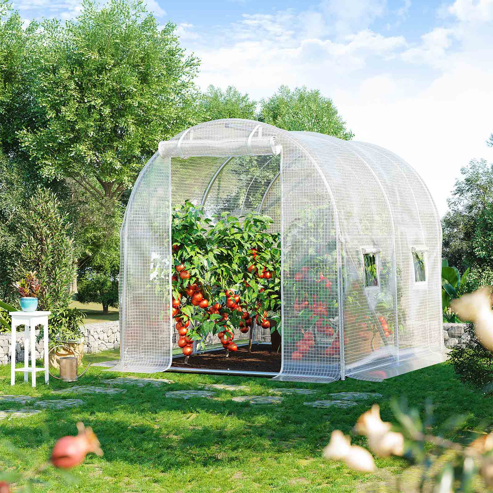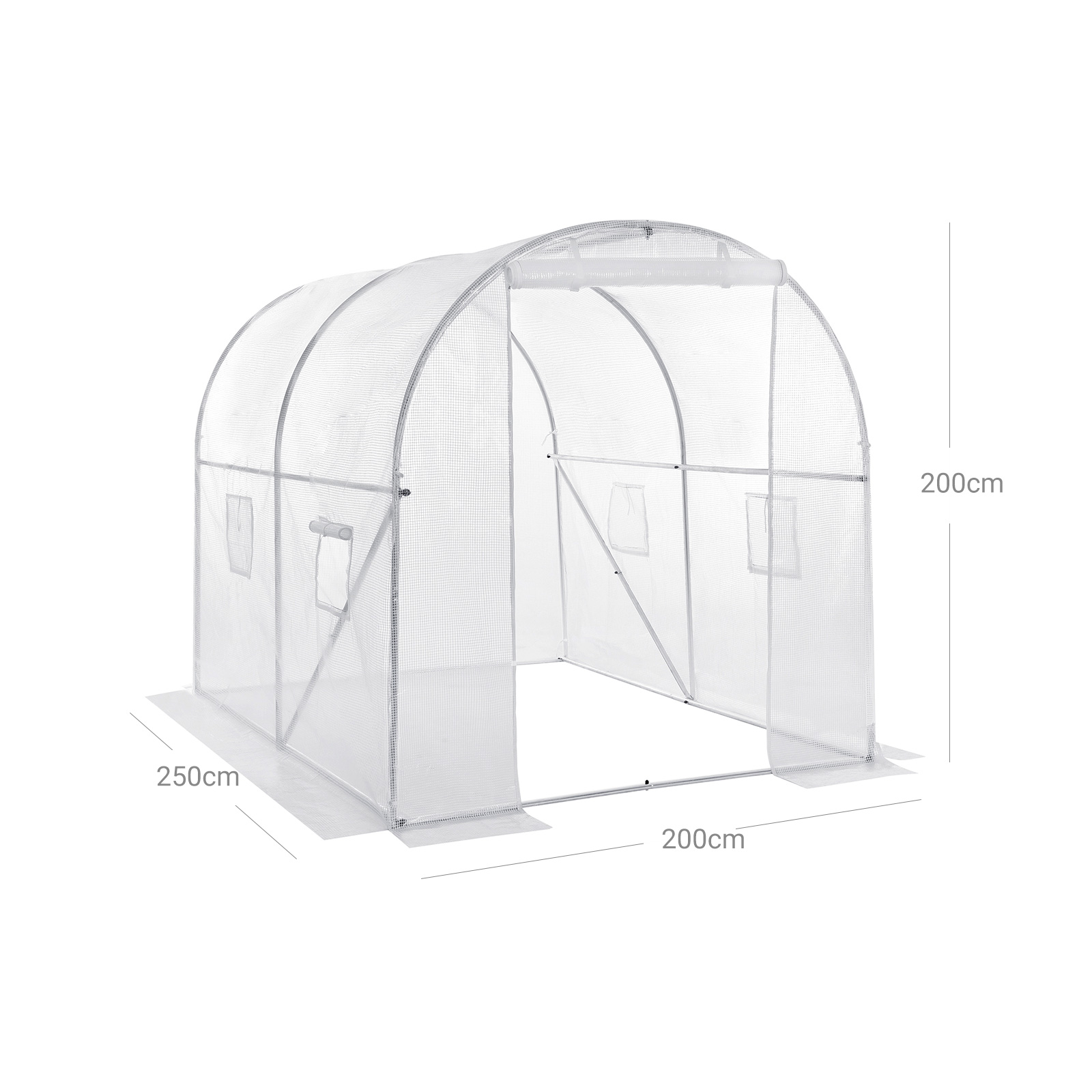 Hvorfor skal du have et drivhus? Vil du s? fr? om vinteren eller dyrke dine yndlingsblomster? Med dette drivhus kan du skabe et varmt og sikkert paradis for dine planter ? et must for alle haveelskere. Frugt, gr?ntsager, blomster, planter Med en st?rrelse p? 250 x 200 x 200 cm skaber dette drivhus et paradis for alle planter. Du kan opdele det i forskellige omr?der, et til dine yndlingsgr?ntsager som tomater og salat, et til l?kre frugter som druer og jordb?r og et til andre planter og blomster. Med dette drivhus forbliver din have smuk ogs? om vinteren! Produktdetaljer:- Farve: Hvid – Materiale: St?l, PE – St?rrelse: 250 x 200 x 200 cm (L x B x H) – V?gt: 19 kg Leveringsomfang: – 1 x drivhus – 4 x jordkroge – 1 x tilbeh?rspakke – 1 x vejledning (DE, EN, FR, ES, IT)