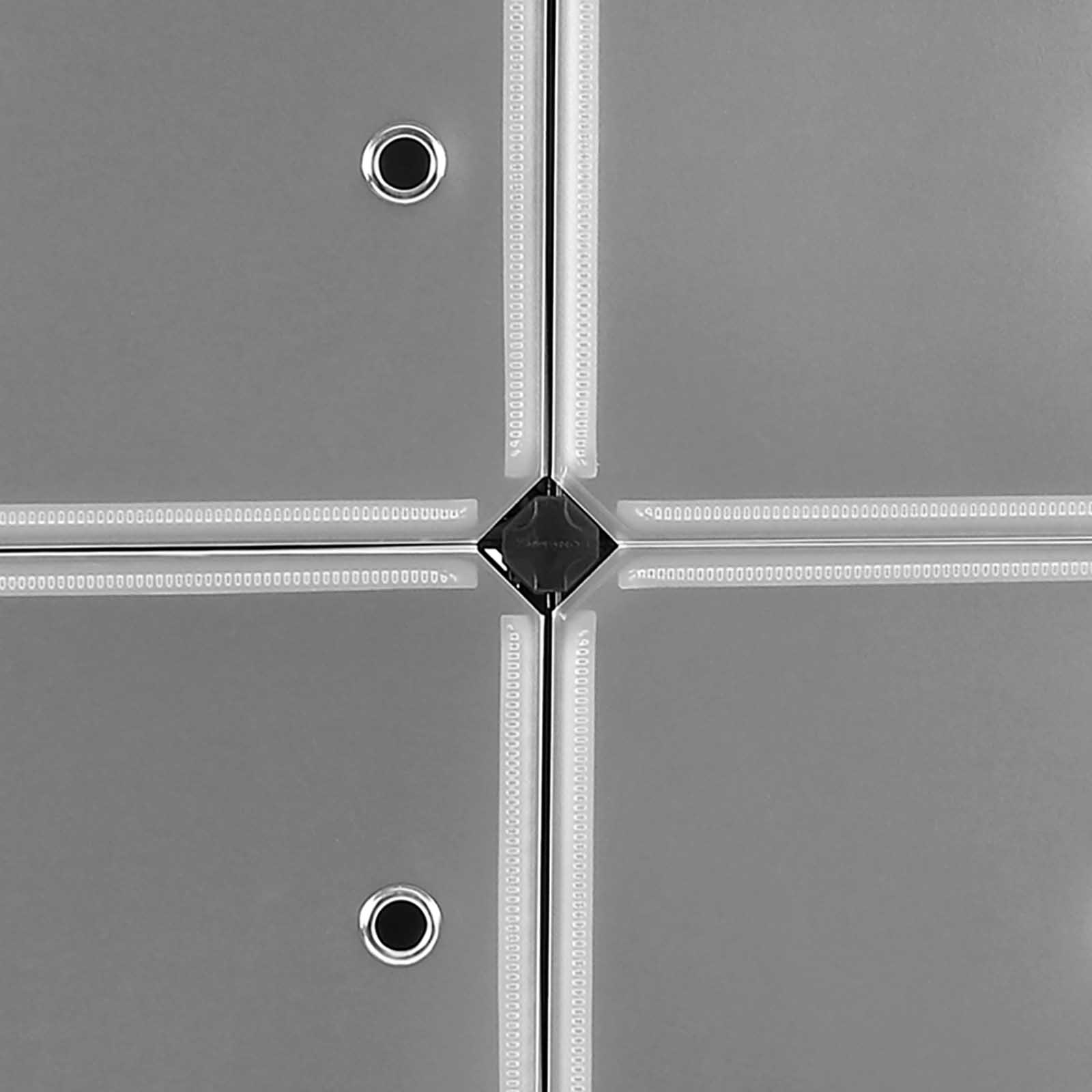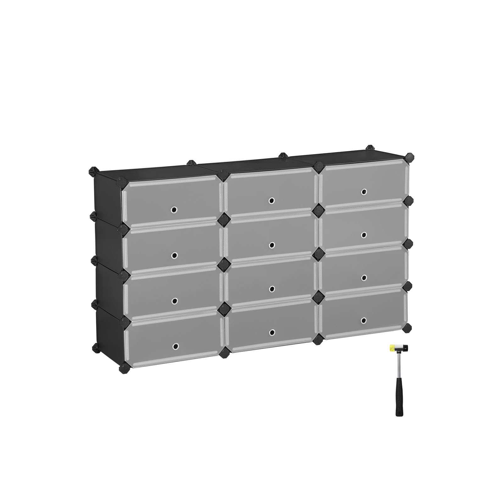 Stabil, sikker, holdbar PP-plastpladerne holdes sammen af h?jkvalitets ABS-forbindelsesstykker, s? hver enhed kan rumme op til 10 kg t?j eller sko. Derudover sikrer tippesikringen ekstra stabilitet og sikker brug. Kan tilpasses dine behov Du kan opbygge og udvide dette stikreolsystem i forskellige former takket v?re de medf?lgende ekstra forbindelsesstykker, s? det passer til dine lokaler. Bestil flere stikreoler for at udvide dine muligheder endnu mere! Produktdetaljer: – Farve: Sort, semitransparente d?re – Materiale: PP-plastplader, tr?dramme, ABS-plastforbindelsesstykker – Maks. statisk belastning pr. hylde: 10 kg Leveringsomfang: – 12 x sort plastplade (40 x 17 cm) – 15 x sort plastplade (40 x 30 cm) – 18 x sorte plastplader (30 x 17 cm) – 12 x halvgennemsigtige plastplader (40 x 17 cm) – 42 x ABS-plastforbindelsesstykker – 1 x hammer – 2 x vippesikring – 1 x vejledning (DE, EN, FR, ES, IT) SONGMICS Bem?rkninger: – S?t dig ikke p? produktet, og stil ikke for tunge genstande p? det. – Uds?t ikke produktet for intens sollys i l?ngere tid. – Alle plastplader skal trykkes fast ned i forbindelsesstykkerne; brug ogs? hammeren til at sikre en stabil forbindelse mellem alle enkeltdele. Tryk desuden p? forbindelsesstykkerne efter montering af hver r?kke, indtil de er helt p? plads. – Fastg?r produktet til v?ggen ved hj?lp af den medf?lgende v?ltesikring, hvis det er h?jere end 60 cm. – Hold produktet v?k fra spidse eller skarpe genstande for at undg? beskadigelse.