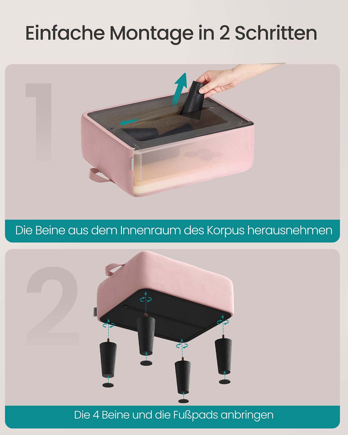SONGMICS skammel, fodskammel, fl?jl, skammel, tyk polstring, belastbar op til 150 kg, til stuen, sovev?relset, entreen, pastellrosa-bl?ksort LOM501R01