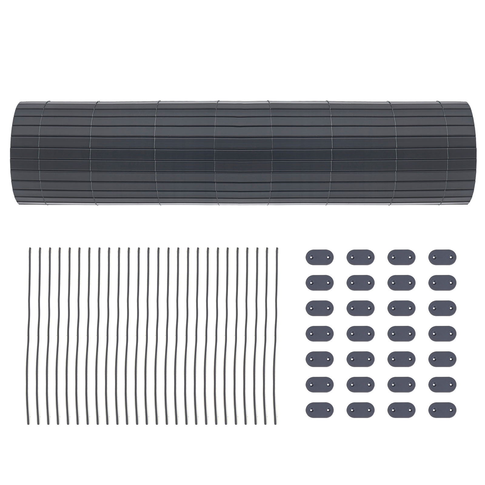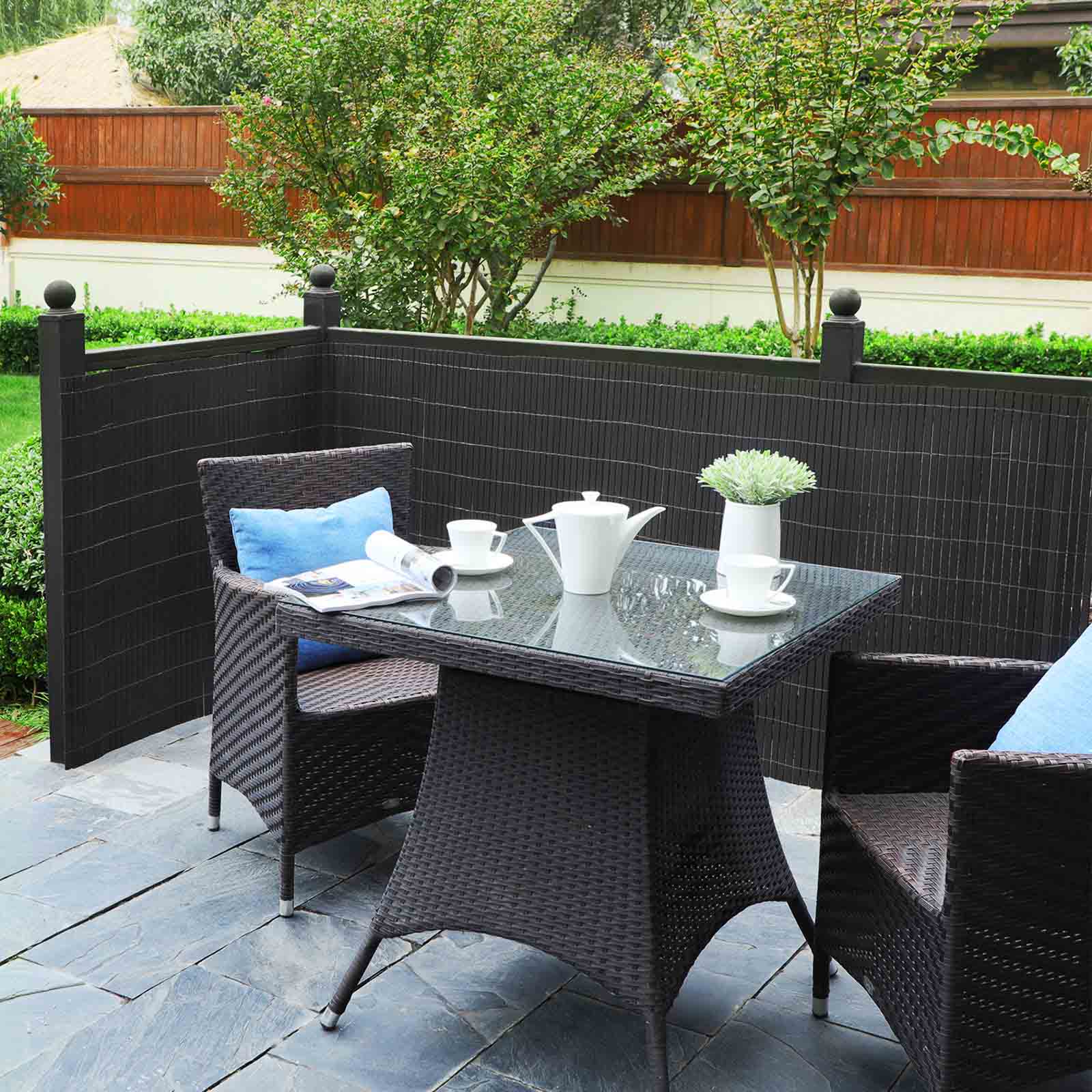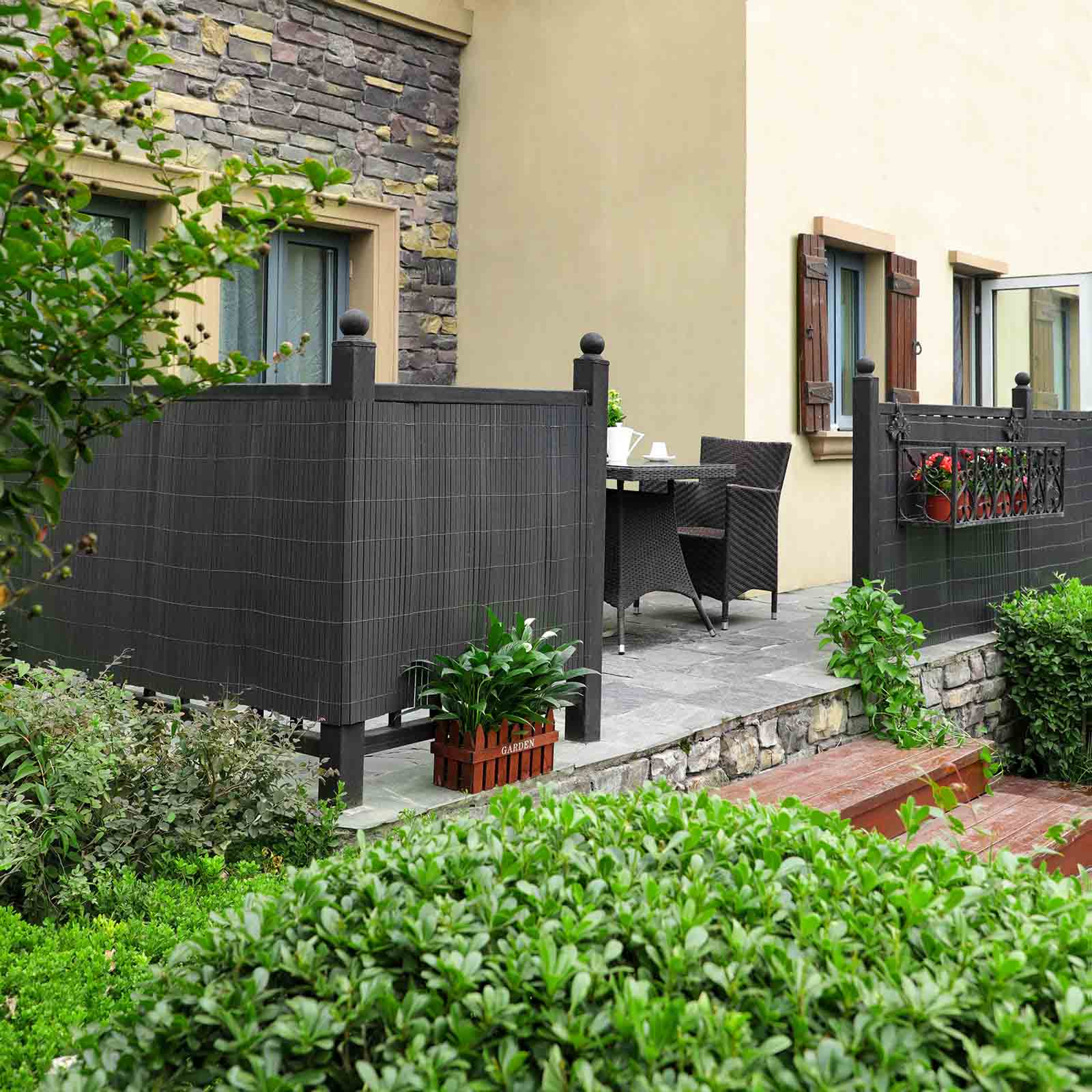 Vil du gerne skabe et afsk?rmet omr?de i din have, hvor du kan slappe af uden at blive forstyrret af nysgerrige blikke i de varme sommerm?neder? S? er denne afsk?rmning fra SONGMICS den perfekte l?sning! Beskyttelse og dekoration: Med denne afsk?rmning kan du skabe en oase af ro. Den er fremstillet af PVC og afviser effektivt sollys og beskytter din privatliv. Desuden er denne mat en smuk afd?kning til dit lidt ?ldre havehegn. Alsidig anvendelse: Dette vejrbestandige synssk?rm passer ikke kun til din altan, men ogs? til din poolomr?de eller have. Du kan fastg?re den til tr?- eller tr?dhegn samt p?le eller andre genstande. Detaljer: Forbedret kvalitet Den forst?rkende skillev?g i r?ret giver dette afsk?rmningshegn mere stabilitet. Tilbeh?r af h?j kvalitet Vi leverer 26 metalkabelbindere og klips, s? du hurtigt kan montere denne afsk?rmningsm?tte. Det anbefales at fastg?re klipsene med j?vne mellemrum p? 50 cm i l?ngde og h?jde. Kan afkortes i l?ngden Du kan afkorte privatlivsbeskyttelsesm?tten i l?ngden efter behov. N?r du har klippet tr?dene af, skal du binde dem sammen og lime et par lameller sammen med lim for at forhindre, at privatlivsbeskyttelsen g?r i opl?sning.