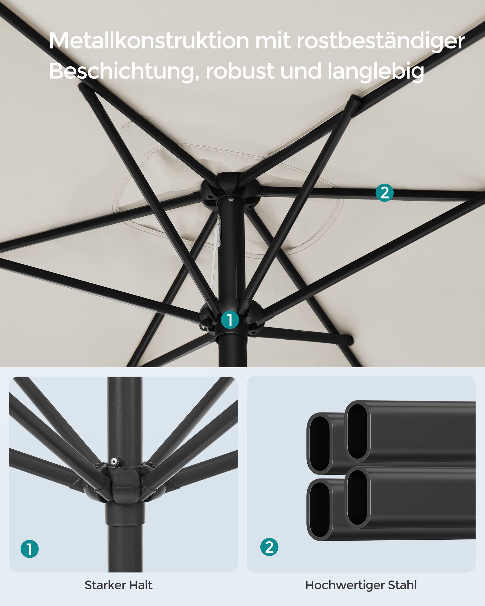 Materiale: St?lramme, parasolduge af 180 g/m? polyesterstof