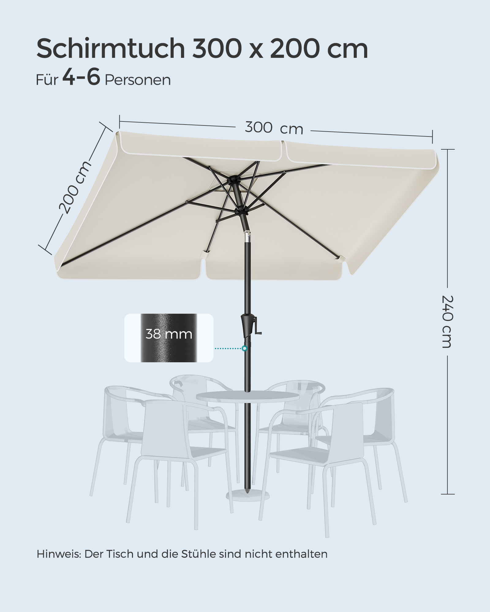 St?rrelse p? parasolduge: 300 x 200 cm (L x B)