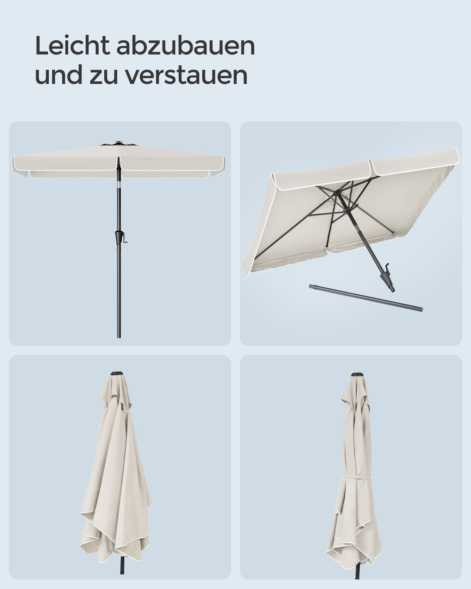 SONGMICS Parasol 200 x 150 cm, rektangul?r altanparasol, solbeskyttelse UPF 50+, kan b?jes 30? p? begge sider, til haven, terrassen, uden stativ, gr? GPU048G01