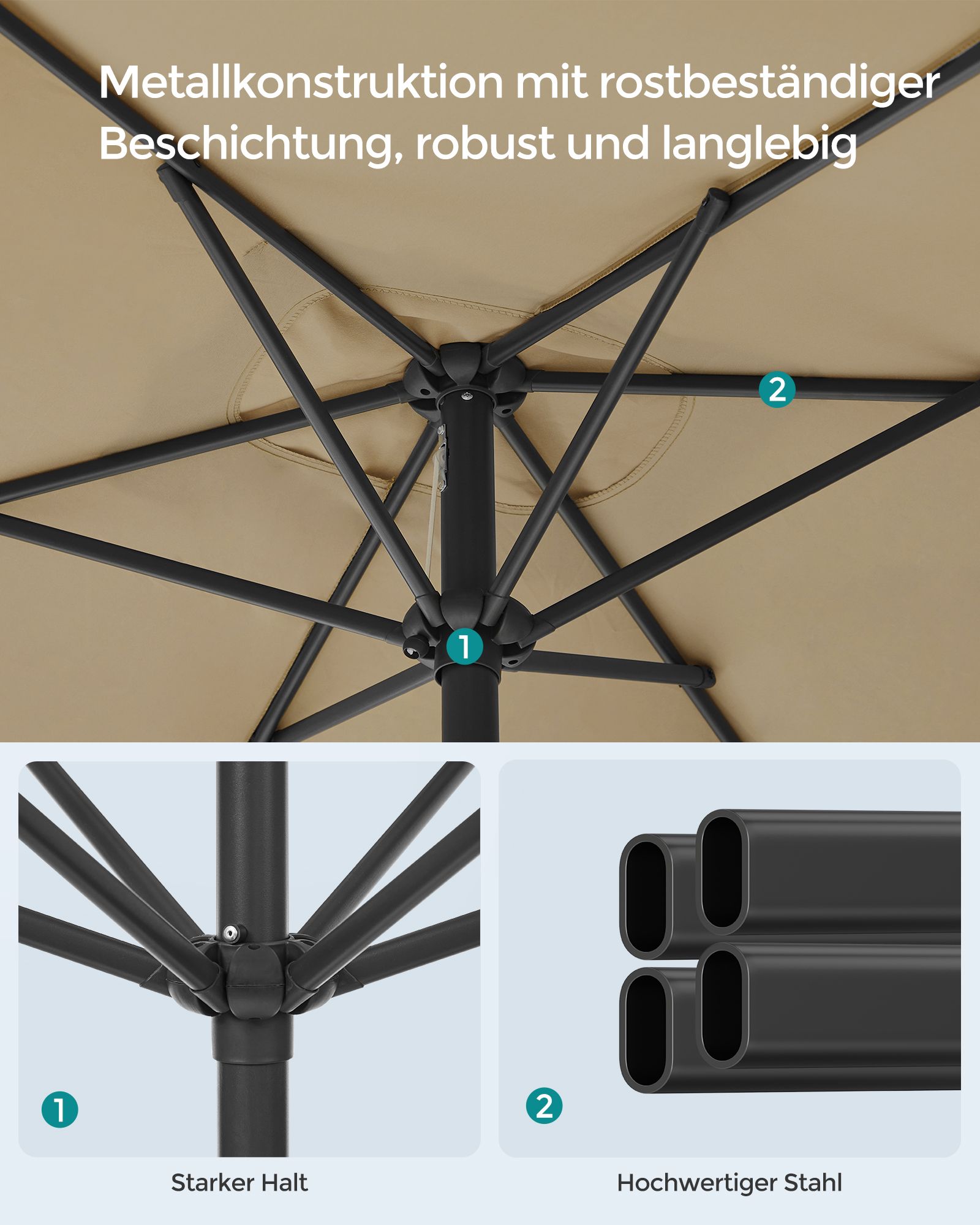 Materiale: St?lramme, paraplydug af 180 g/m? polyesterstof
