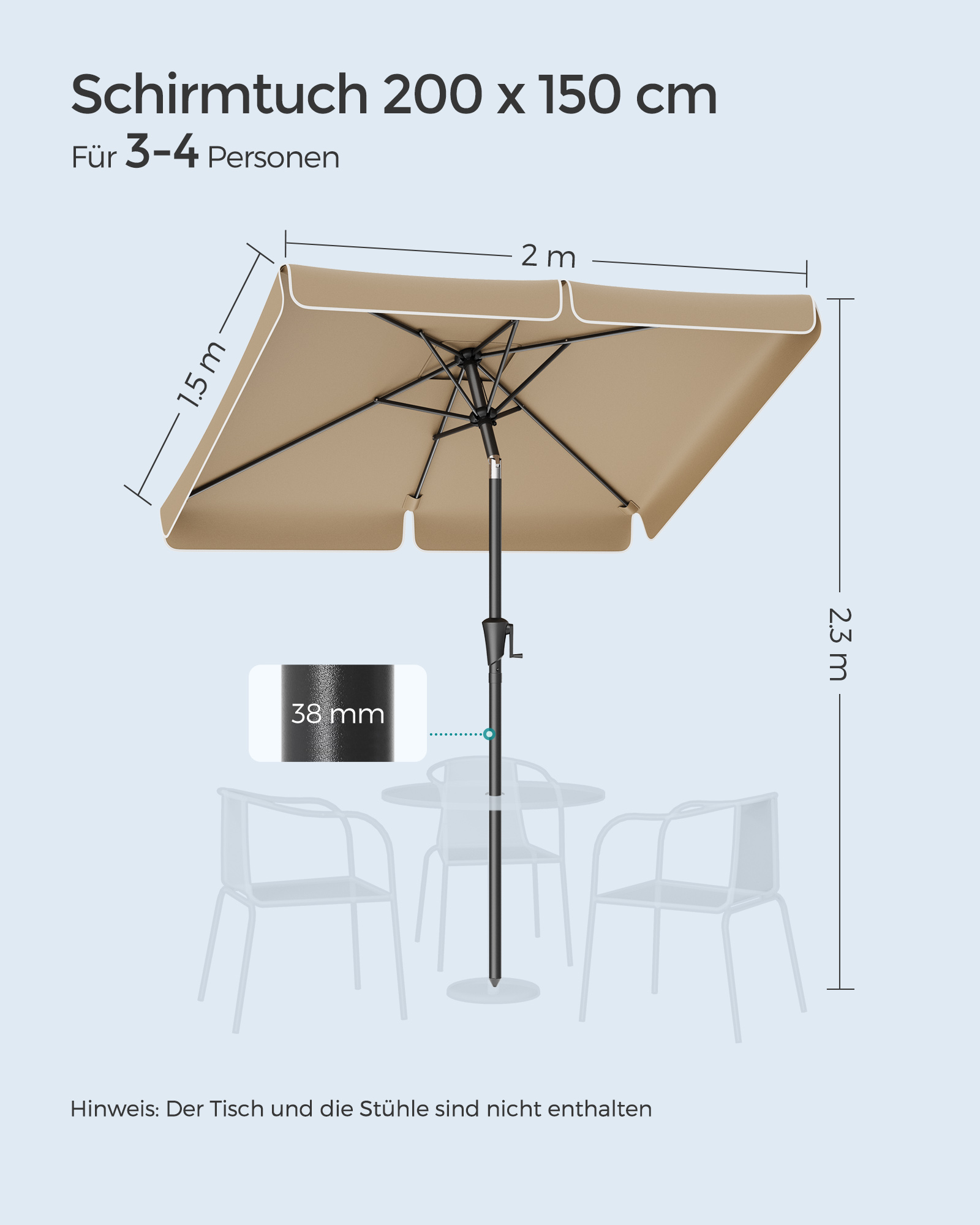 St?rrelse p? paraplydug: 200 x 150 cm (L x B)