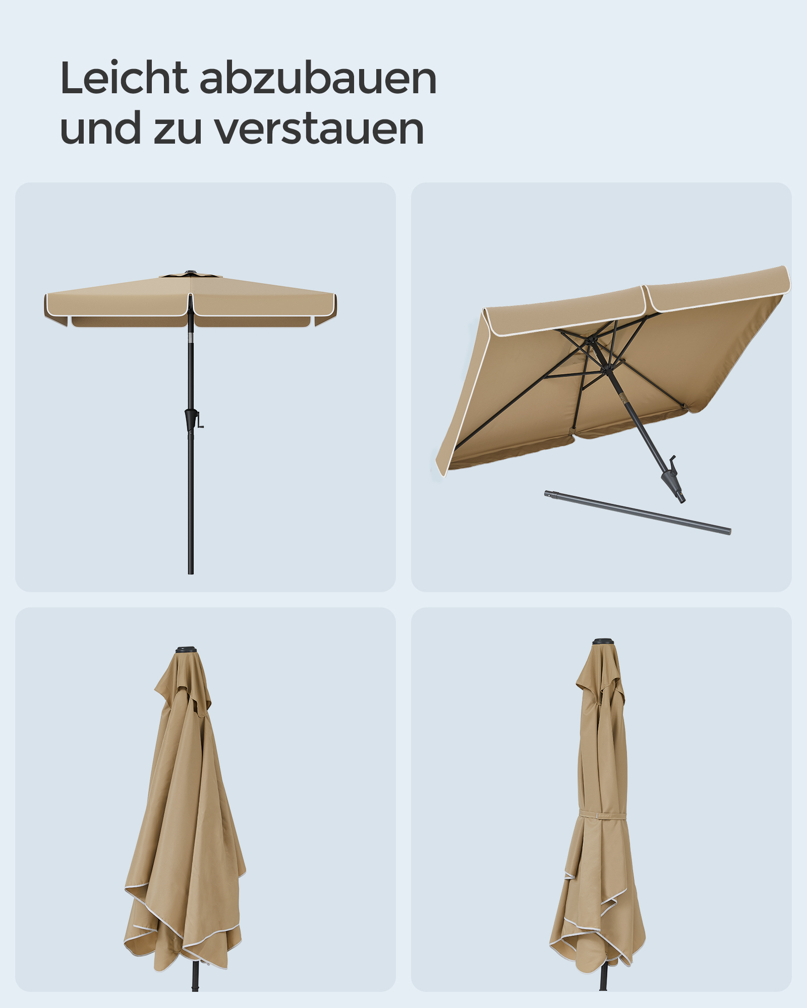 SONGMICS Parasol 200 x 150 cm, rektangul?r altanparasol, solbeskyttelse UPF 50+, kan b?jes 30? p? begge sider, til haven, terrassen, uden stativ, gr? GPU048G01