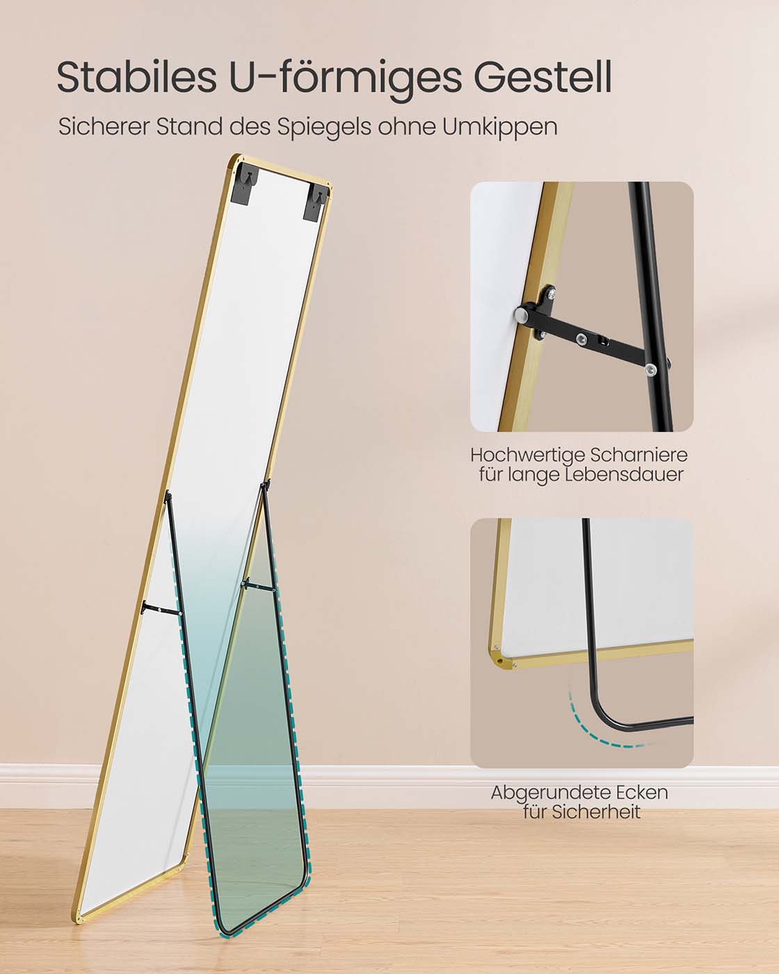 SONGMICS helkropsspejl, 160 x 50 cm, rektangul?rt st?ende spejl, ramme af aluminiumslegering, h?rd glas, til sovev?relse, stue, garderobe, bl?ksort LFM030B01