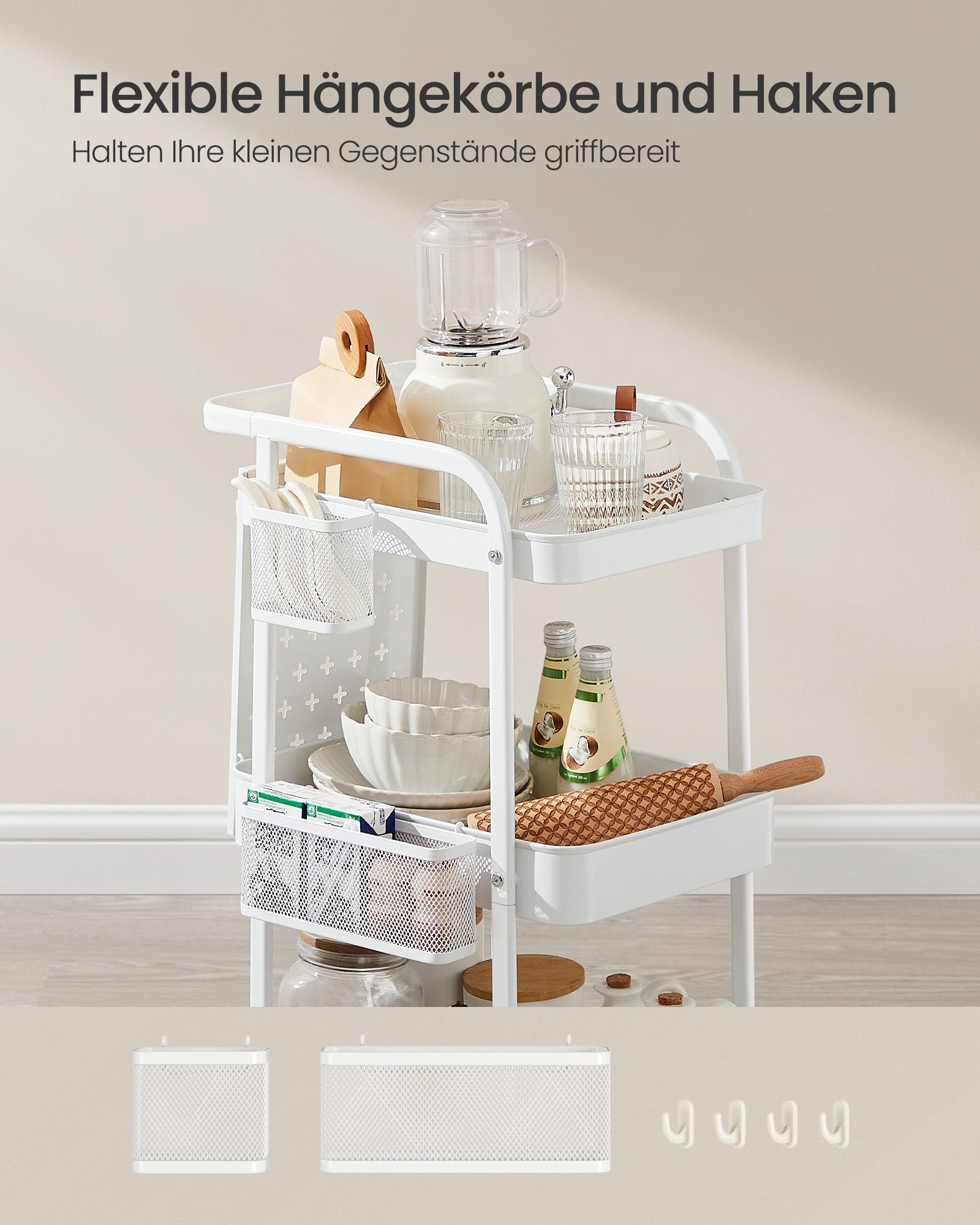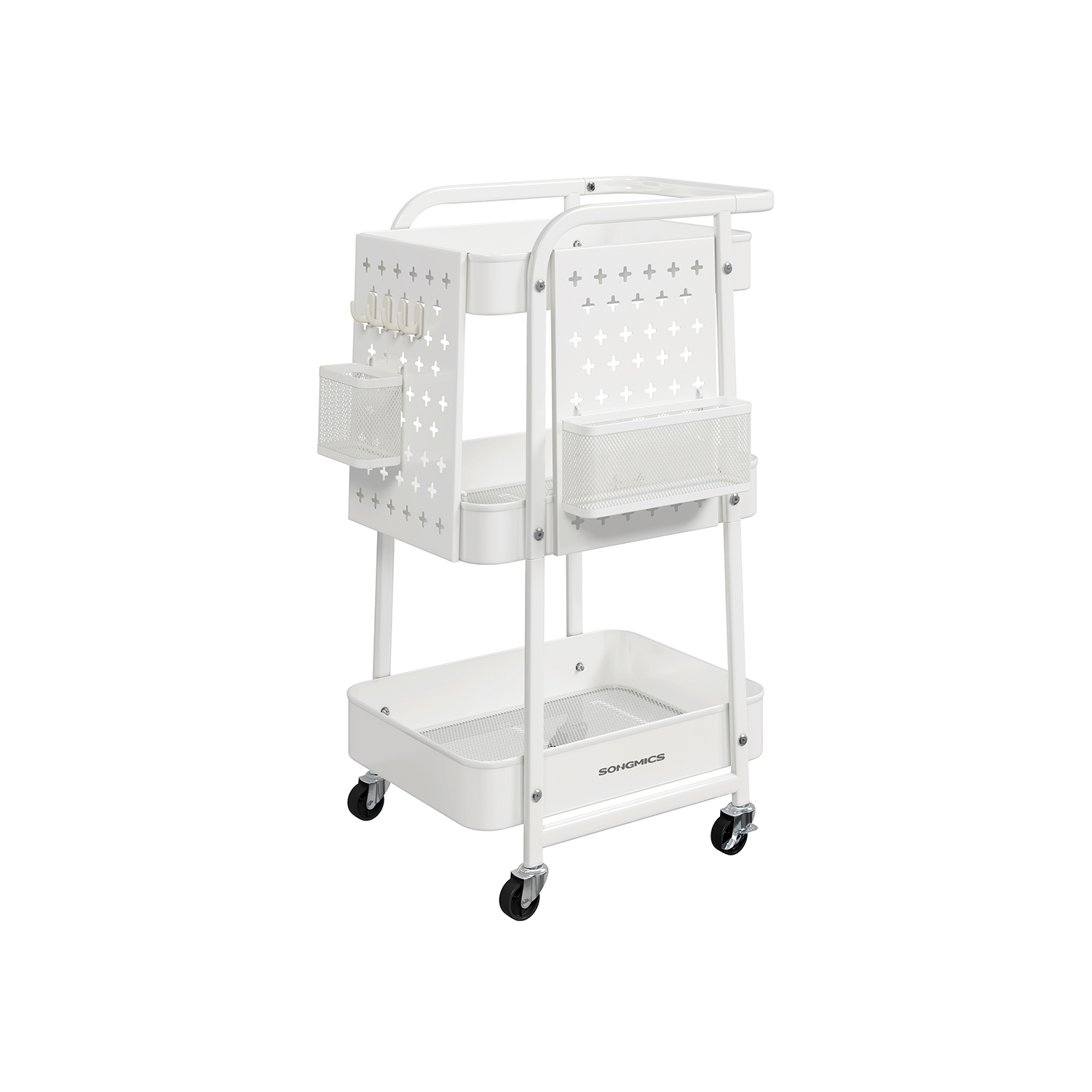 SONGMICS rullebord, k?kkenvogn, 3 metalgitterhylder, serveringsvogn, 2 aftagelige hulplader, 2 h?ngekurve, 4 kroge, til kontor, k?kken, stue, badev?relse, bl?ksort LRC037B01