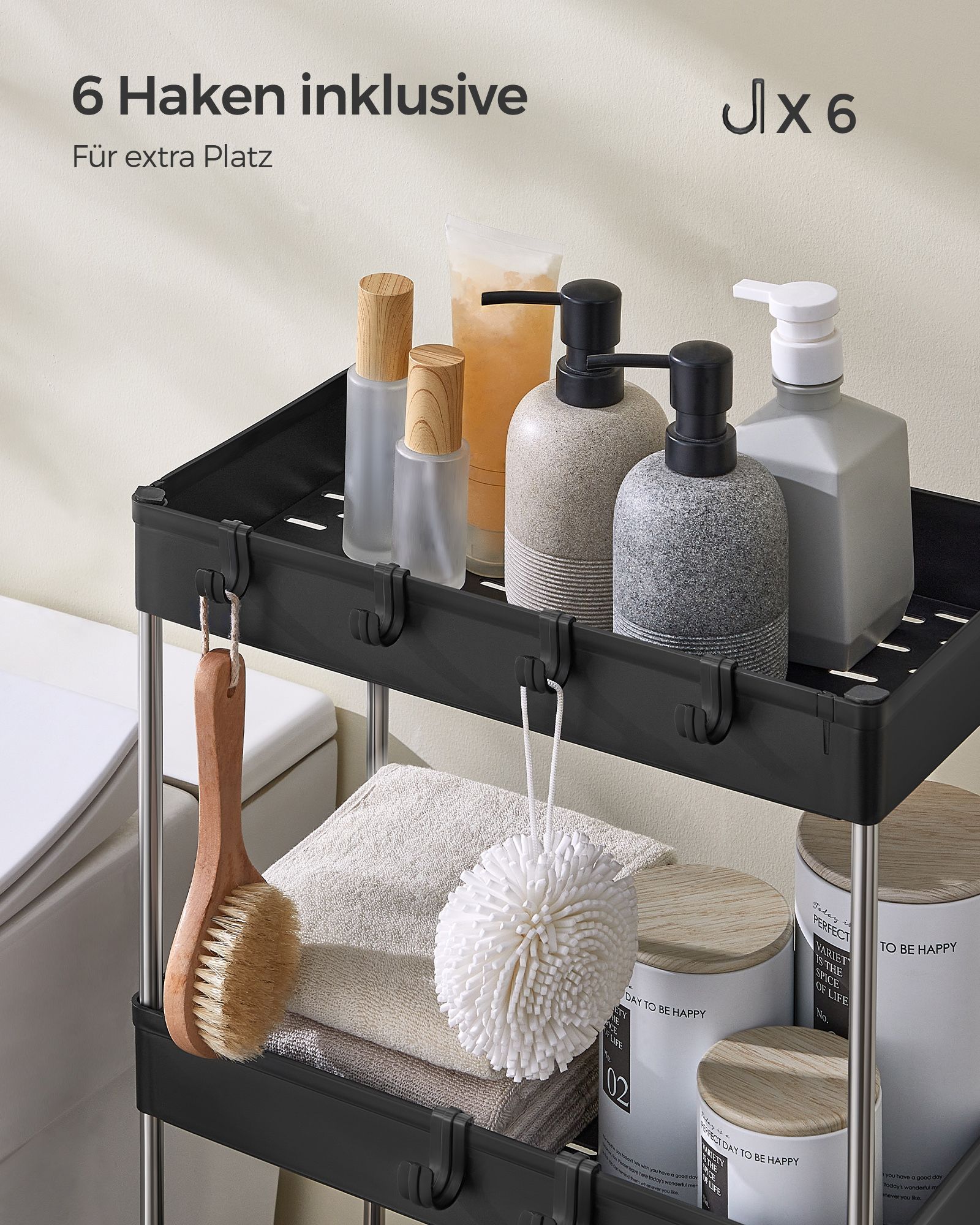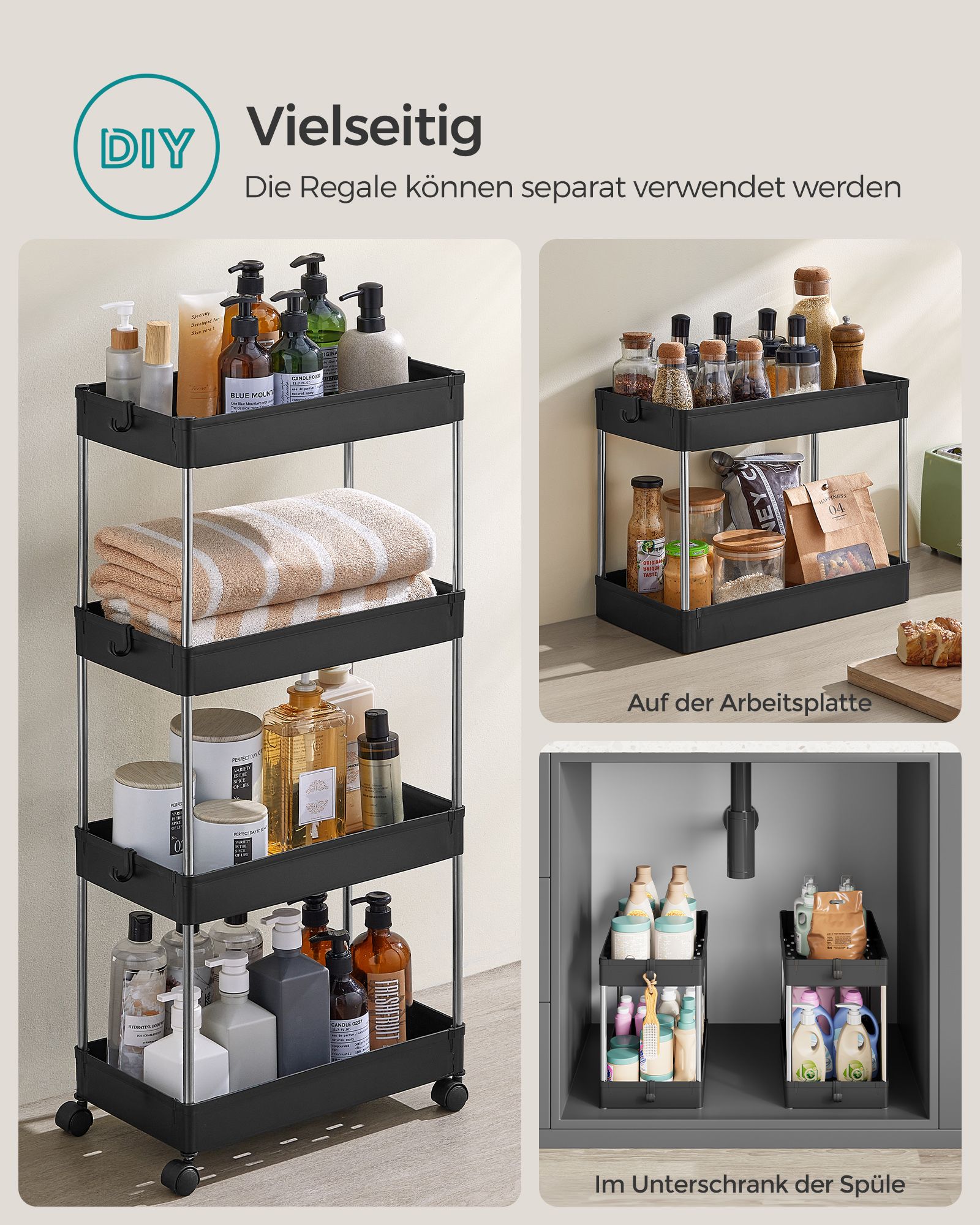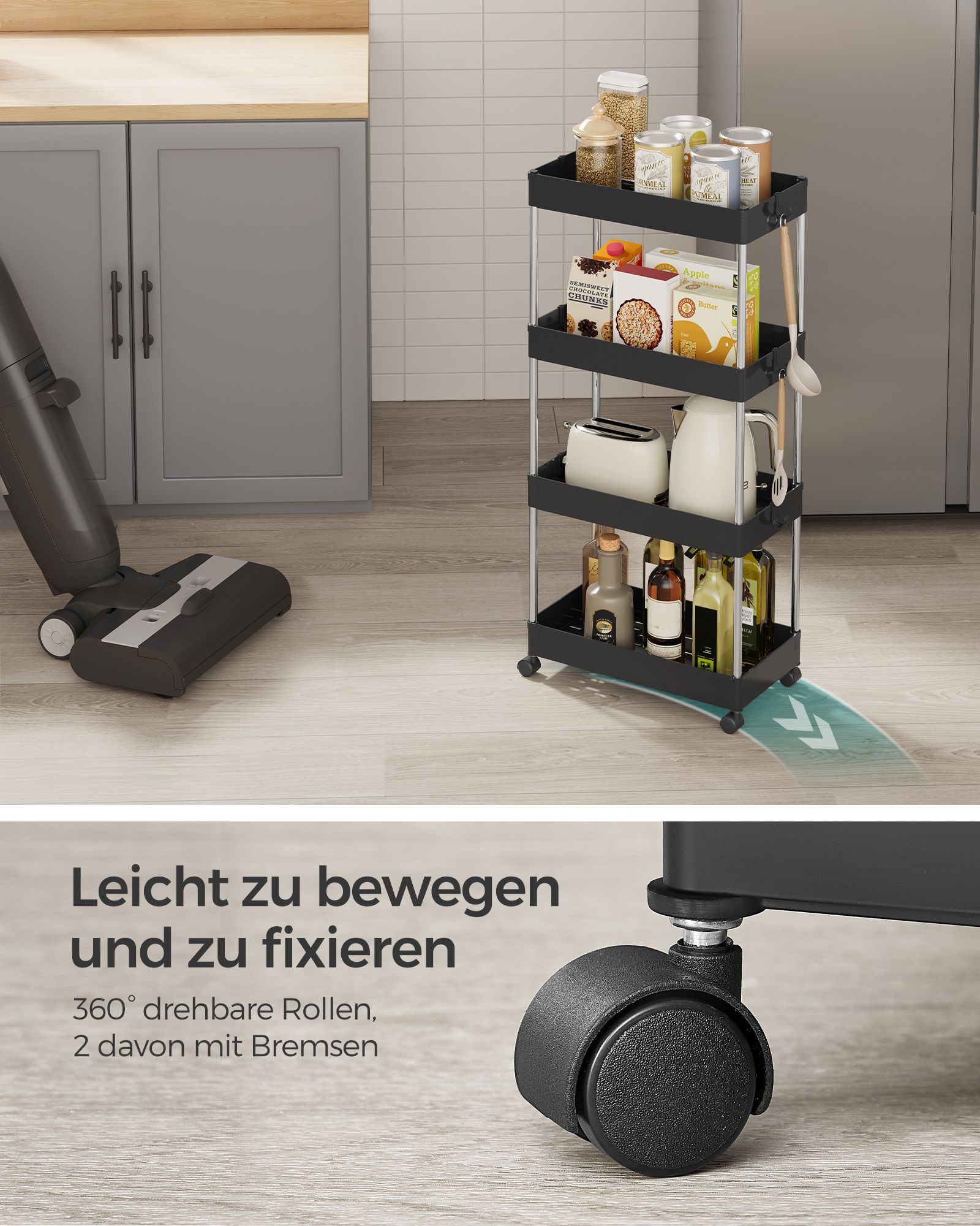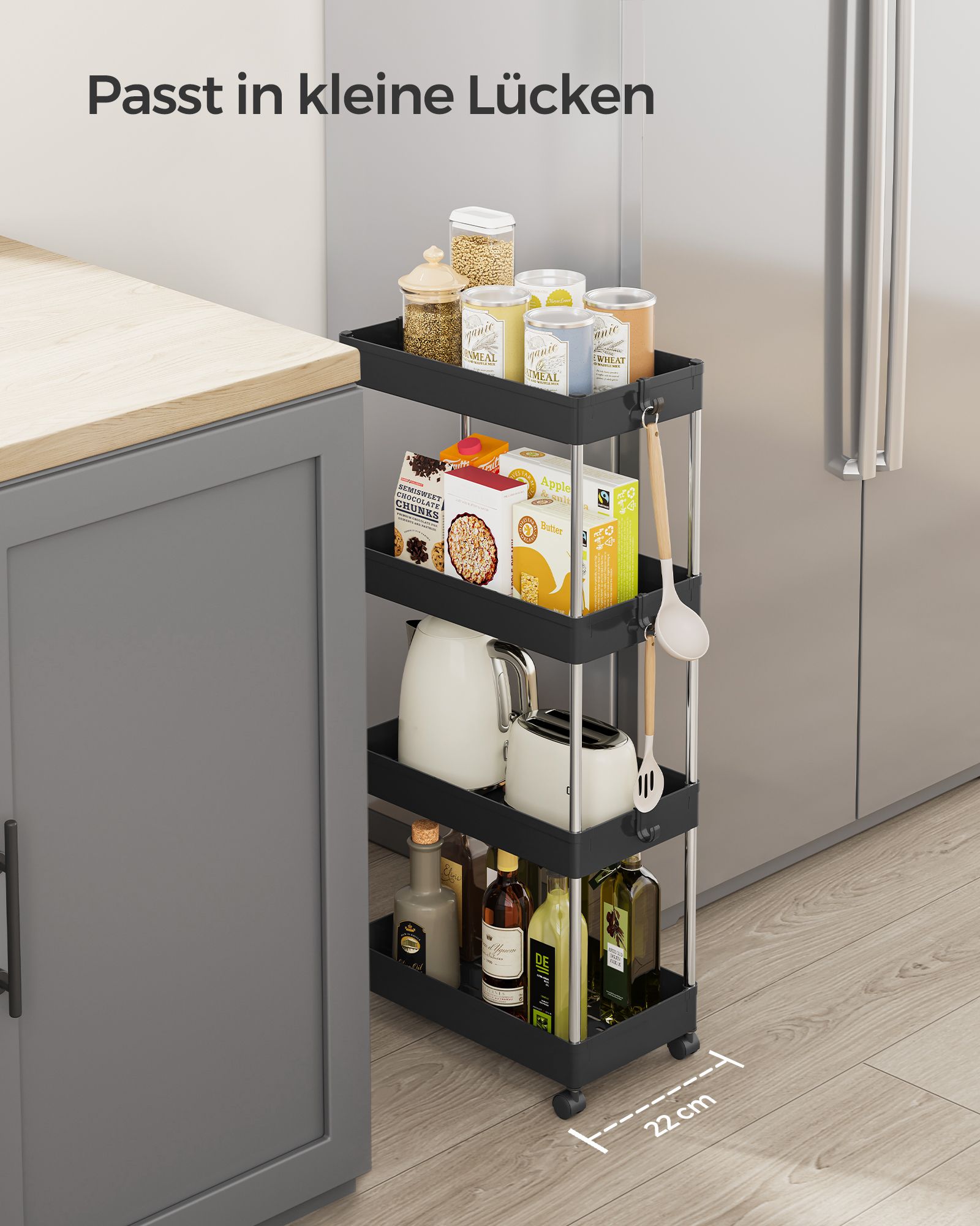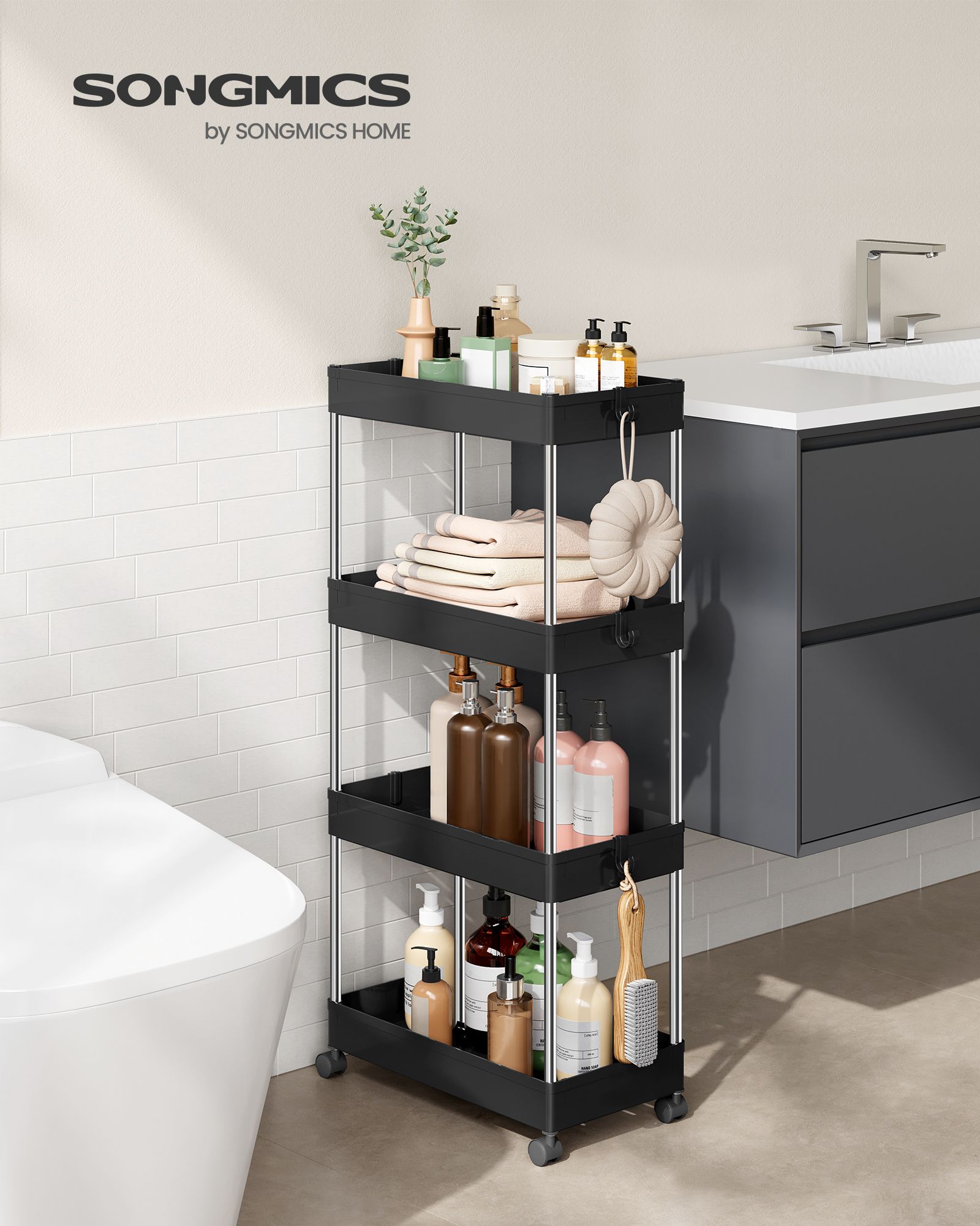 SONGMICS rullebord, k?kkenvogn med 4 hylder, k?kkenreol, nicherreol p? hjul, badev?relsesreol, pladsbesparende, 40 x 13,5 x 86 cm, hvid KSC08WT