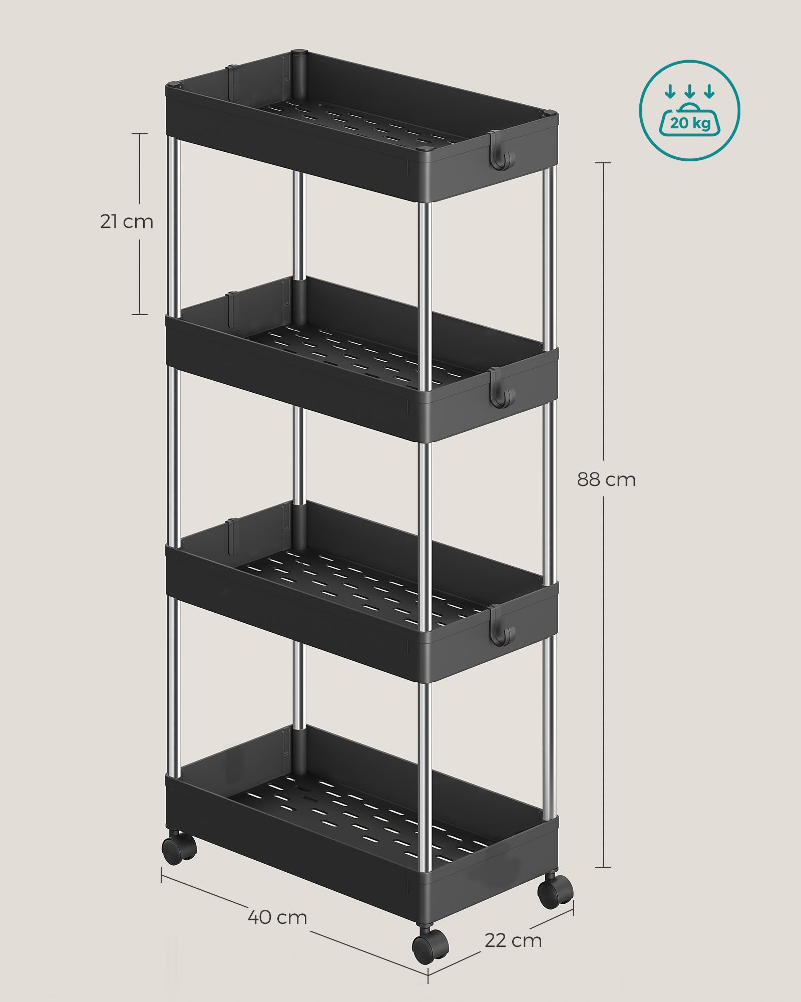 St?rrelse: 22 x 40 x 88 cm (D x B x H)